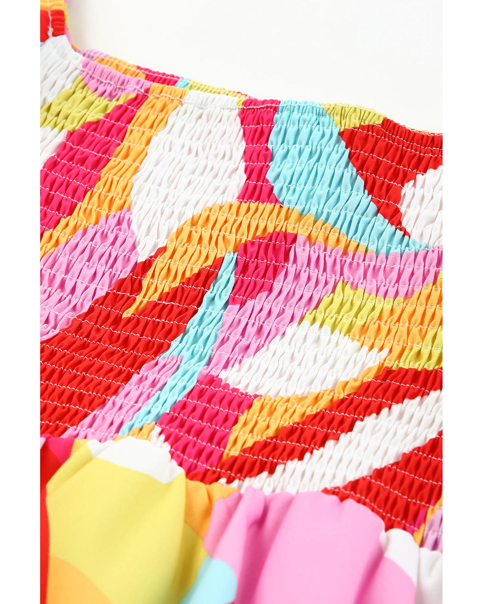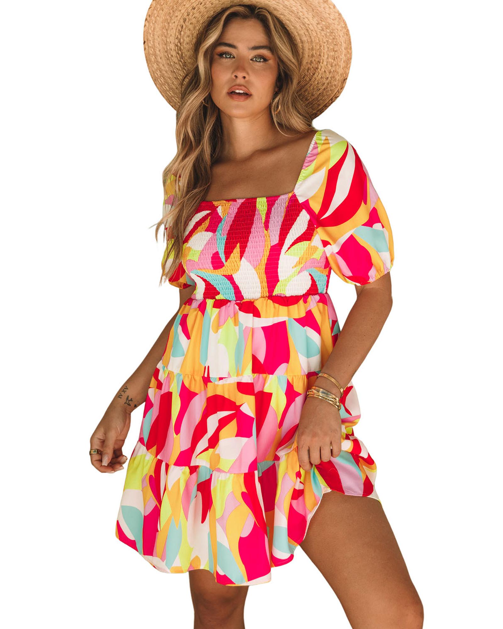 Multicolor Geometric Print Smocked Babydoll Mini Dress – S