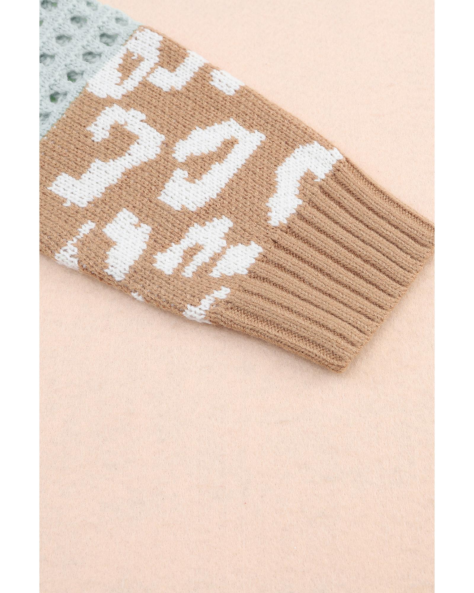 Multicolor Leopard Striped Mix Pattern Knit Crochet Sweater – XL
