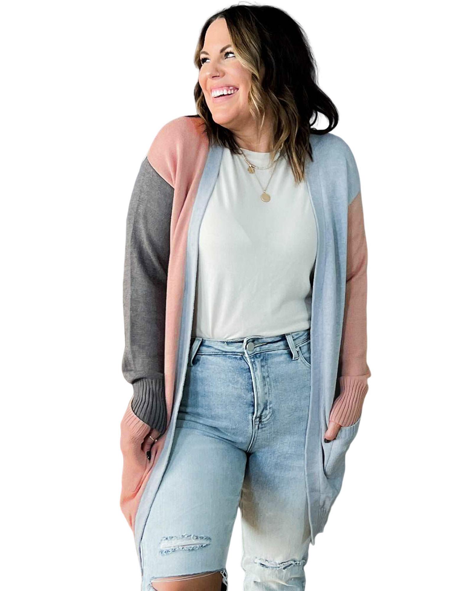 Multicolor Plus Size Colorblock Pocketed Open Front Cardigan – 3X
