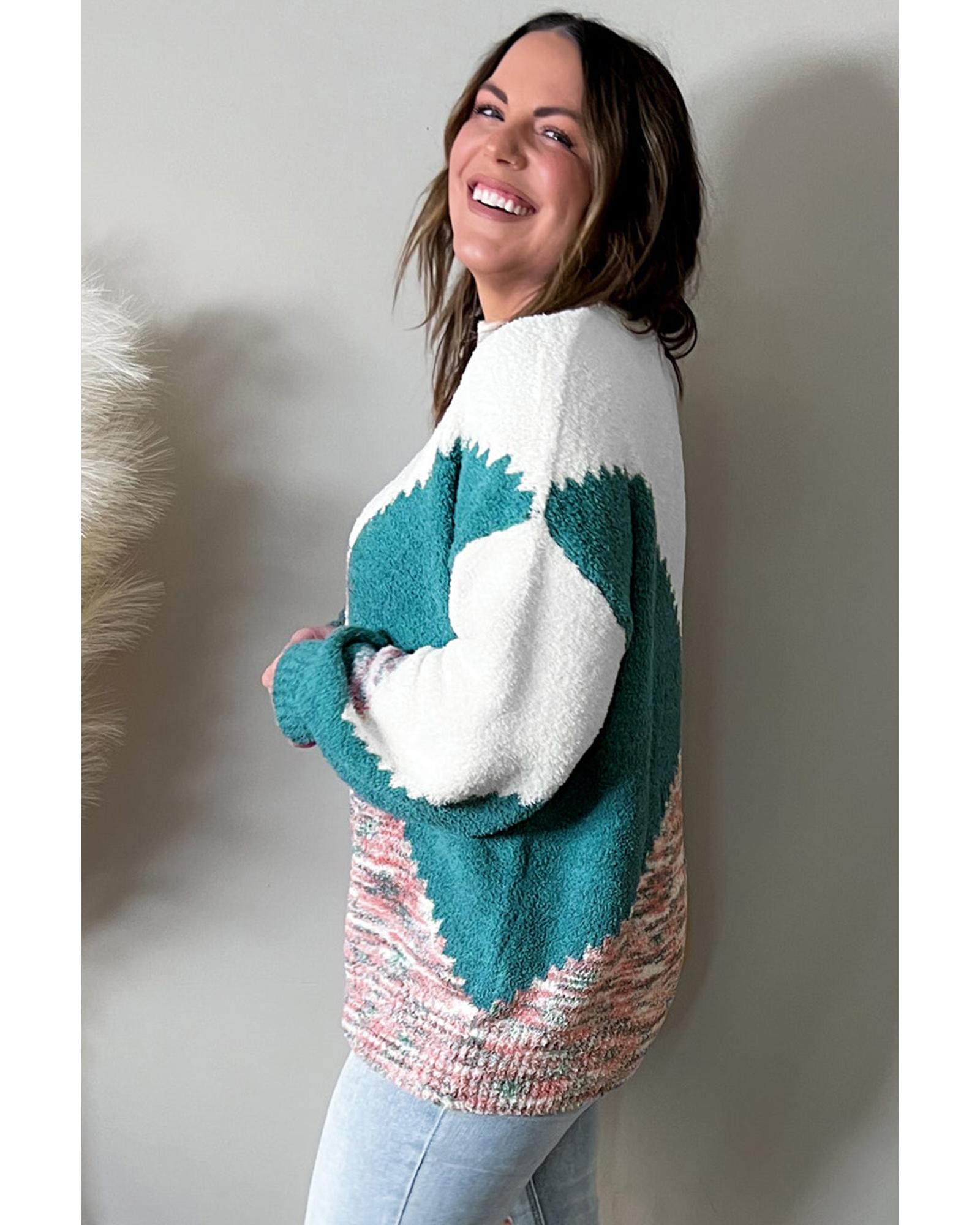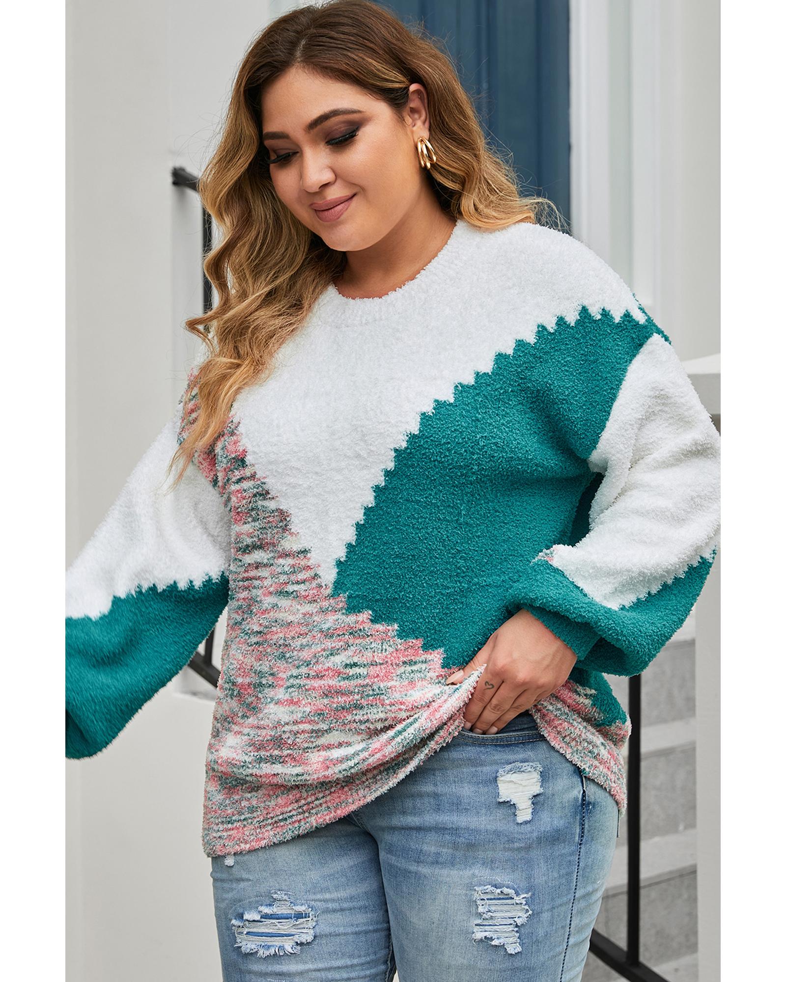 Multicolor Scalloped Color Block Plus Size Sweater – 3X