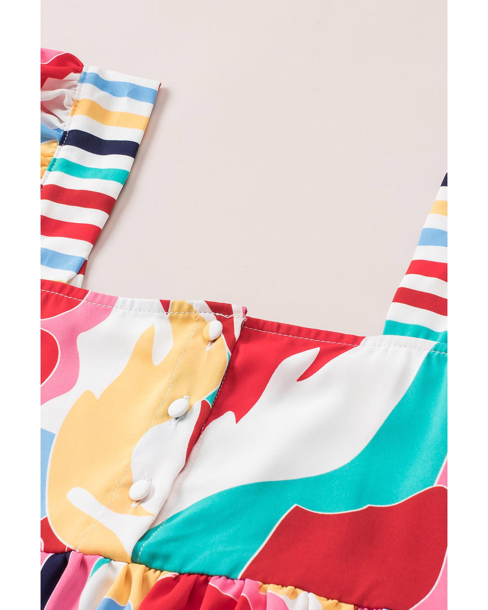 - Multicolor Square Neck Abstract Print Tank Top
