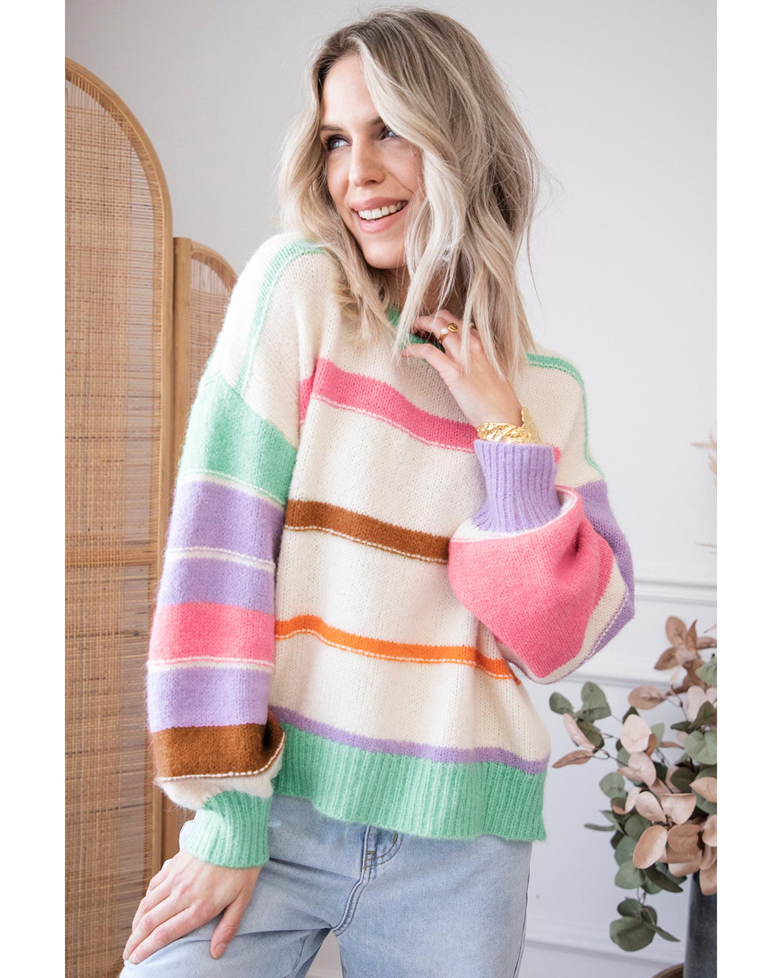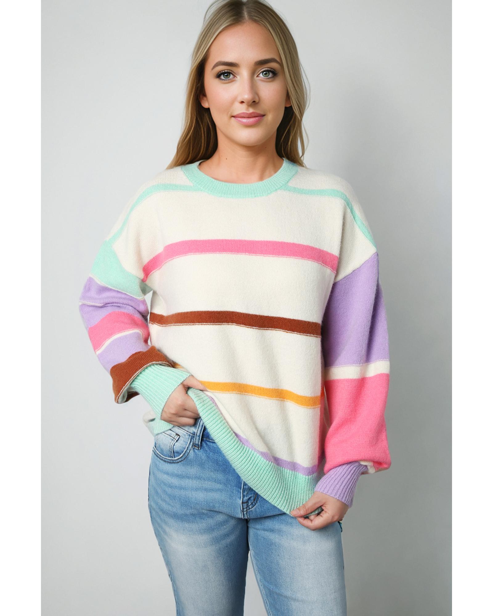 Multicolor Striped Colorblock Drop Shoulder Sweater – XL