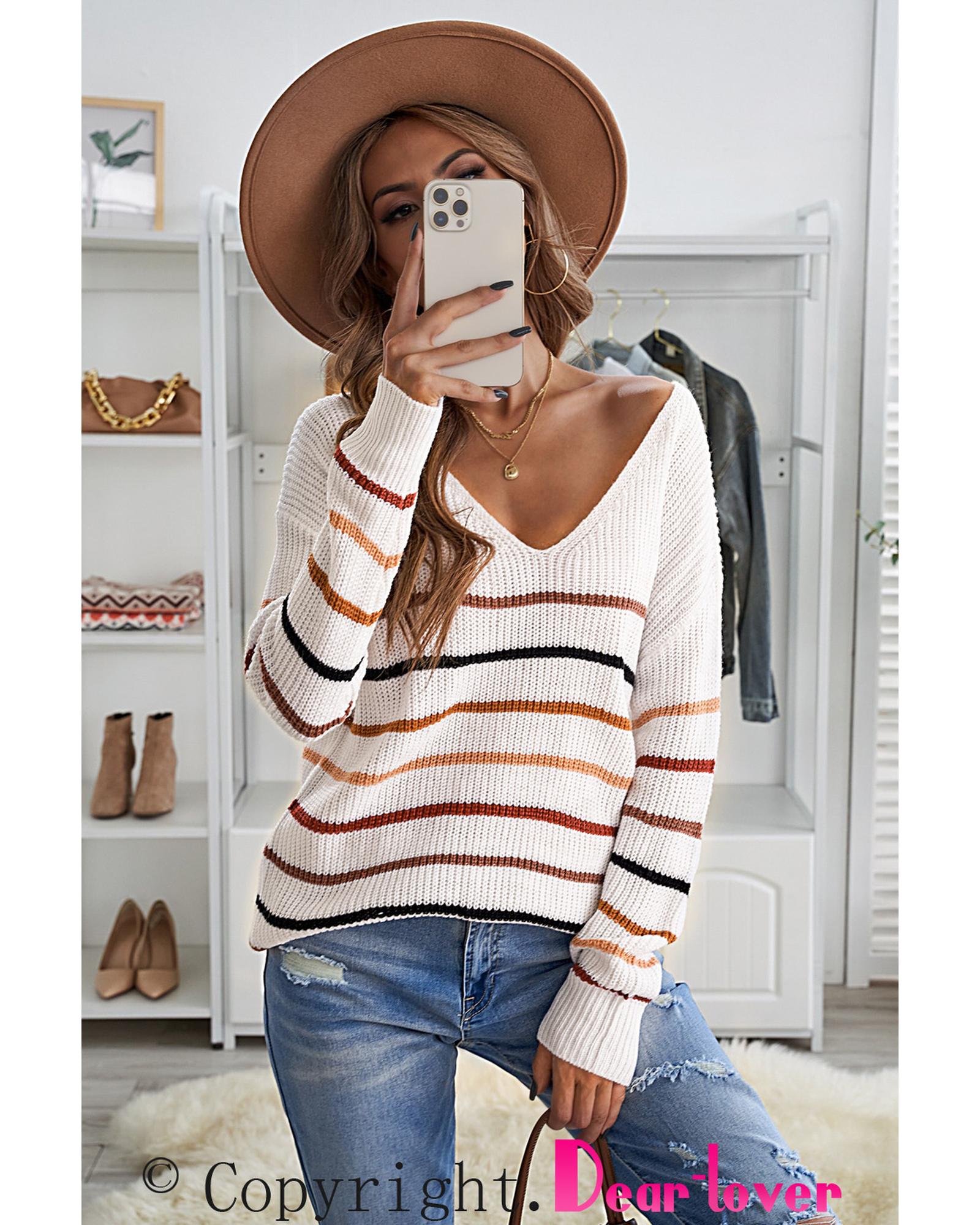 - Stylish and versatile Multicolor Striped Knit Sweater
