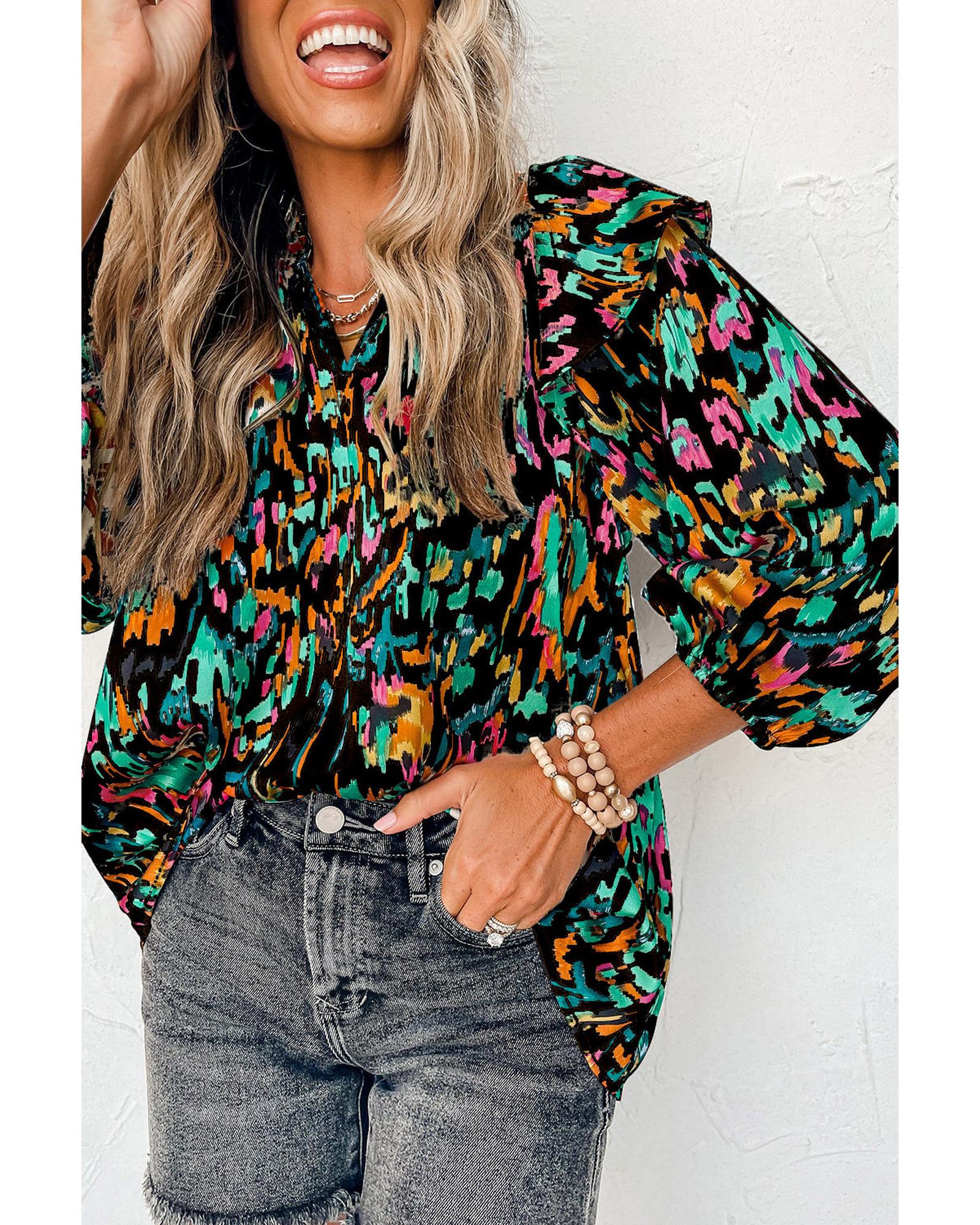 Multicolour Abstract Print 3/4 Puff Sleeve Ruffle Blouse – S