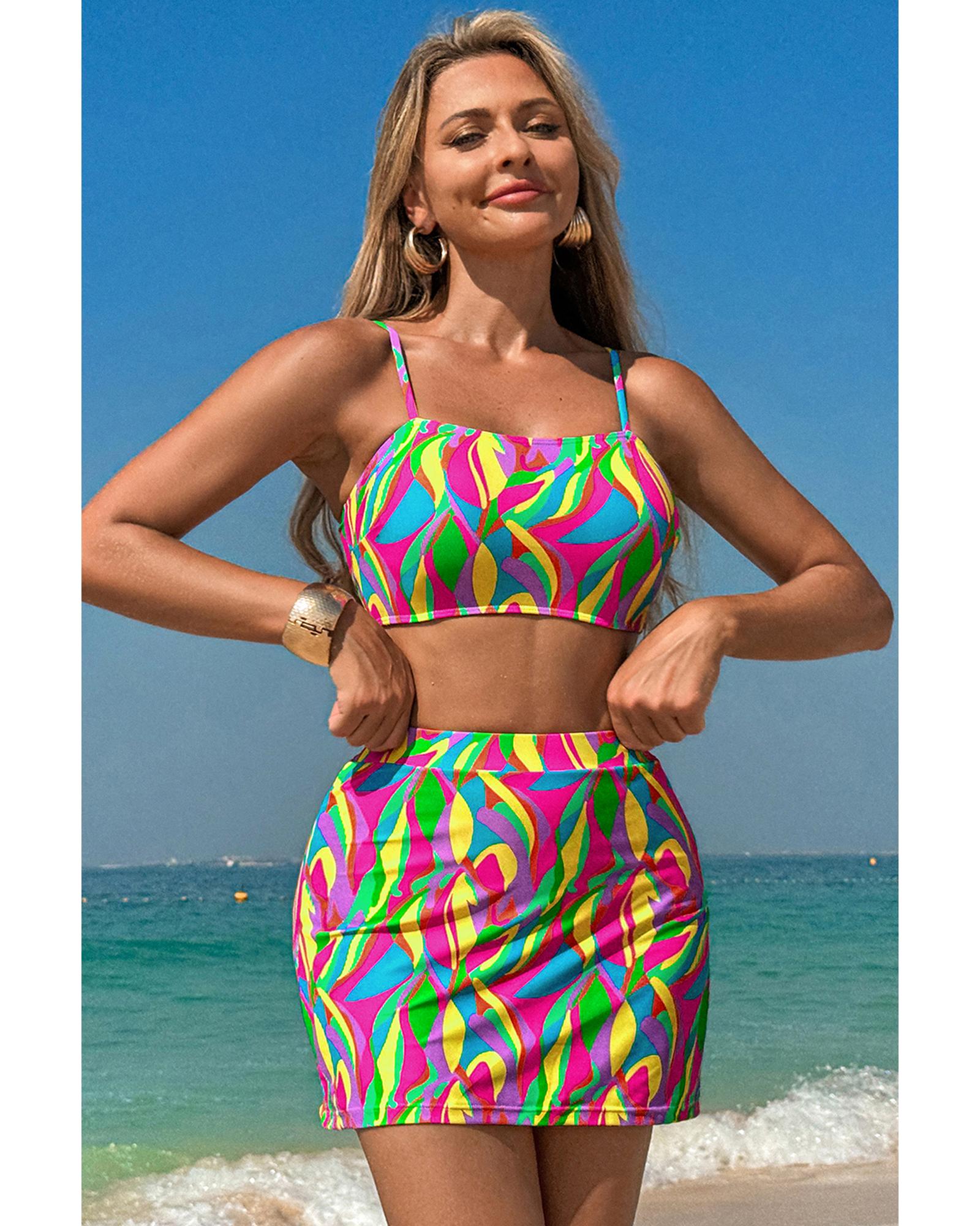 Square Neck Sleeveless Fashion Print Tankini Set - 2XL
