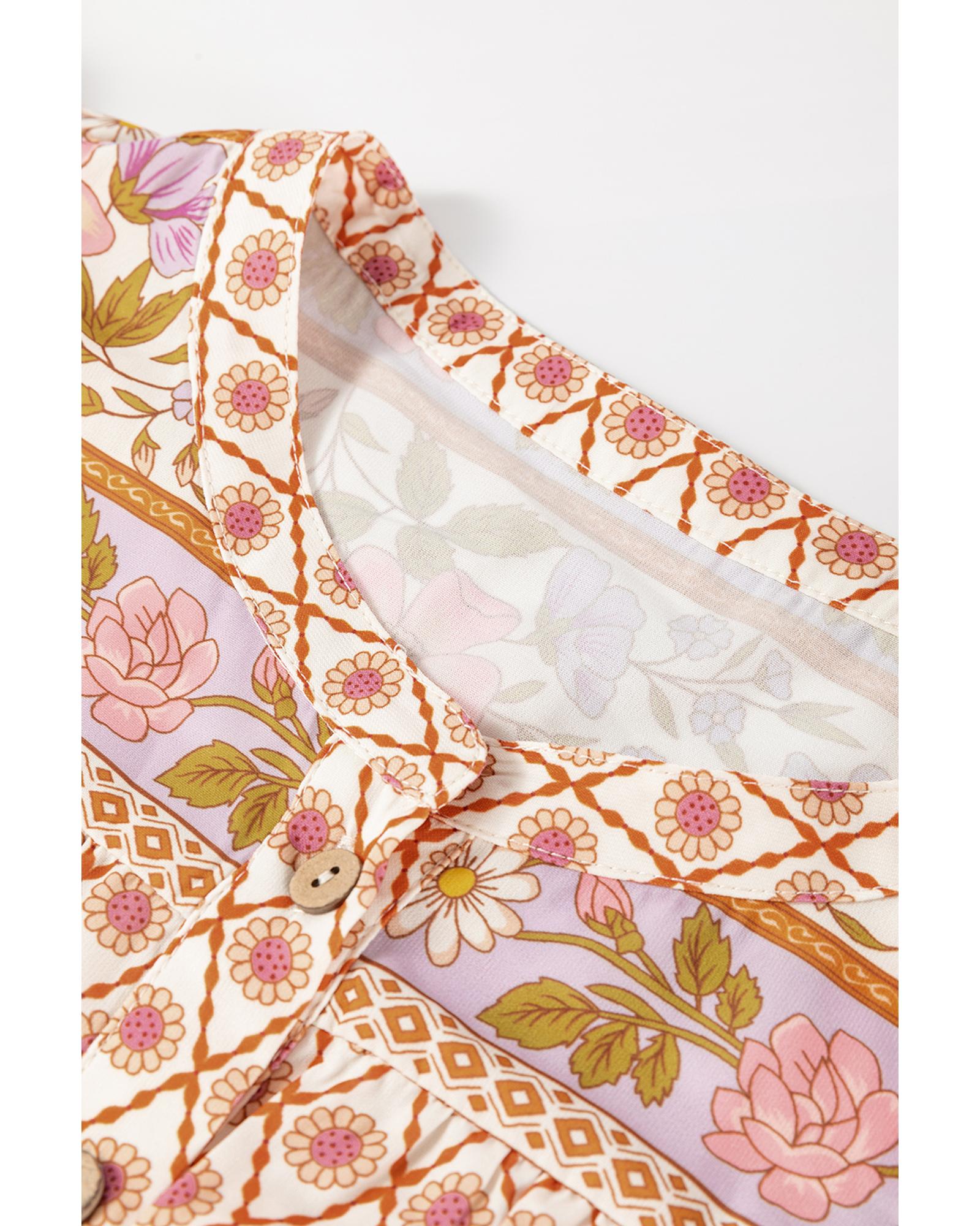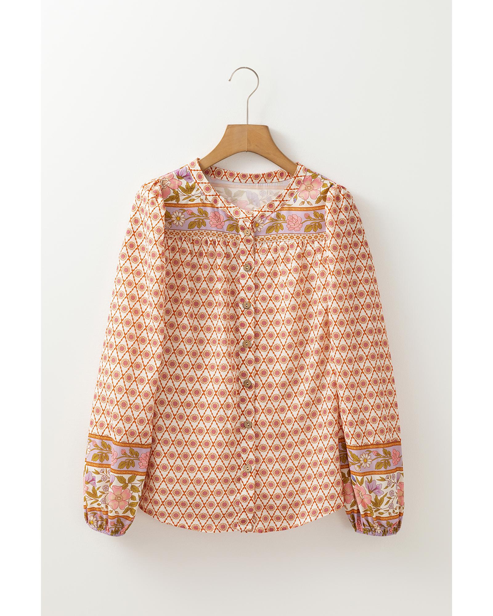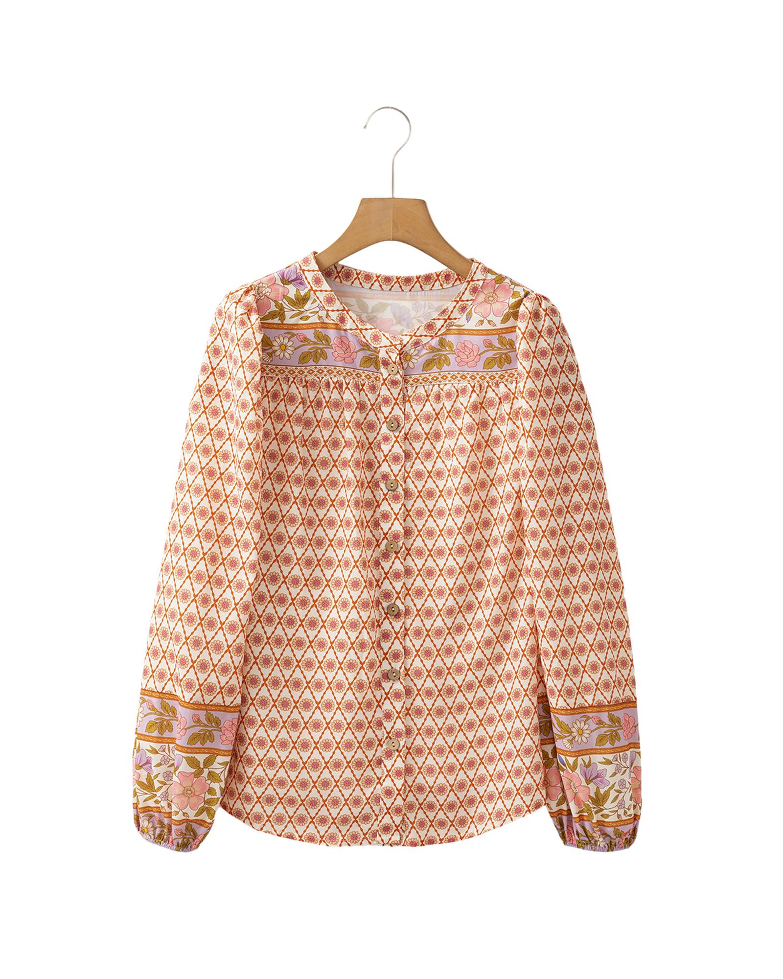 Multicolour Boho Floral Mixed Print Puff Sleeve Shirt – S
