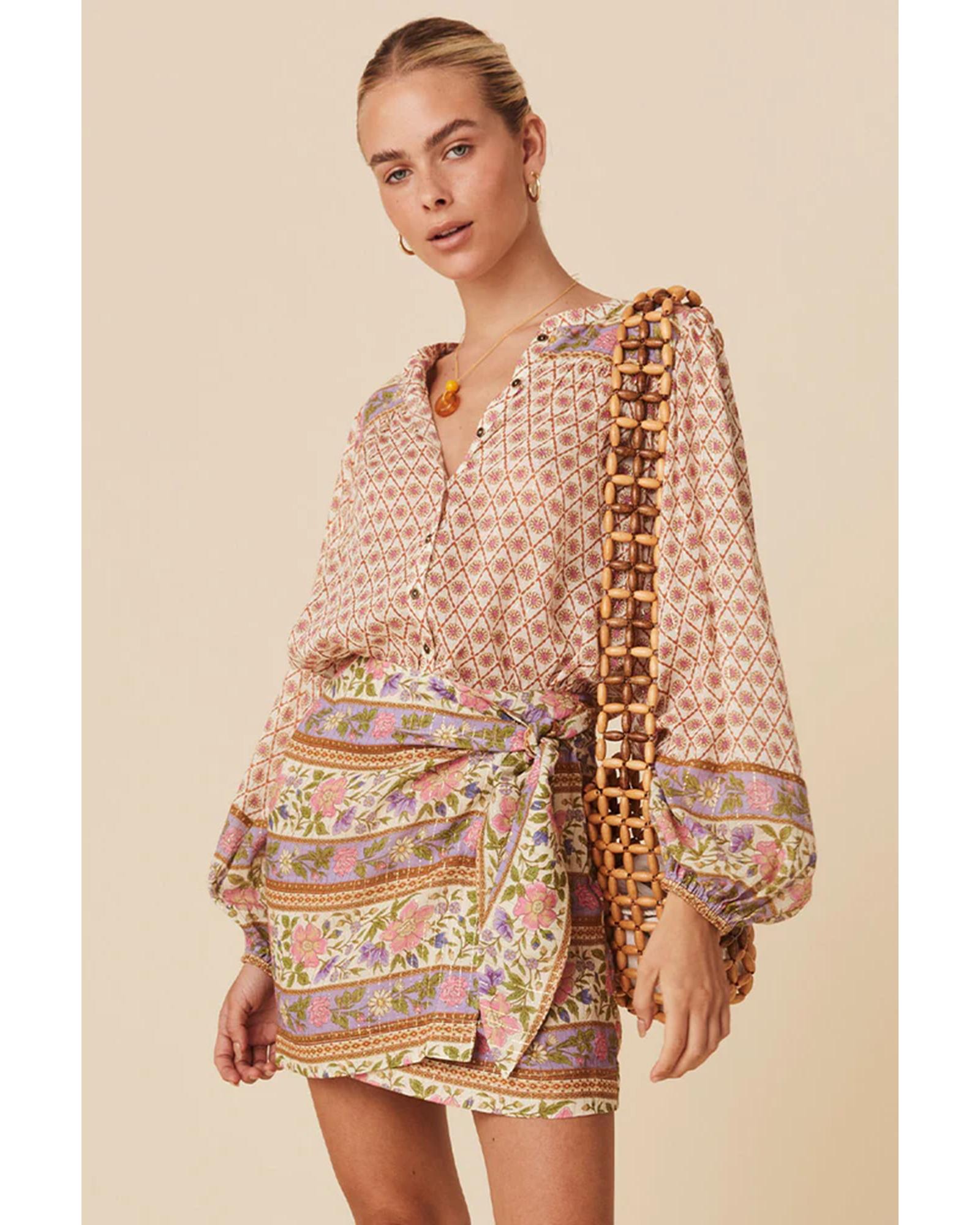 Multicolour Boho Floral Mixed Print Puff Sleeve Shirt – XL