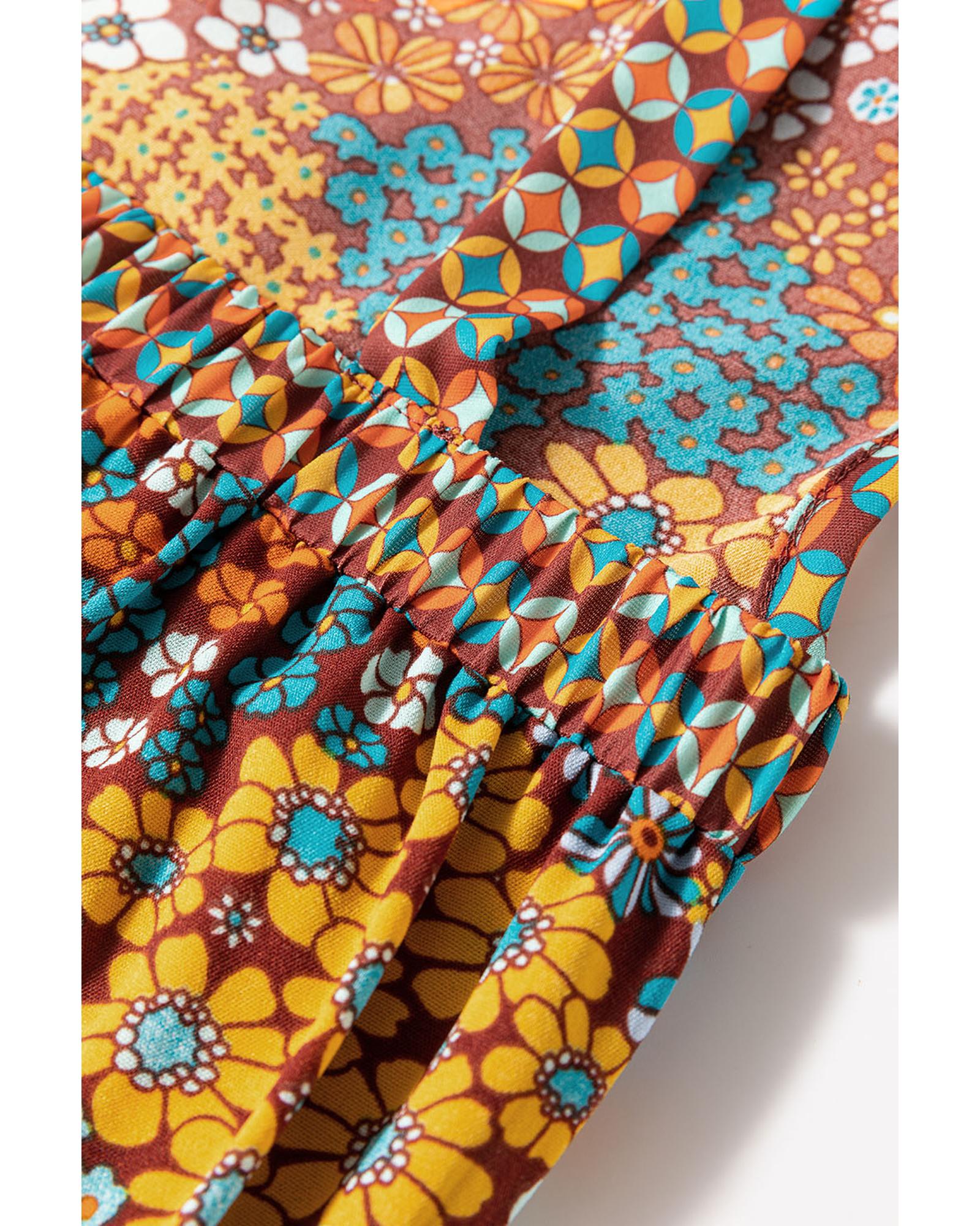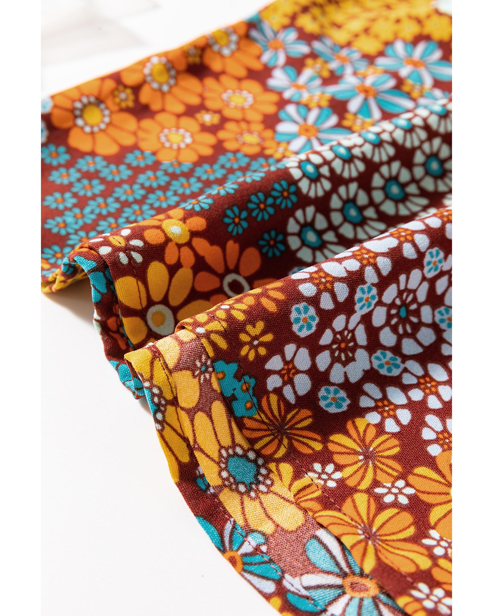 Multicolour Boho Floral Print Crossed Straps Ankle-length Jumpsuit – M