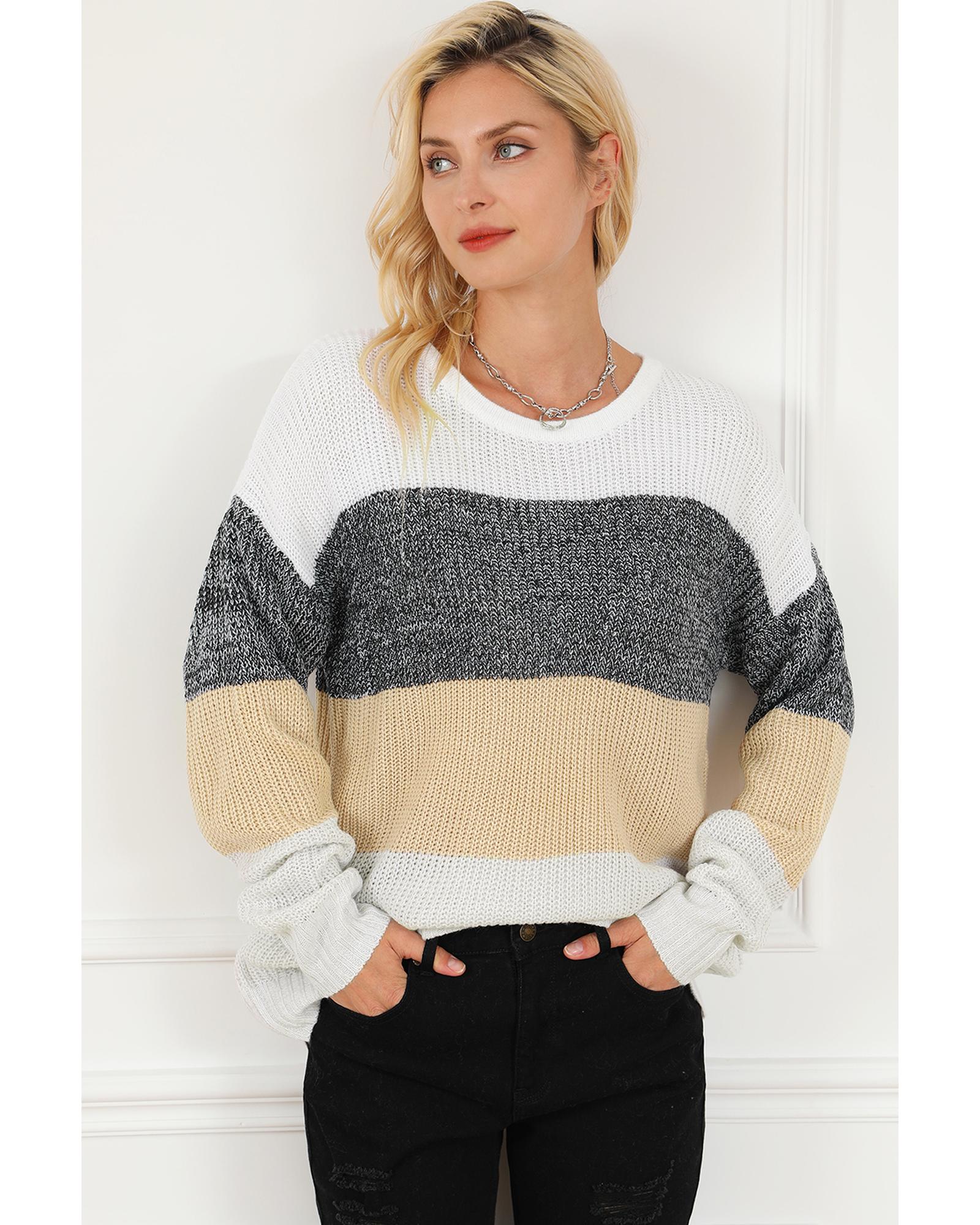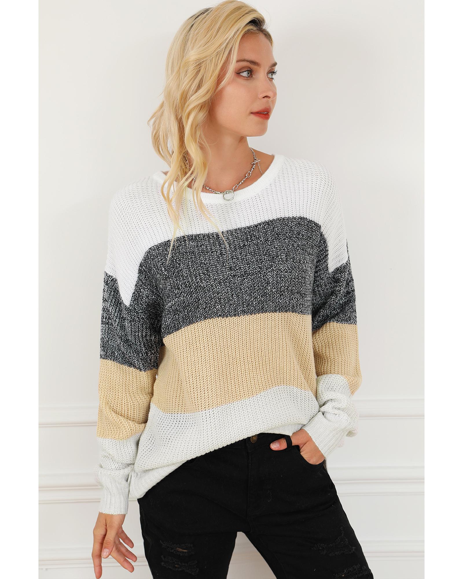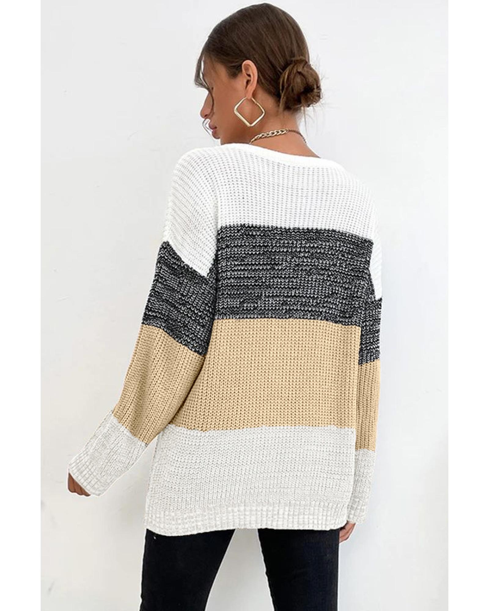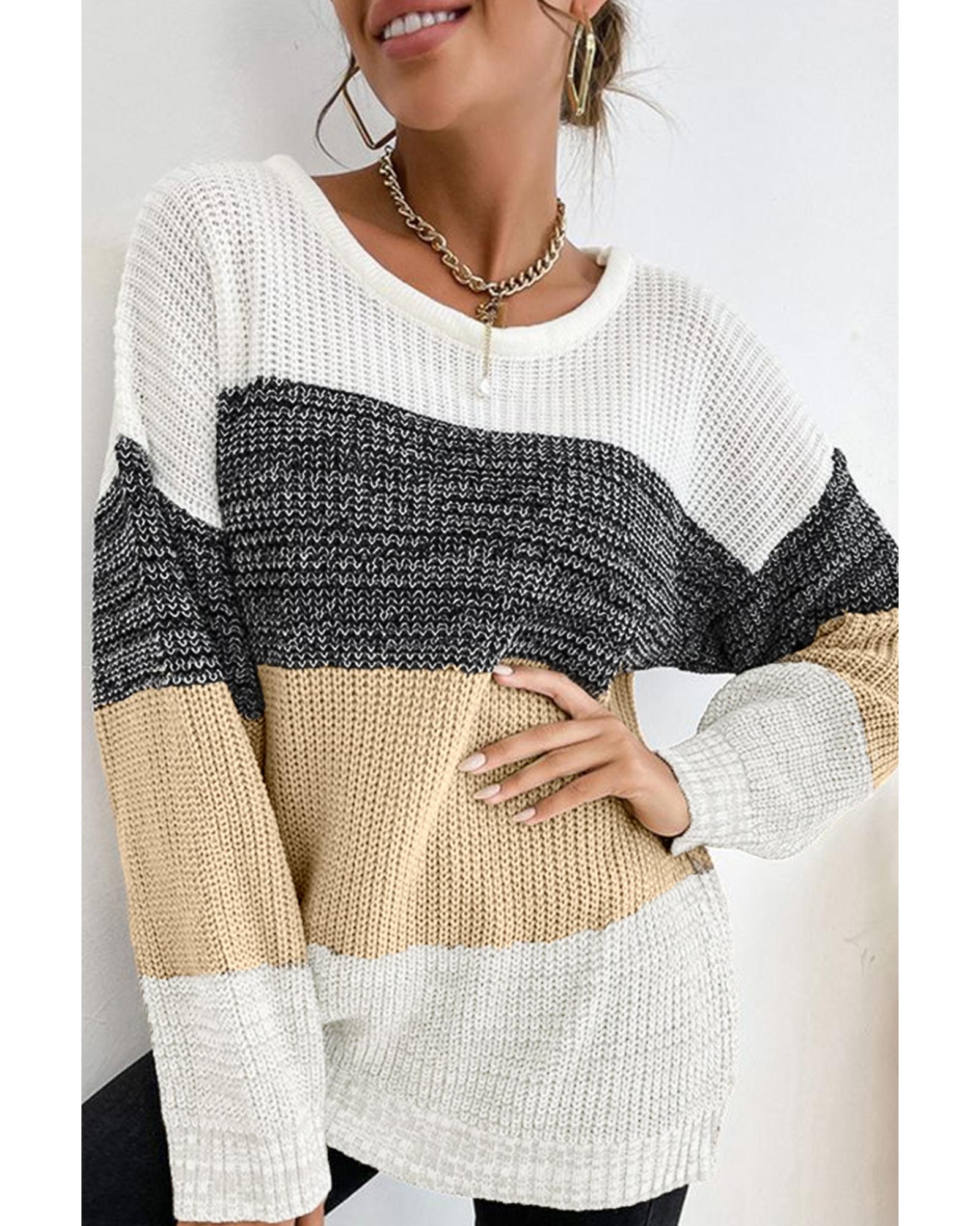 Multicolour Color Block Drop Shoulder Knit Sweater – L
