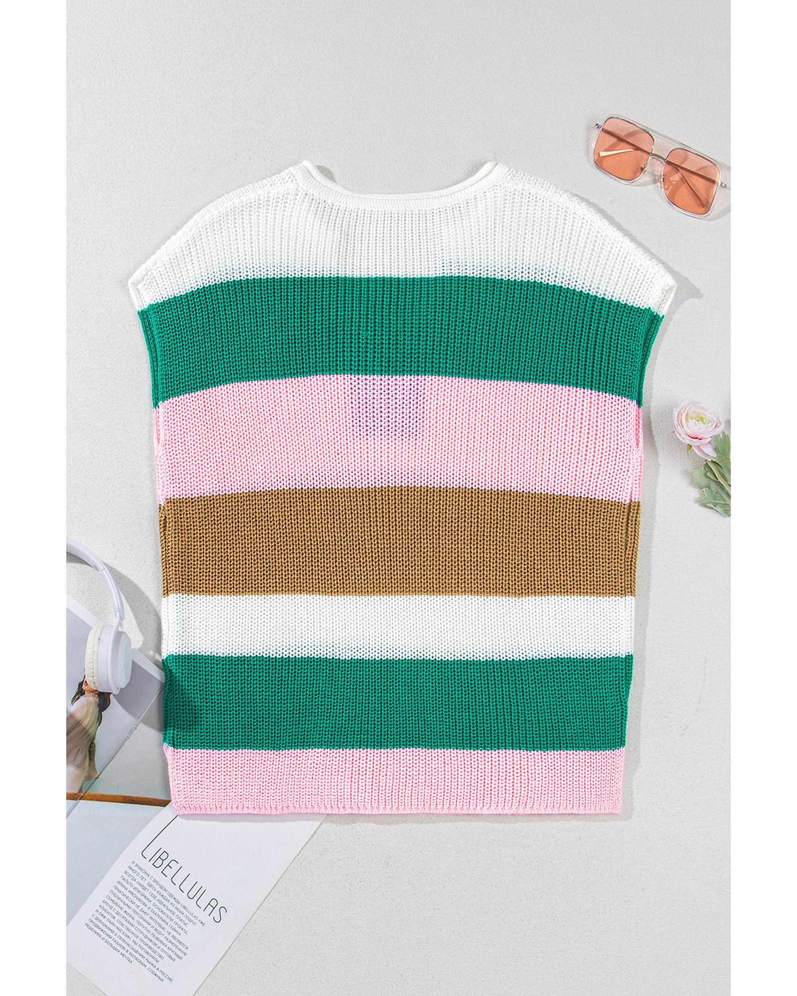 Multicolour Color Block Notch V Neck Sweater T Shirt – L
