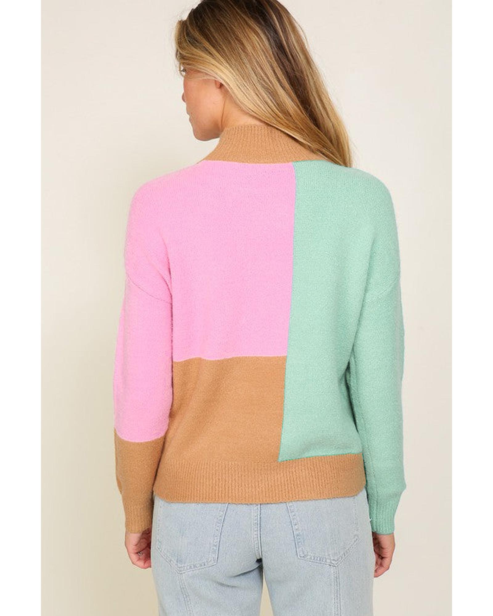 Multicolour Colorblock Mock Neck Ribbed Trim Sweater – L