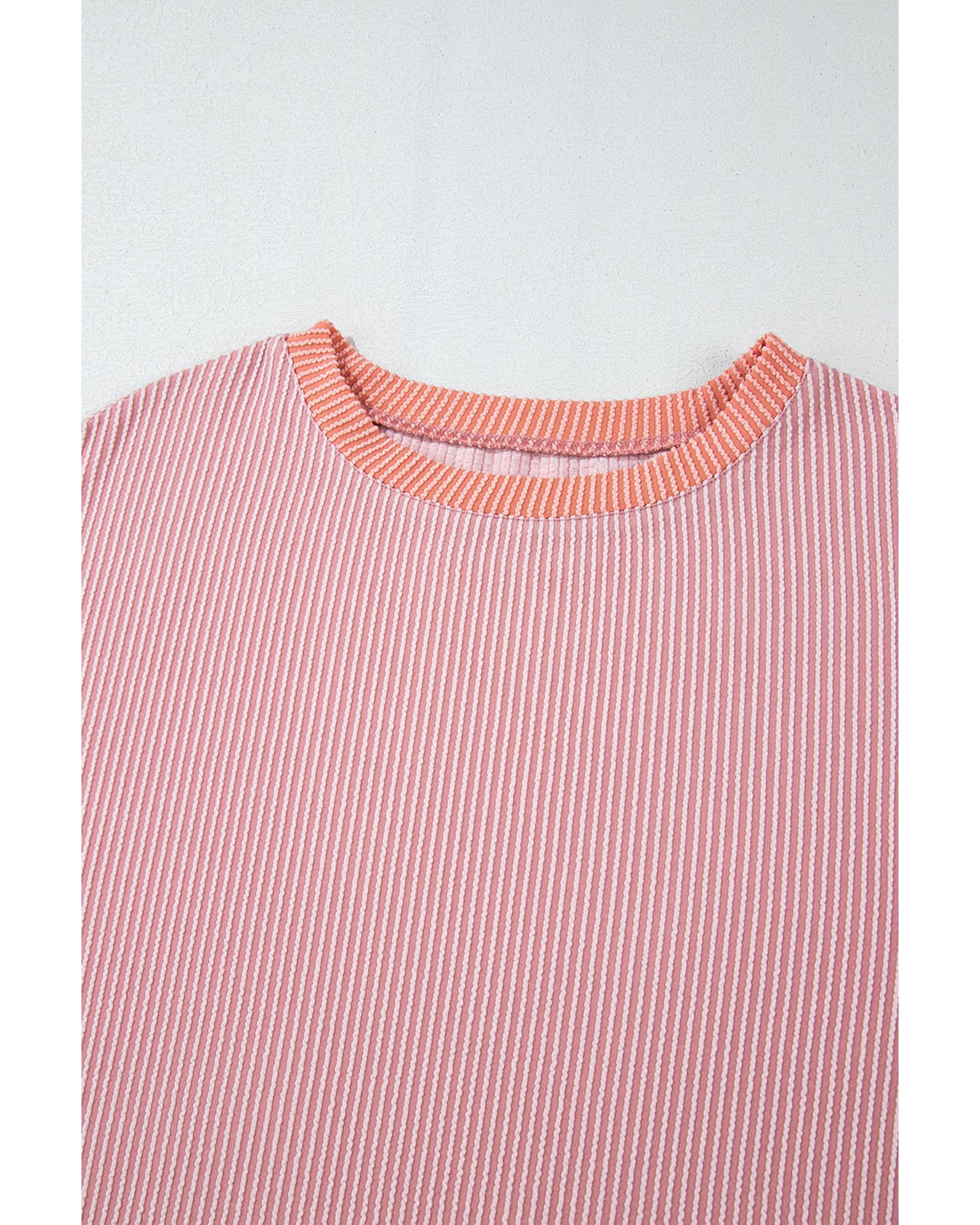 Multicolour Corded Colorblock Patchwork Drop Shoulder Long Sleeve Top – L