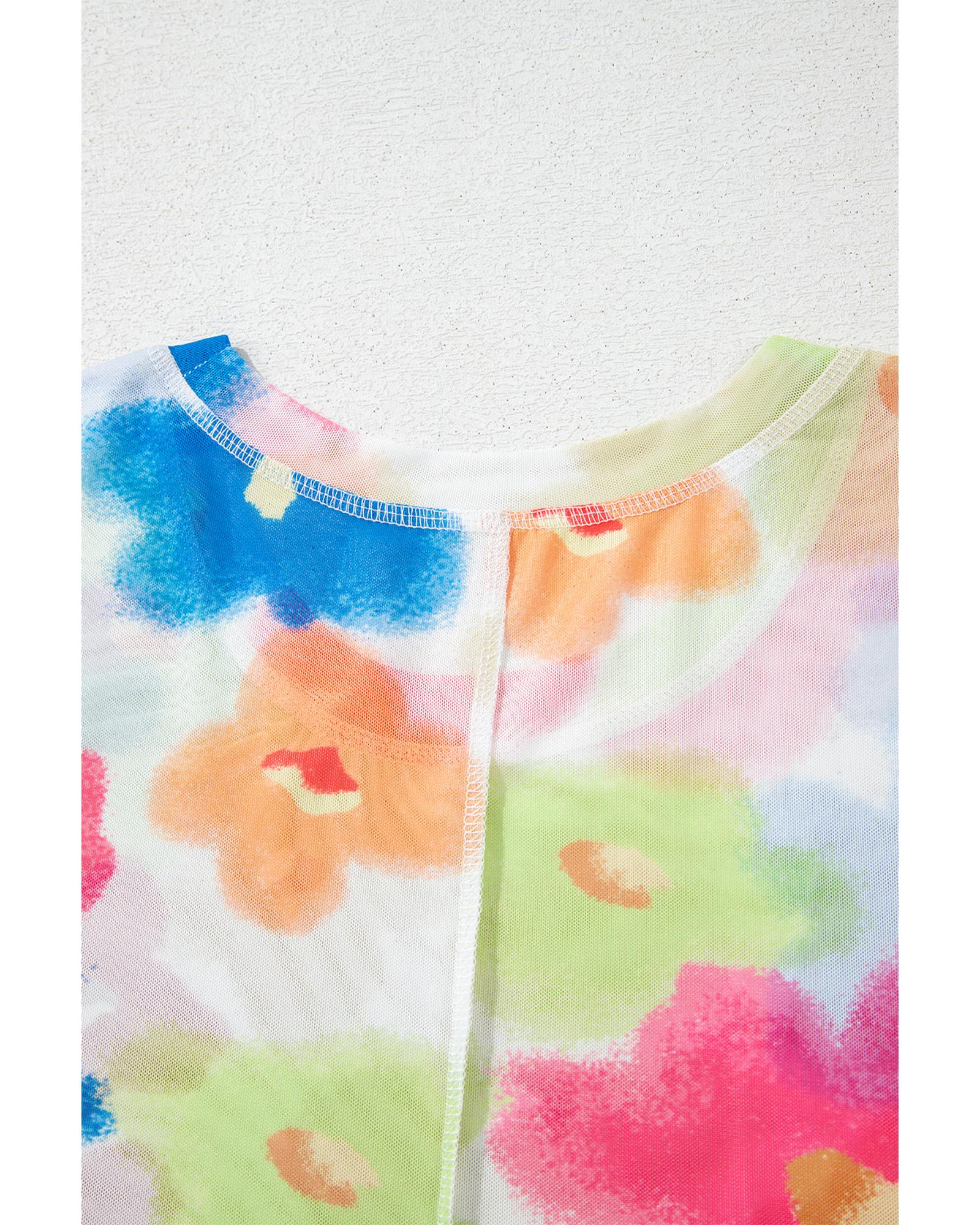 Multicolour Floral Mesh Lettuce Trim Cropped T Shirt – M