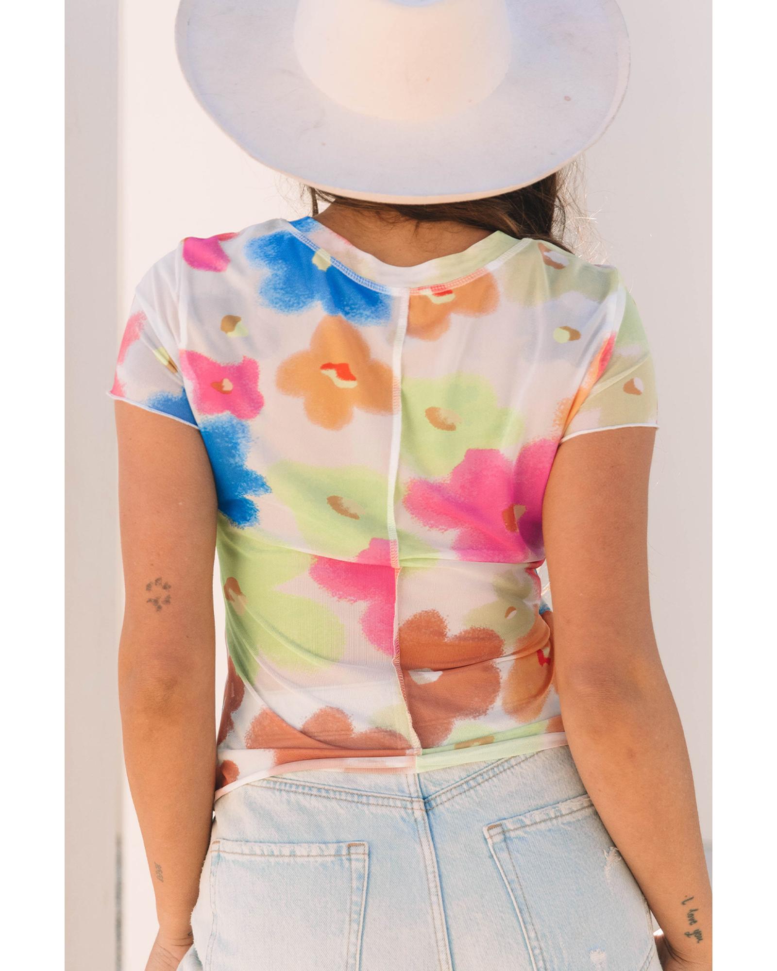 Multicolour Floral Mesh Lettuce Trim Cropped T Shirt – XL