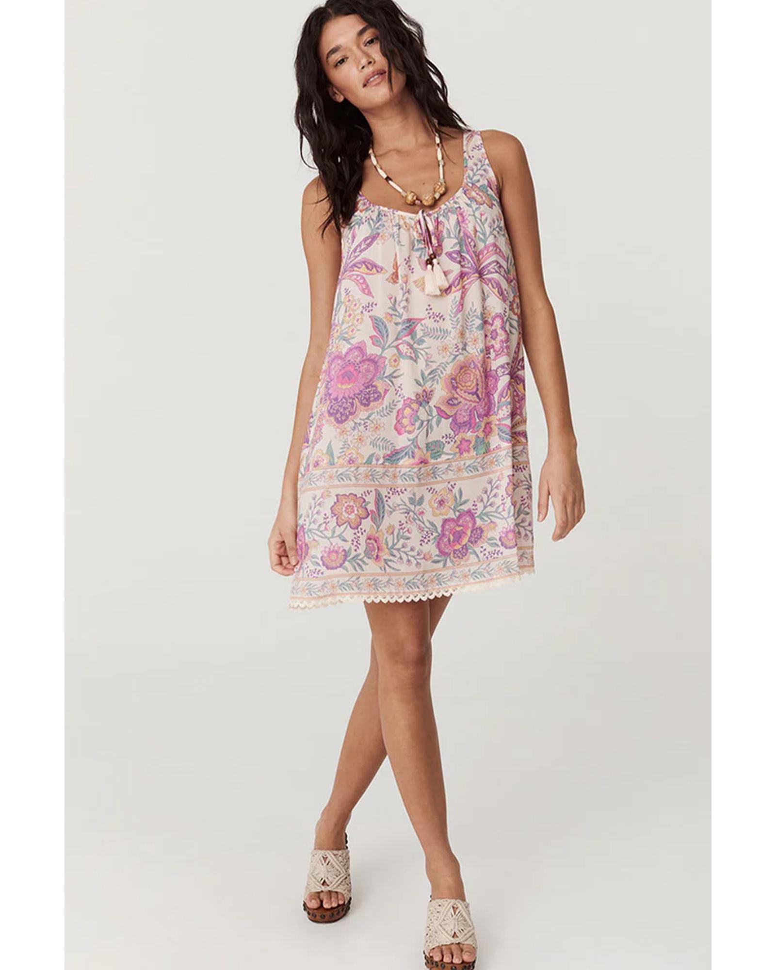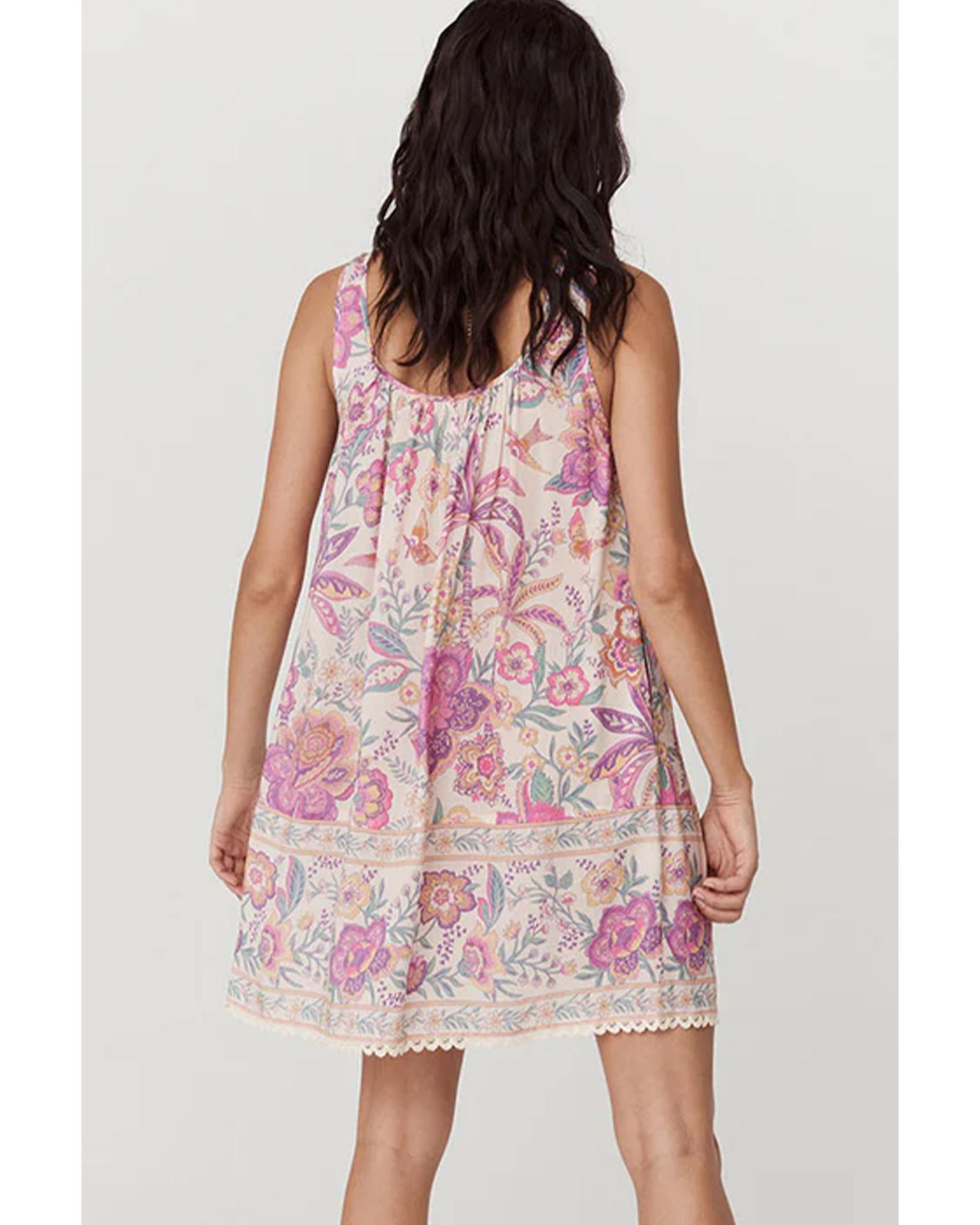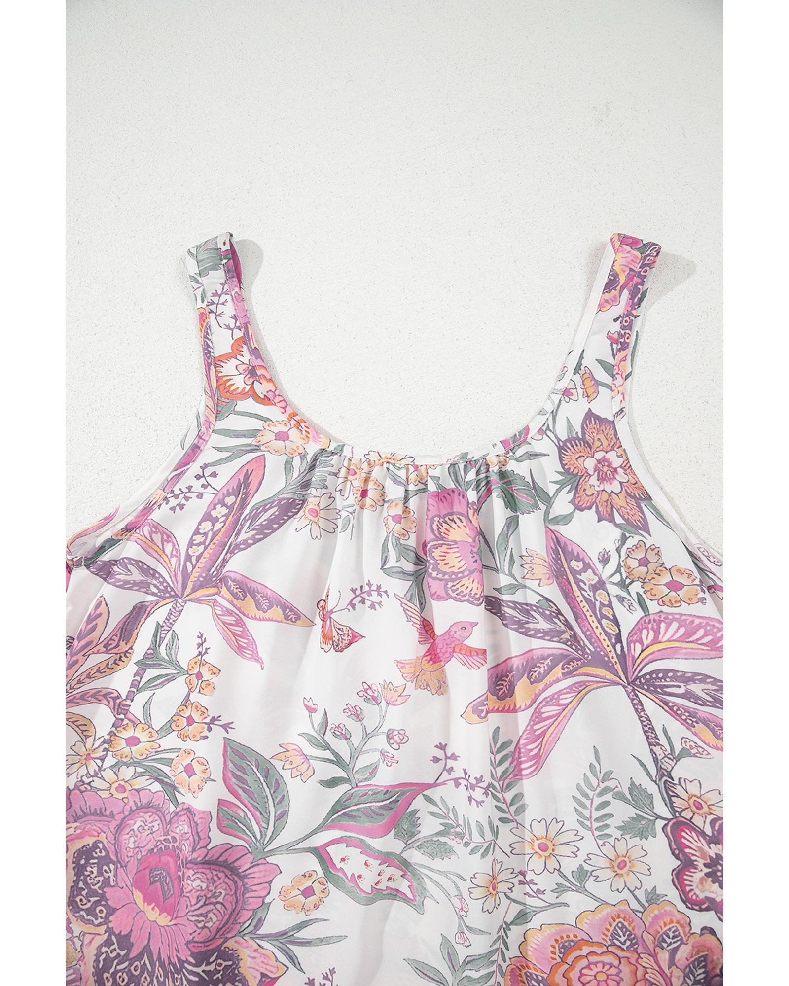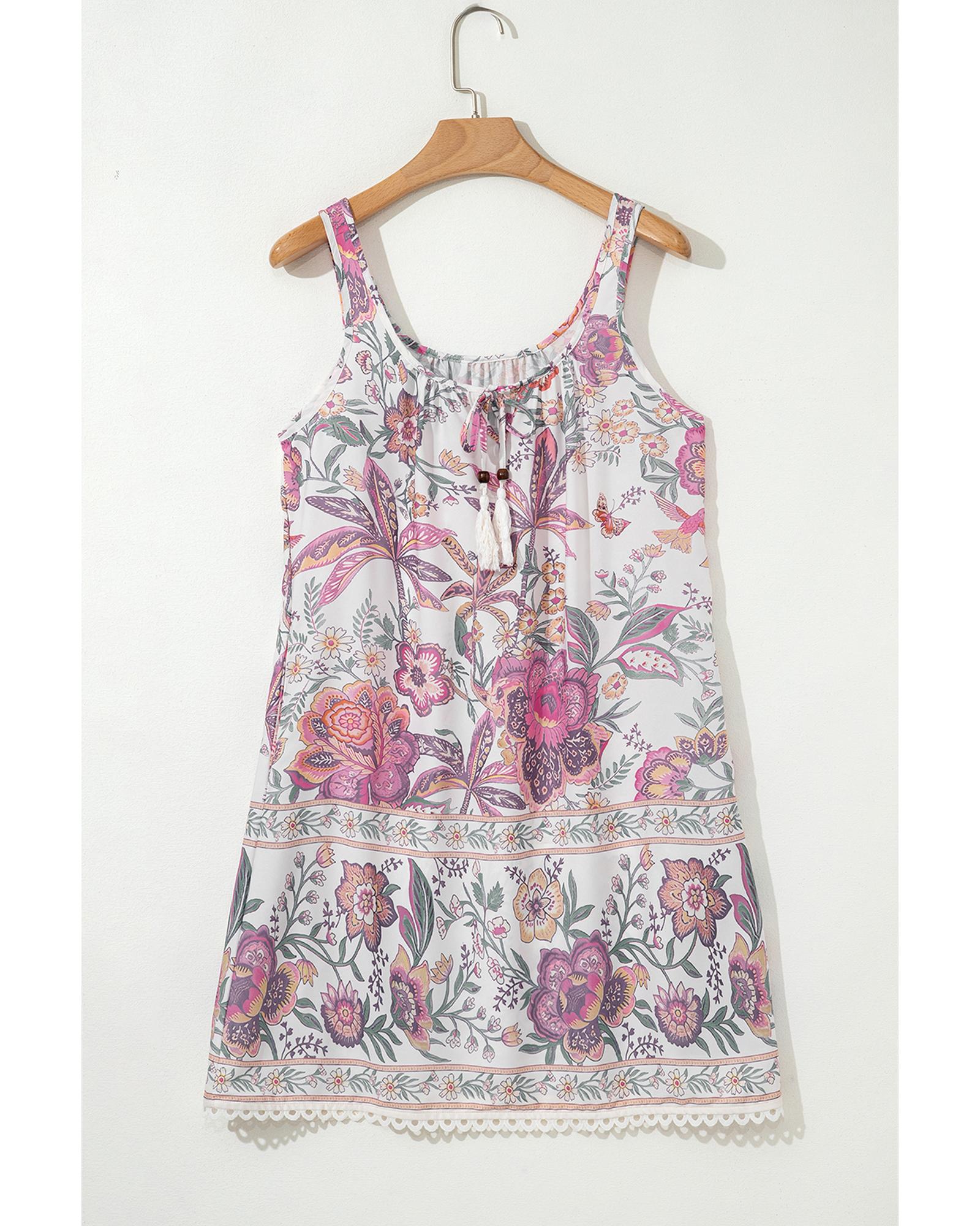 Multicolour Floral Print Fringed Tie U Neck Sleeveless Mini Dress – M