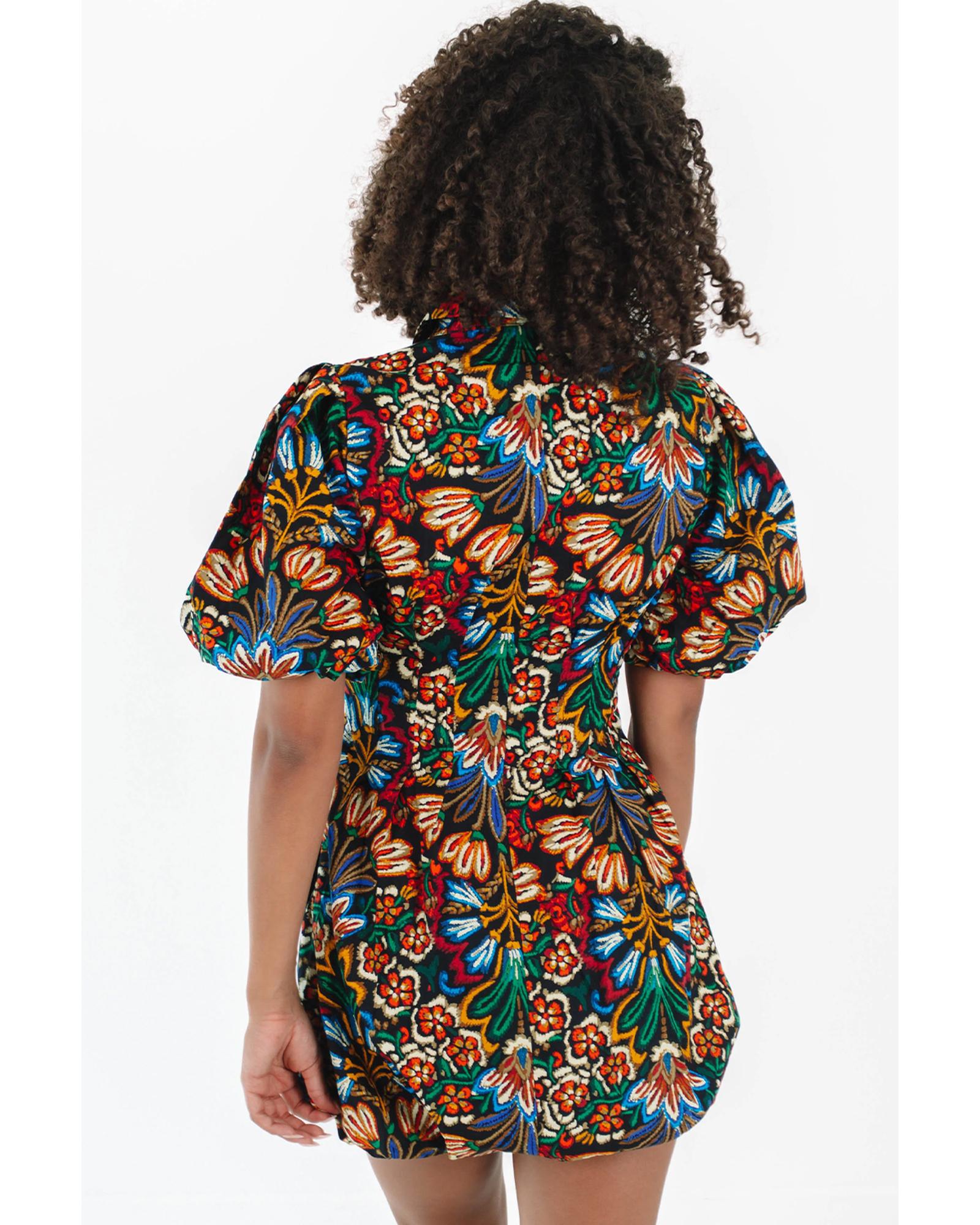 Multicolour Floral Puff Short Sleeve Shirt Mini Dress – XL