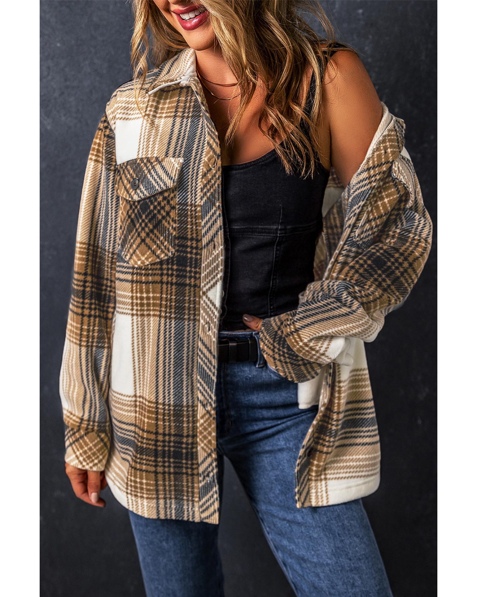 Multicolour Plaid Print Flap Pocket Button Up Shacket – M