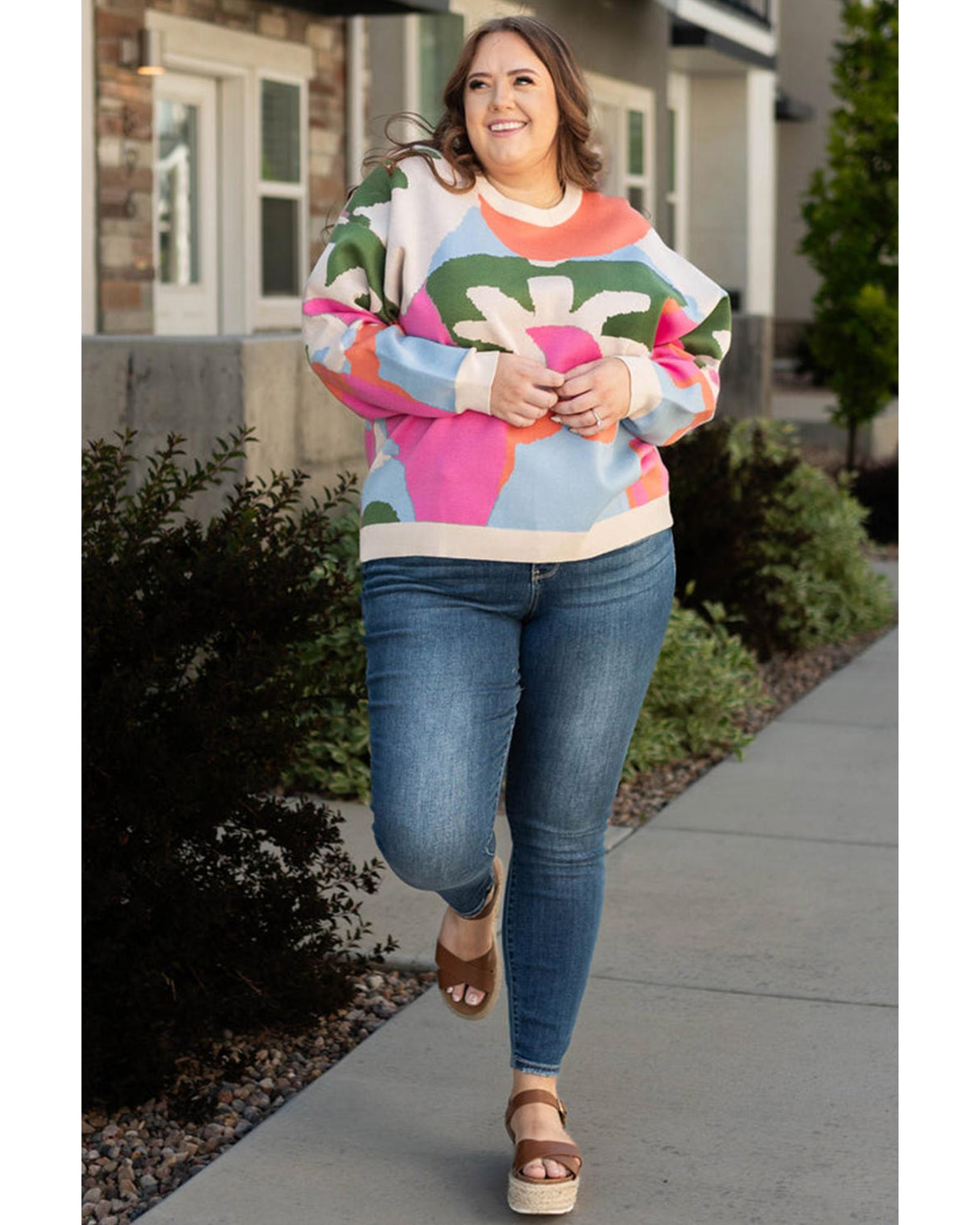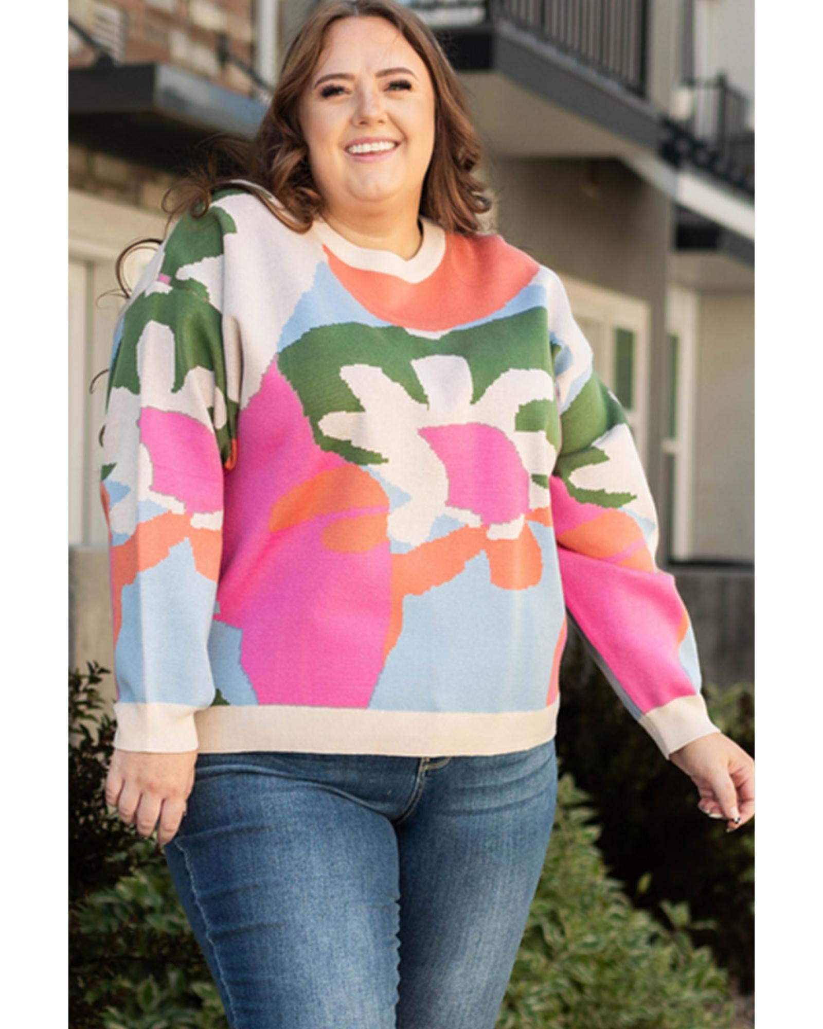 Multicolour Plus Size Floral Drop Shoulder Sweater – 2X