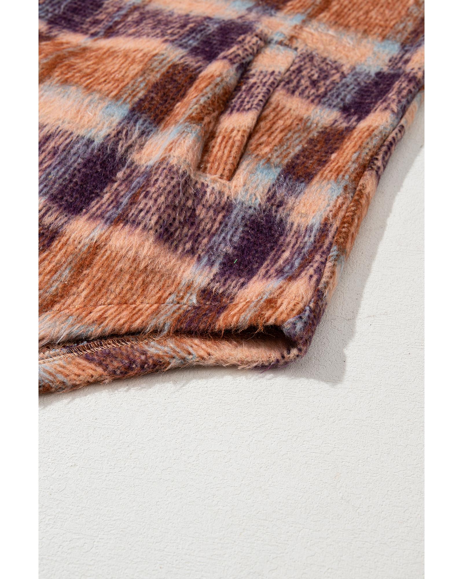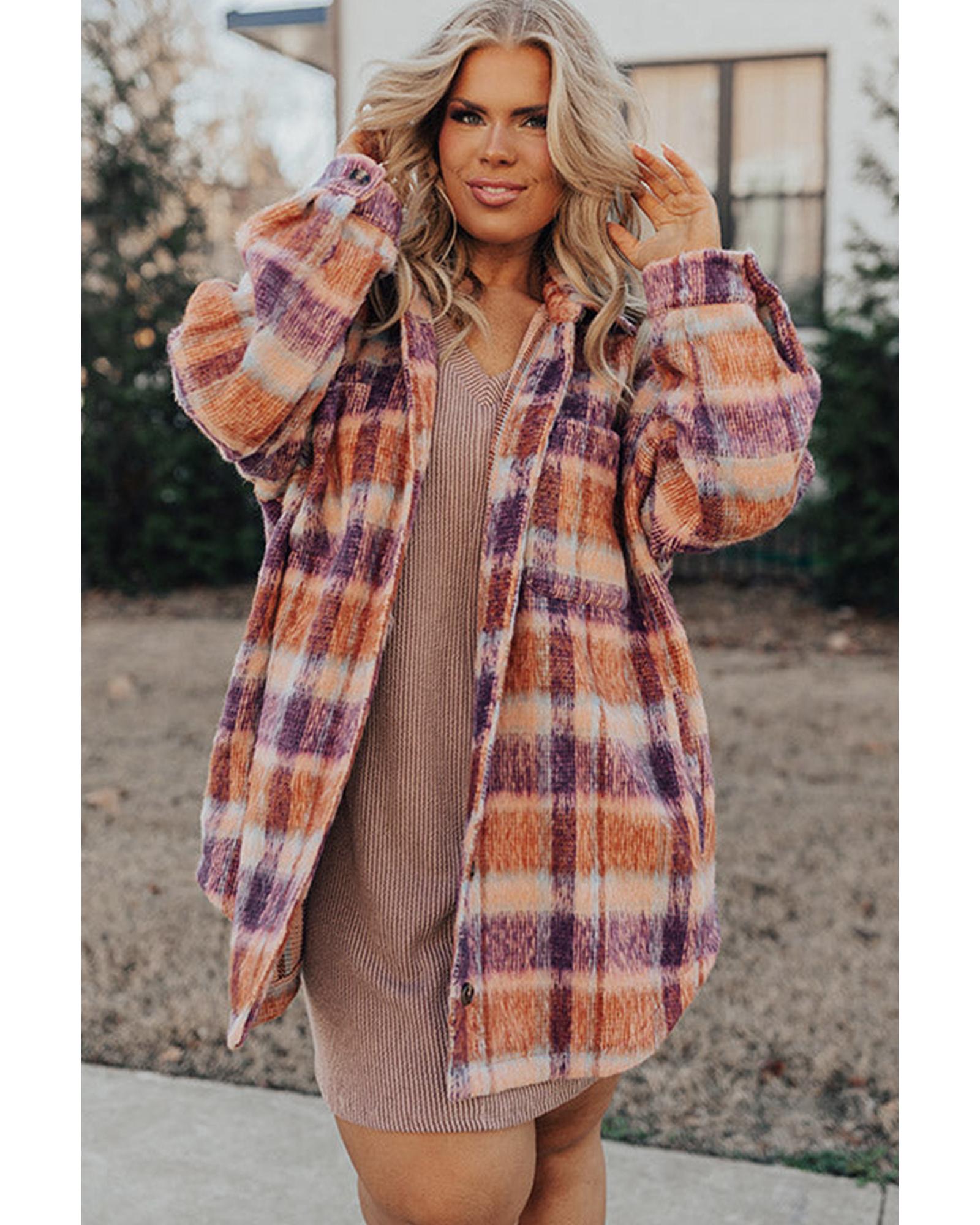 Multicolour Plus Size Plaid Print Collared Button up Jacket – 2X