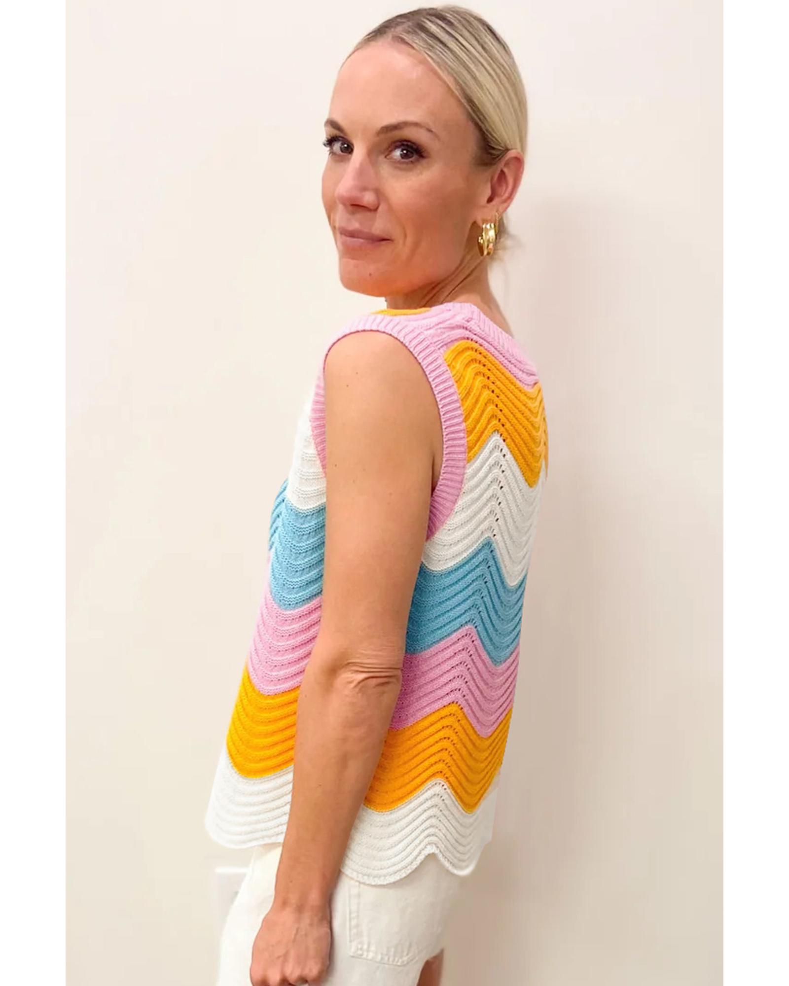 Multicolour Striped Colorblock Scalloped Hem Knitted Vest – M