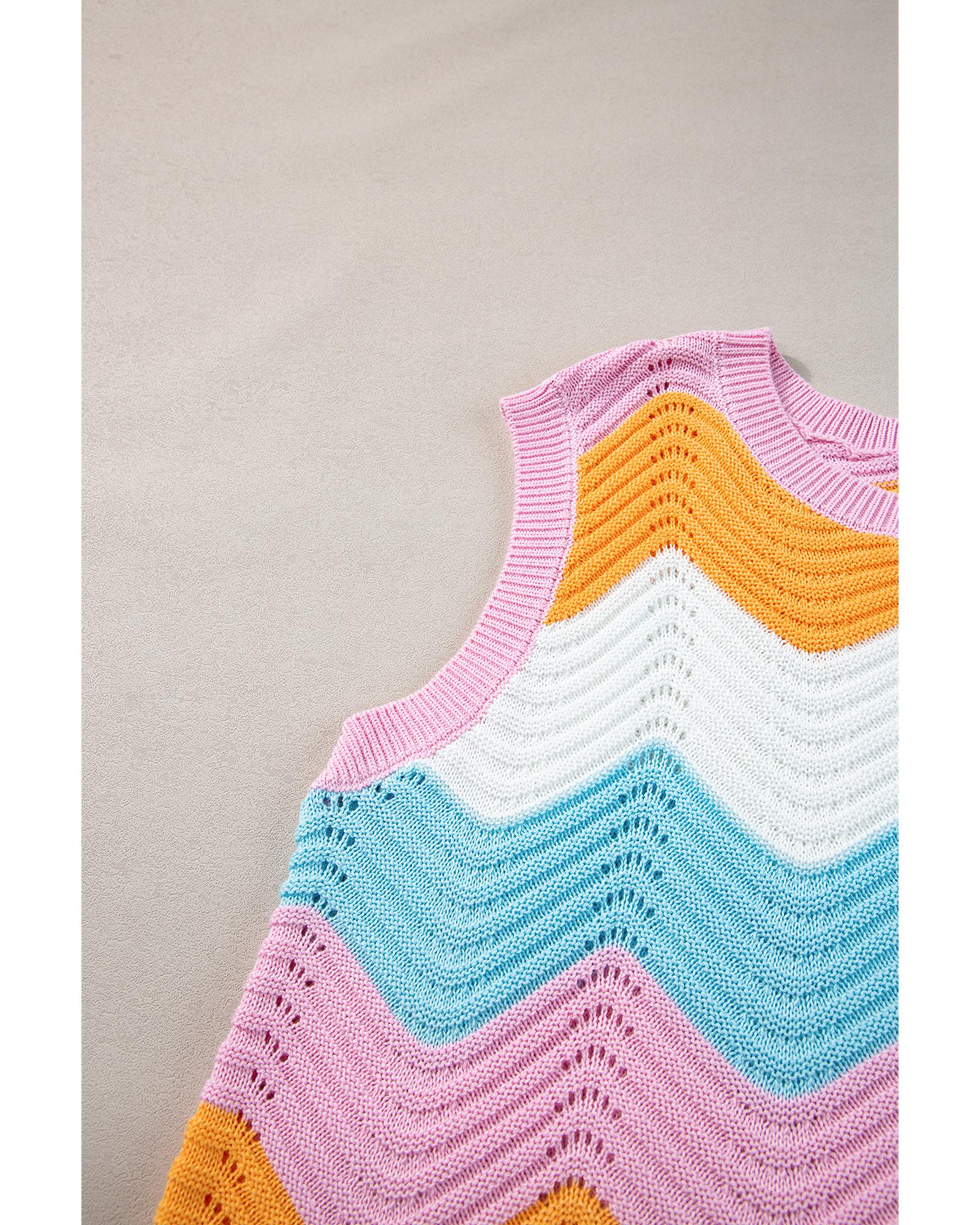 - Multicolored knitted tank top with crocheted knit design