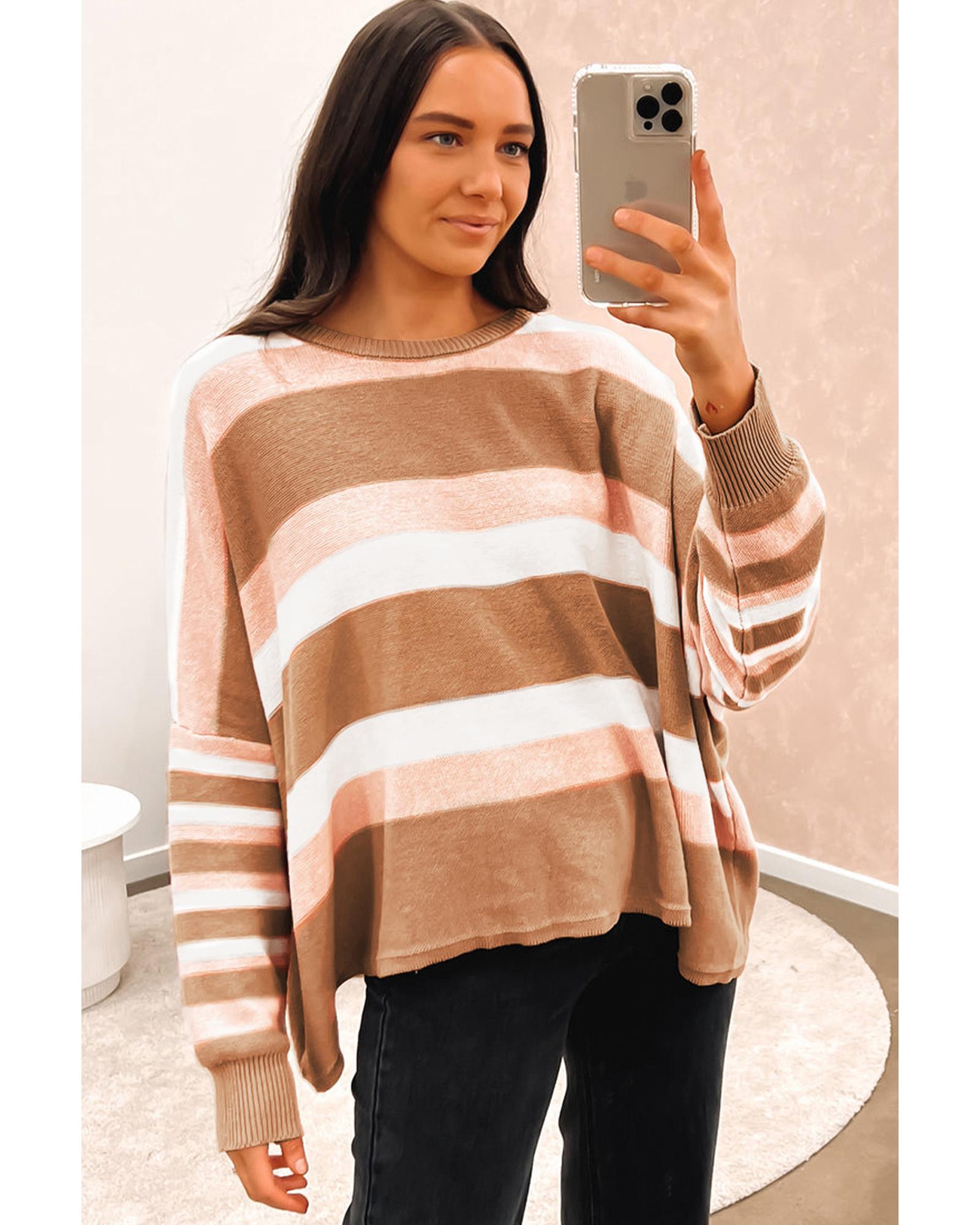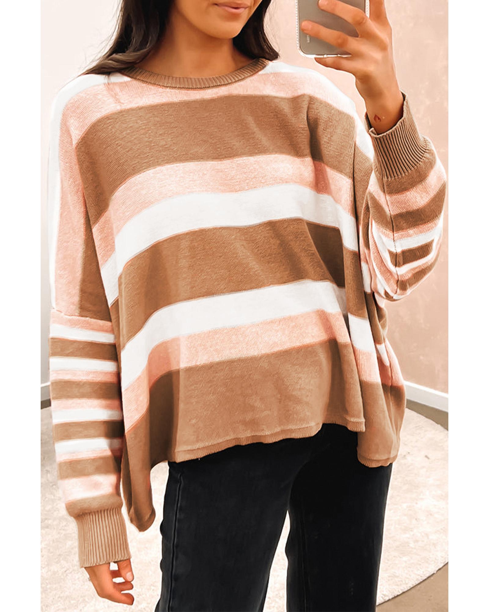 Multicolour Striped Knit Drop Shoulder Loose Sweater – XL