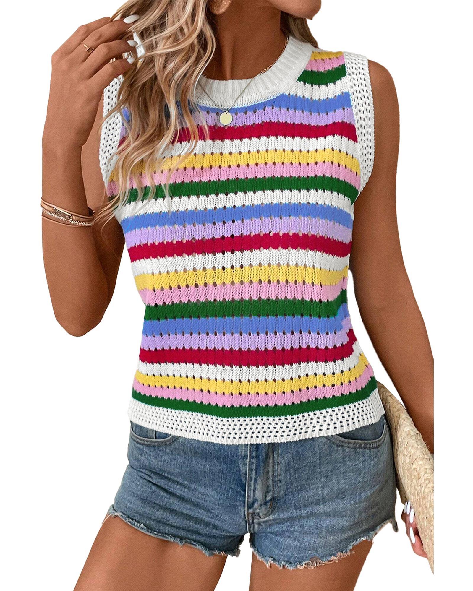 Multicolour Striped Knitted Eyelet Slim Sweater Vest – S