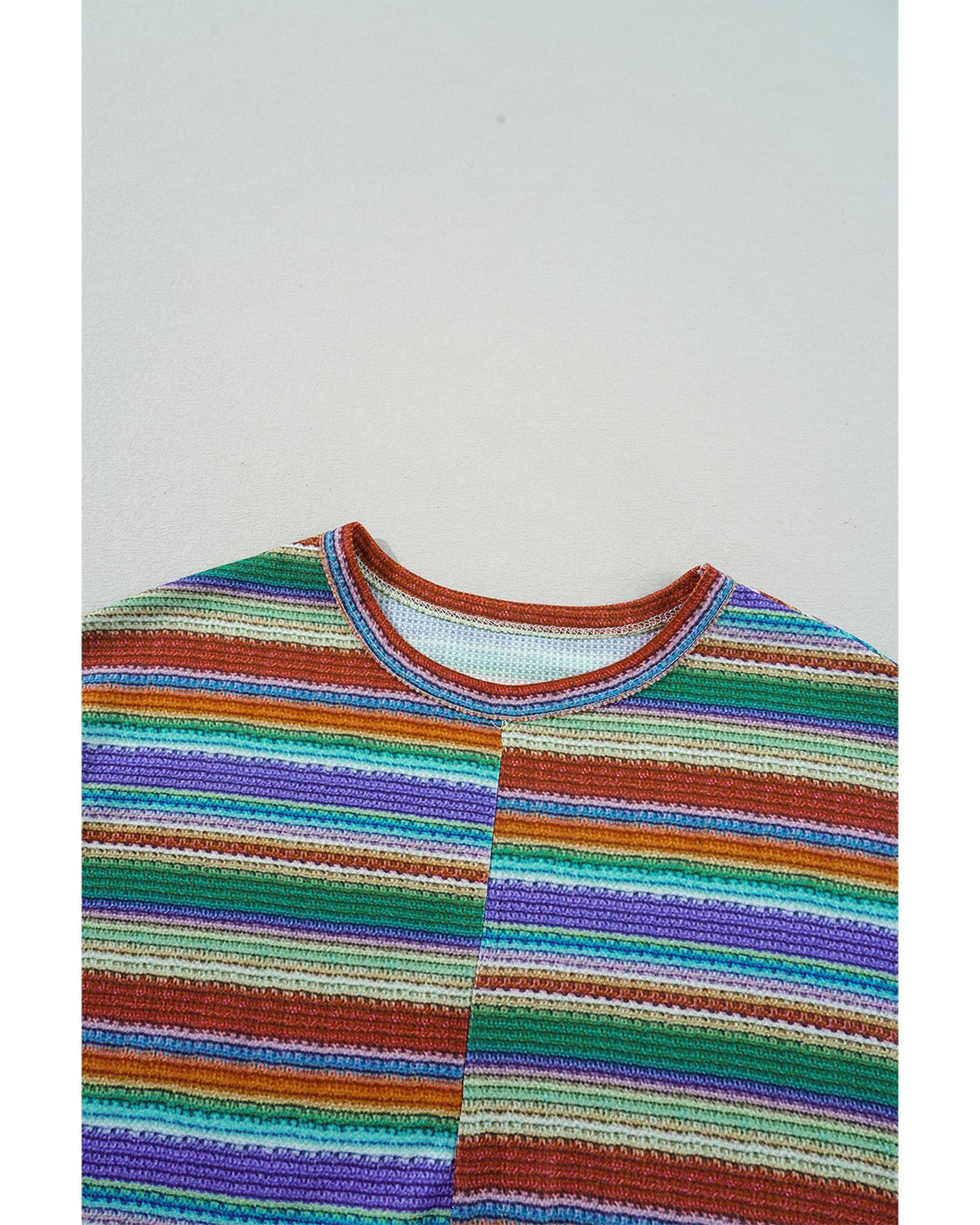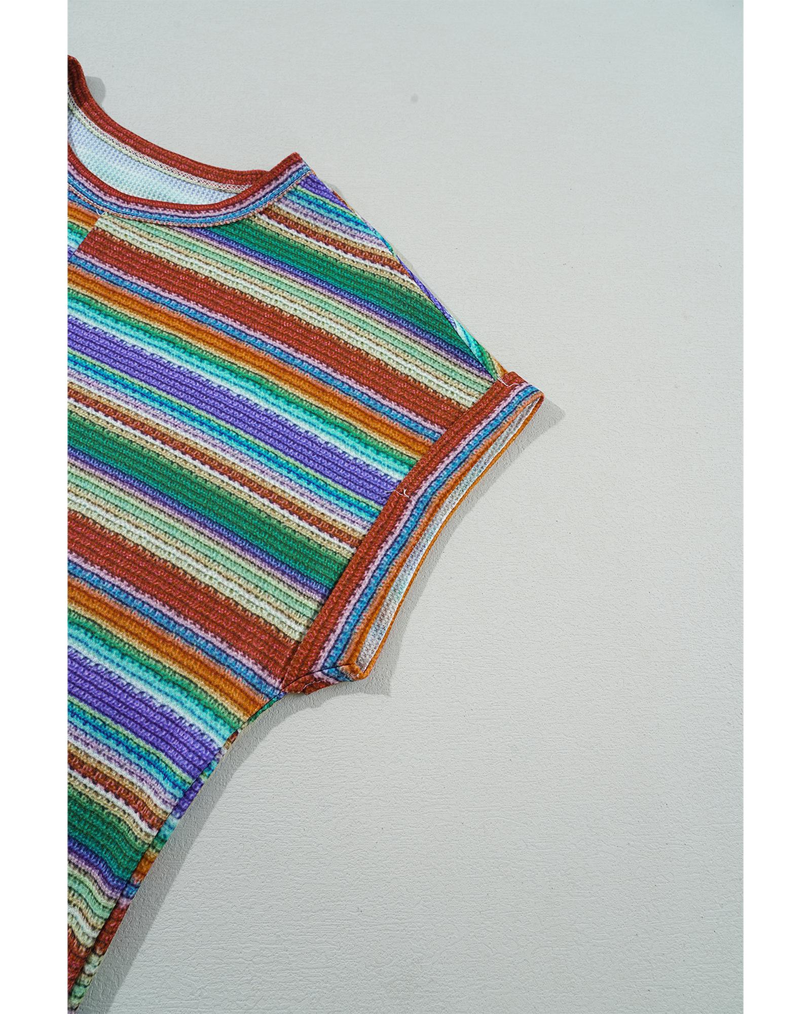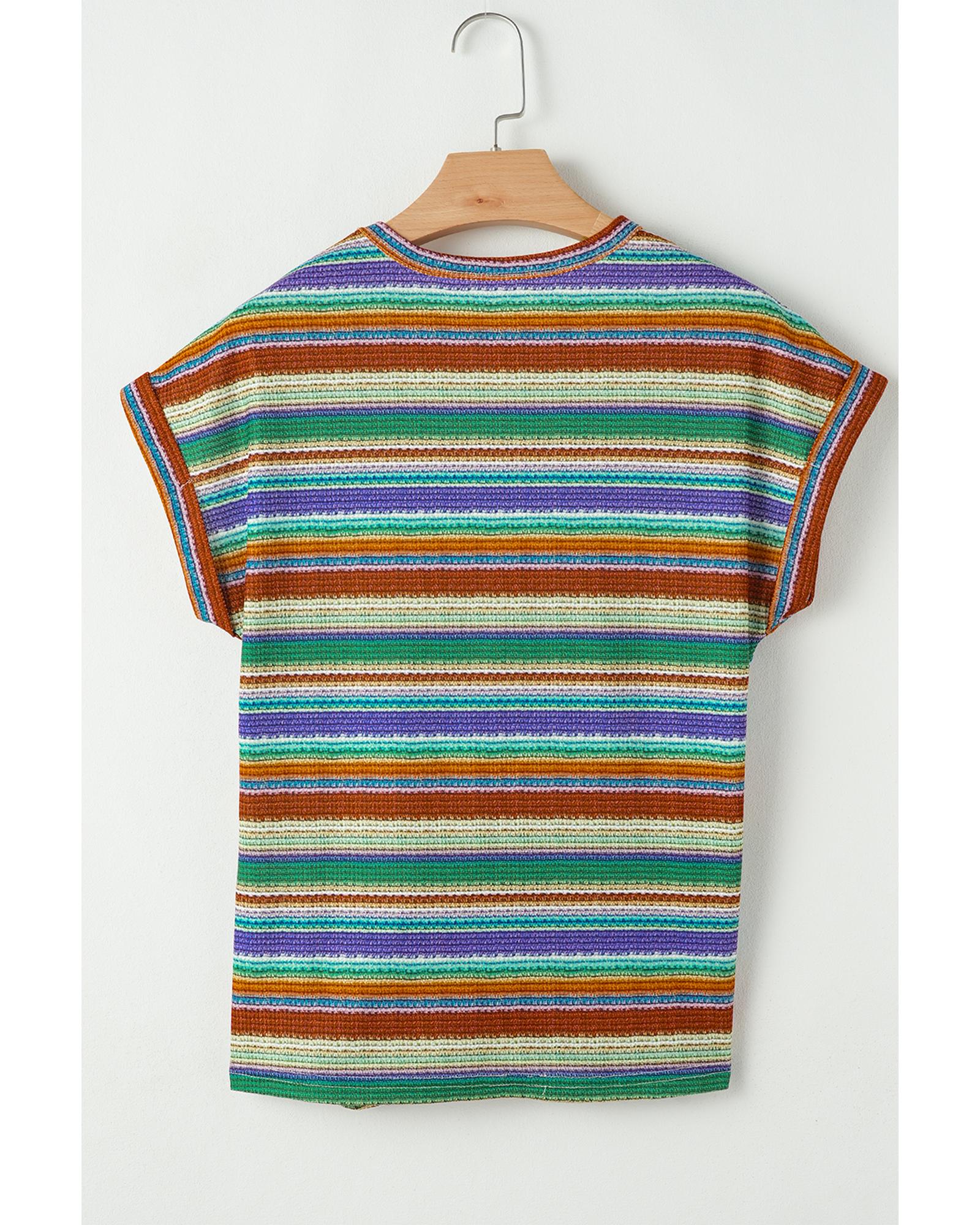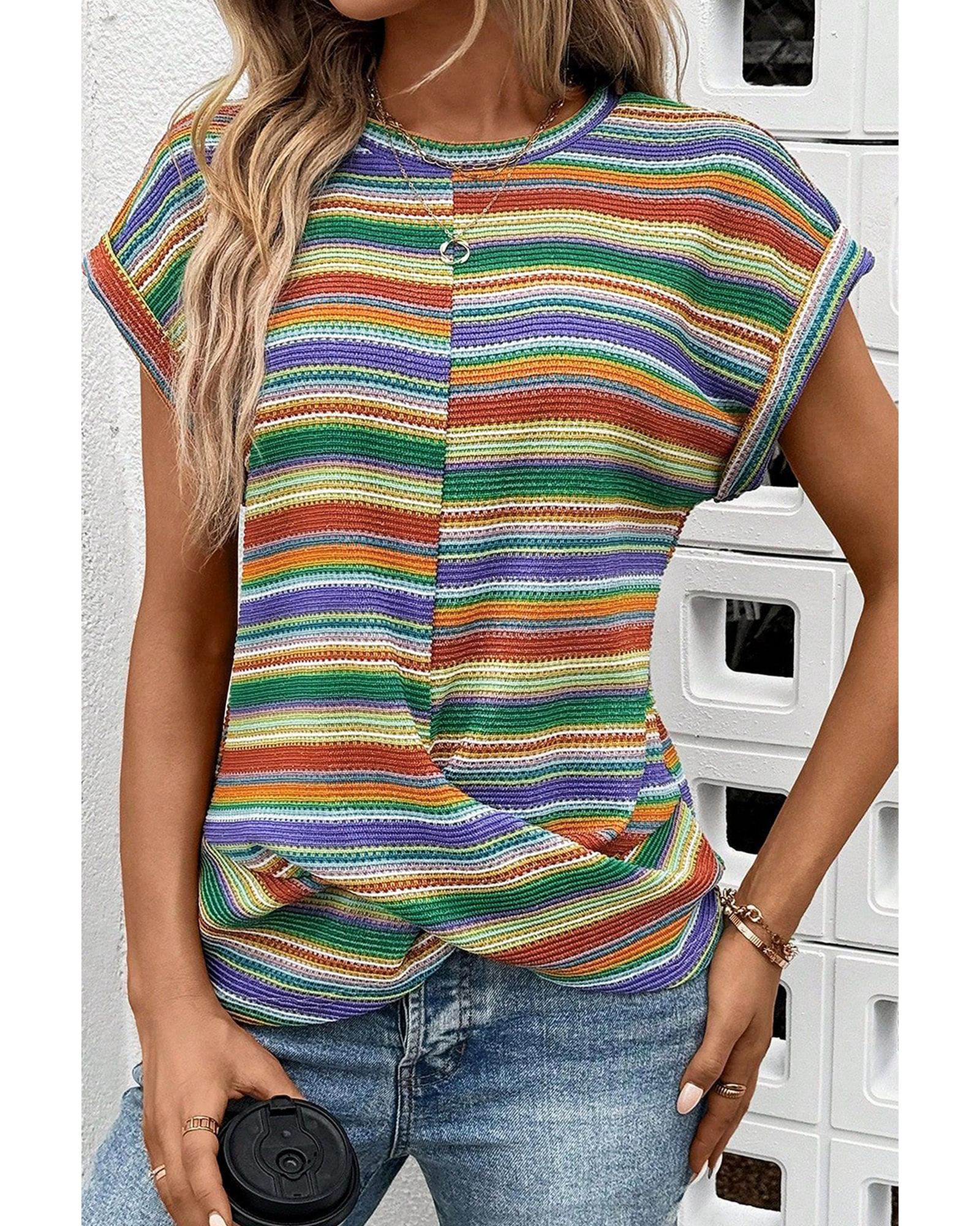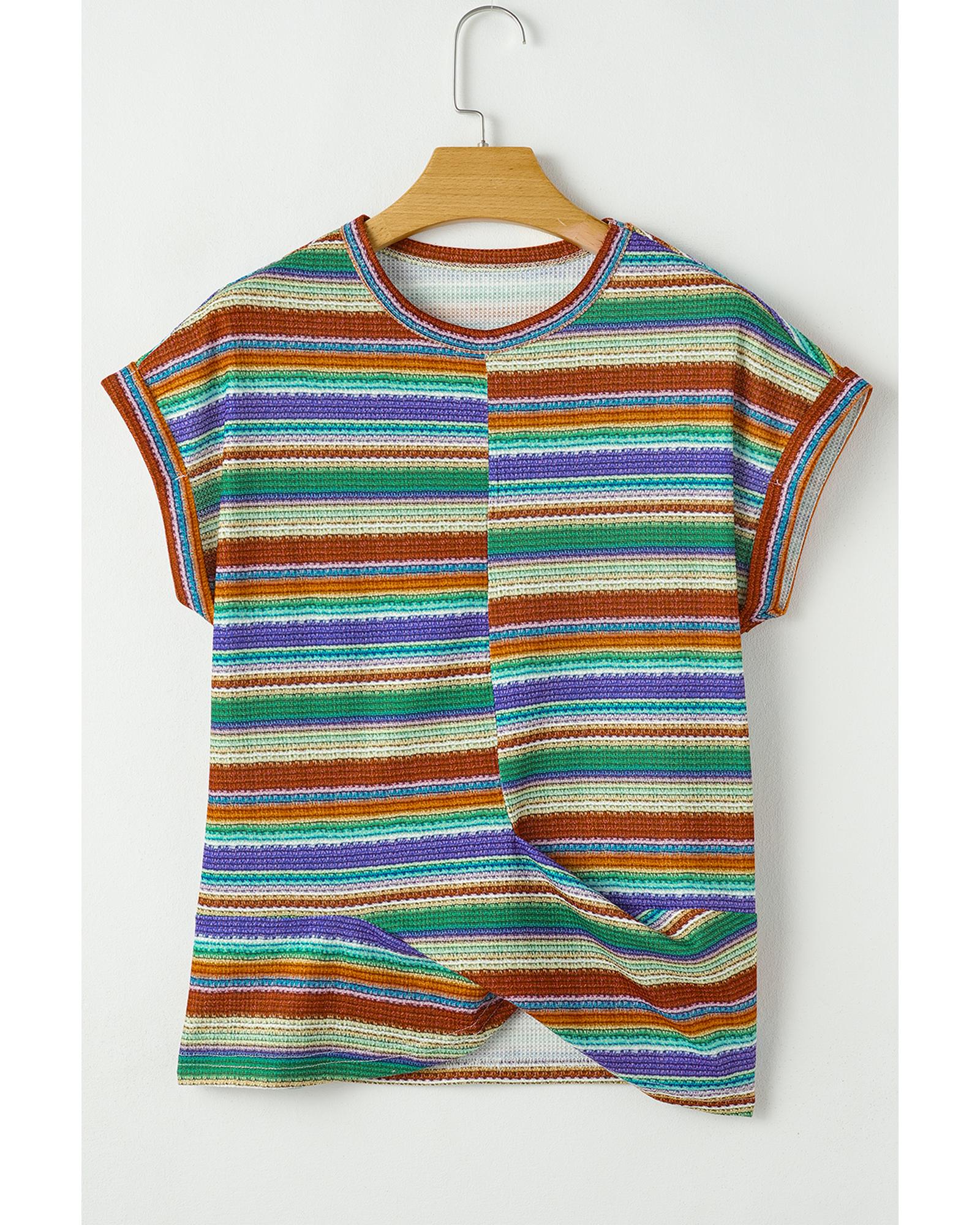 Multicolour Striped Pattern Twist Hem Short Sleeve Top – L