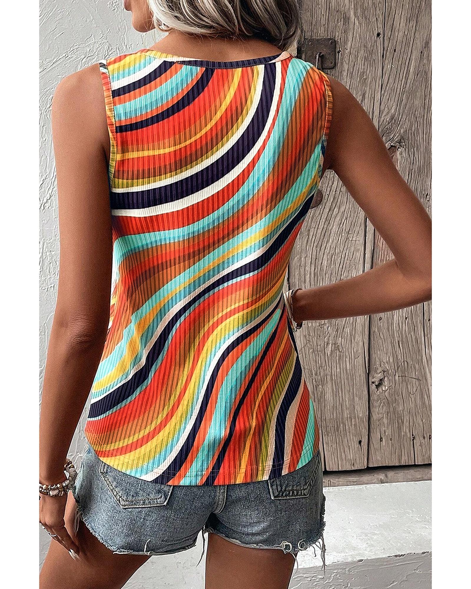 Multicolour Wavy Striped Buttoned V Neck Tank Top – S