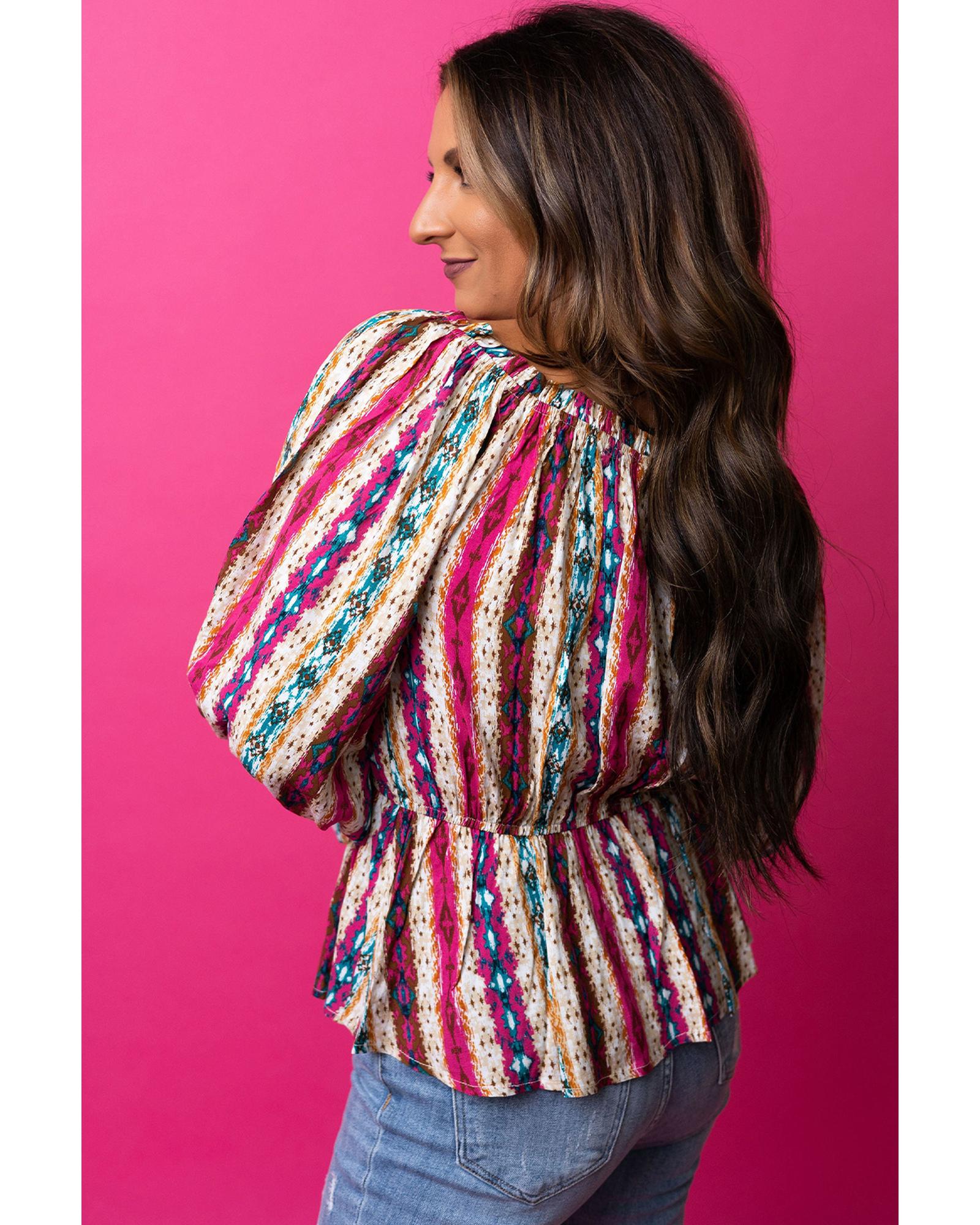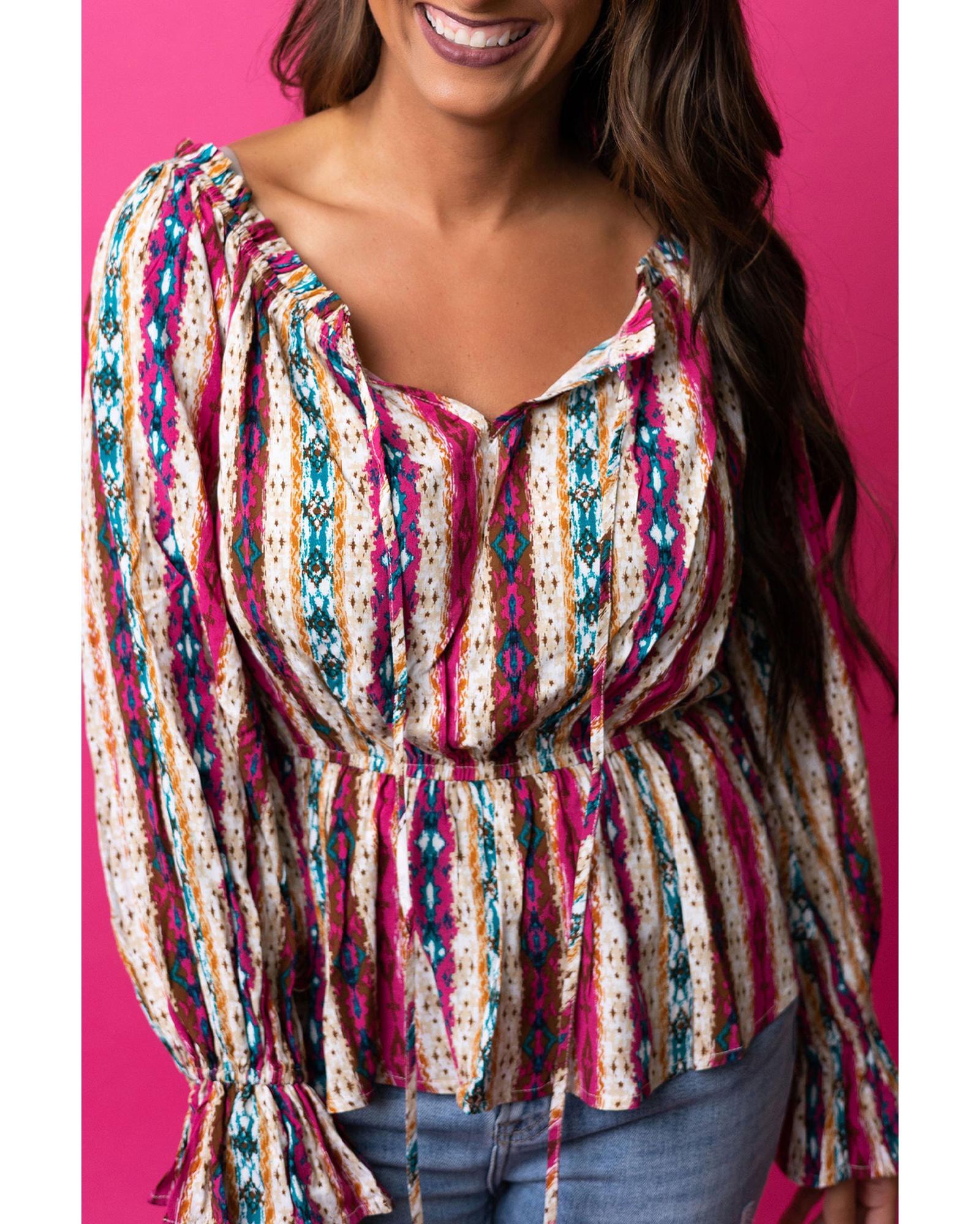 Multicolour Western Aztec Split Neck Peplum Blouse – XL