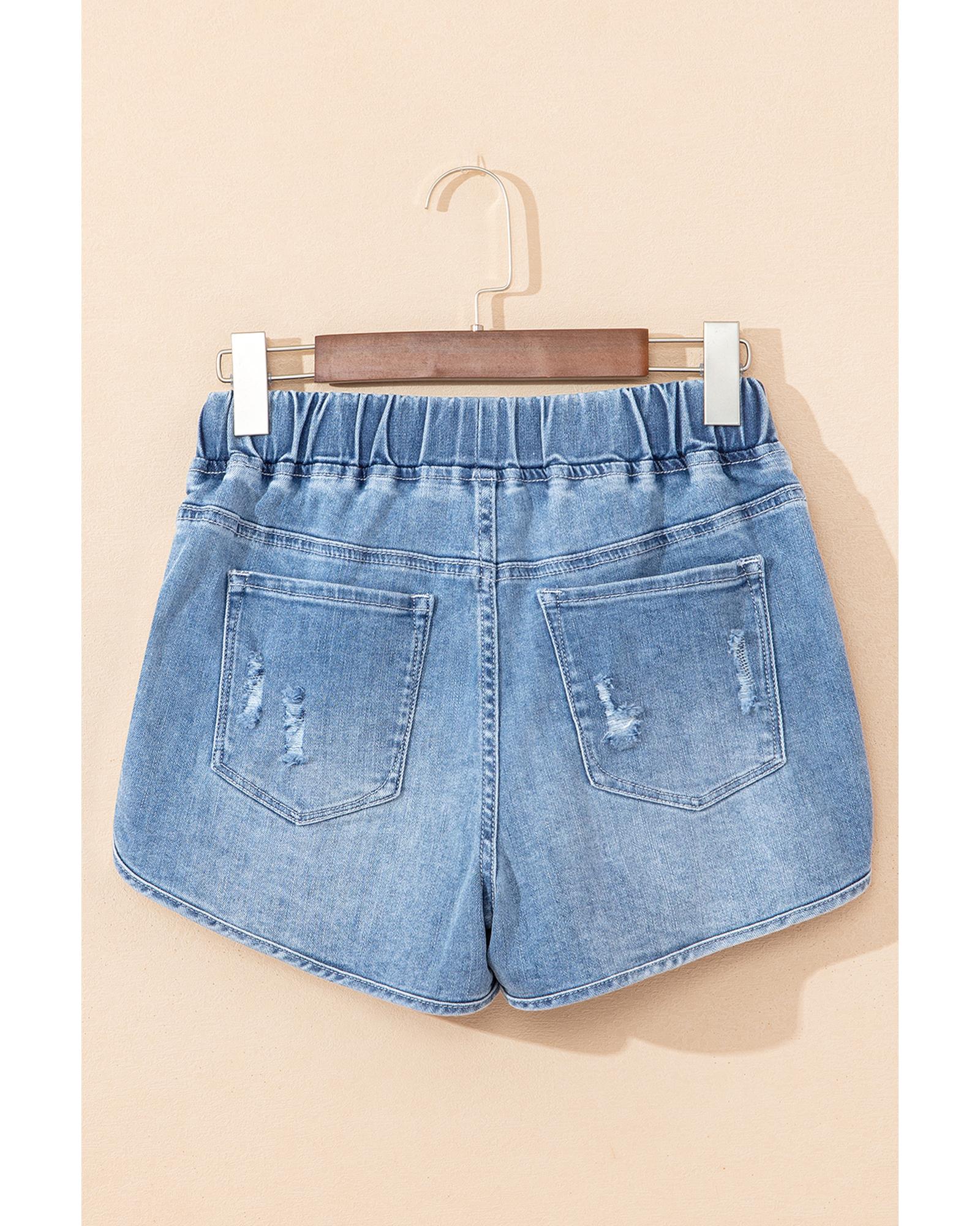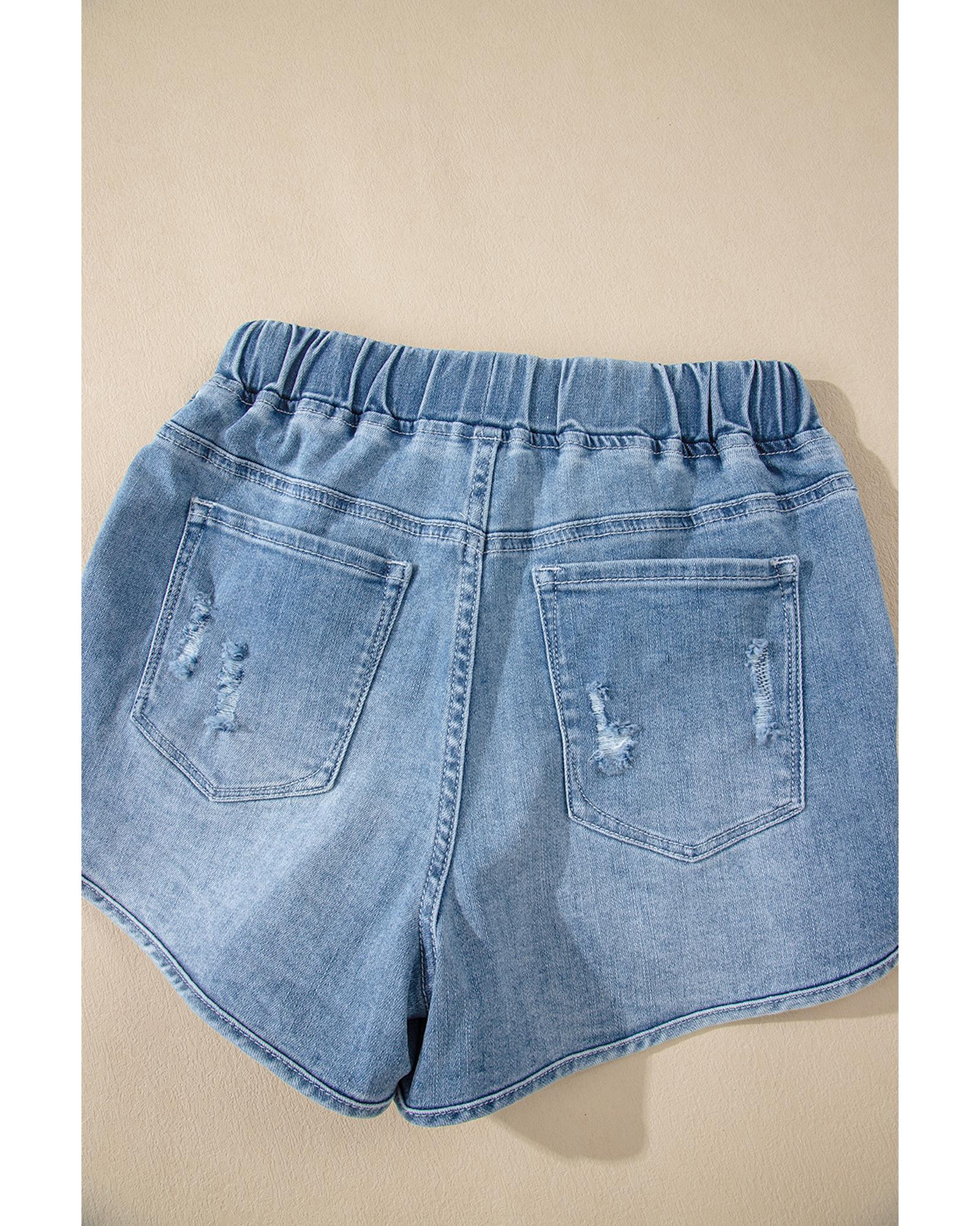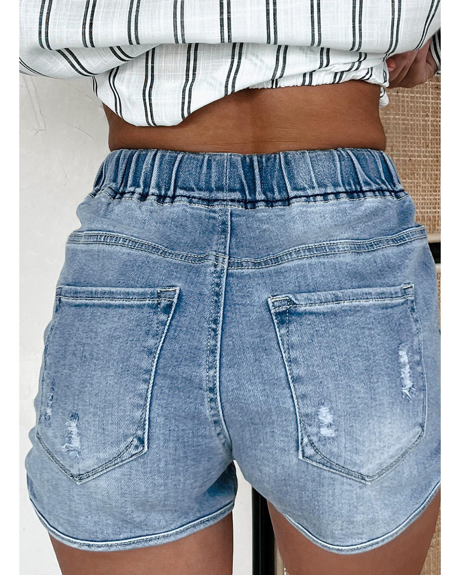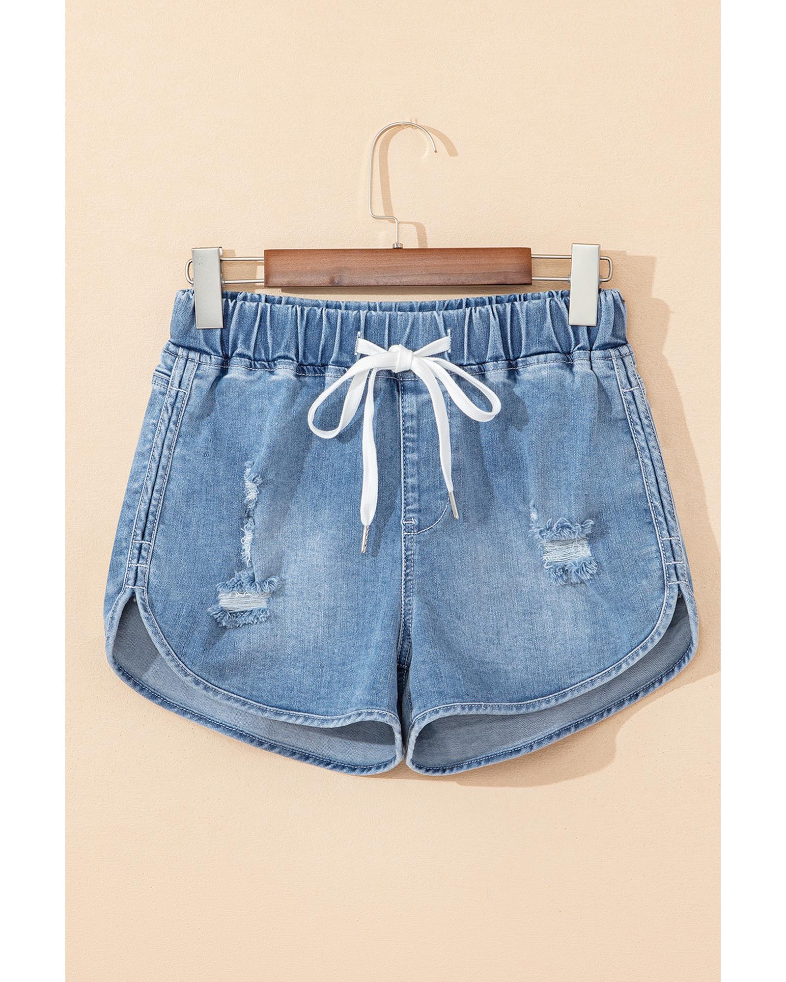 Myosotis Drawstring High Waist Distressed Denim Shorts - 12 US