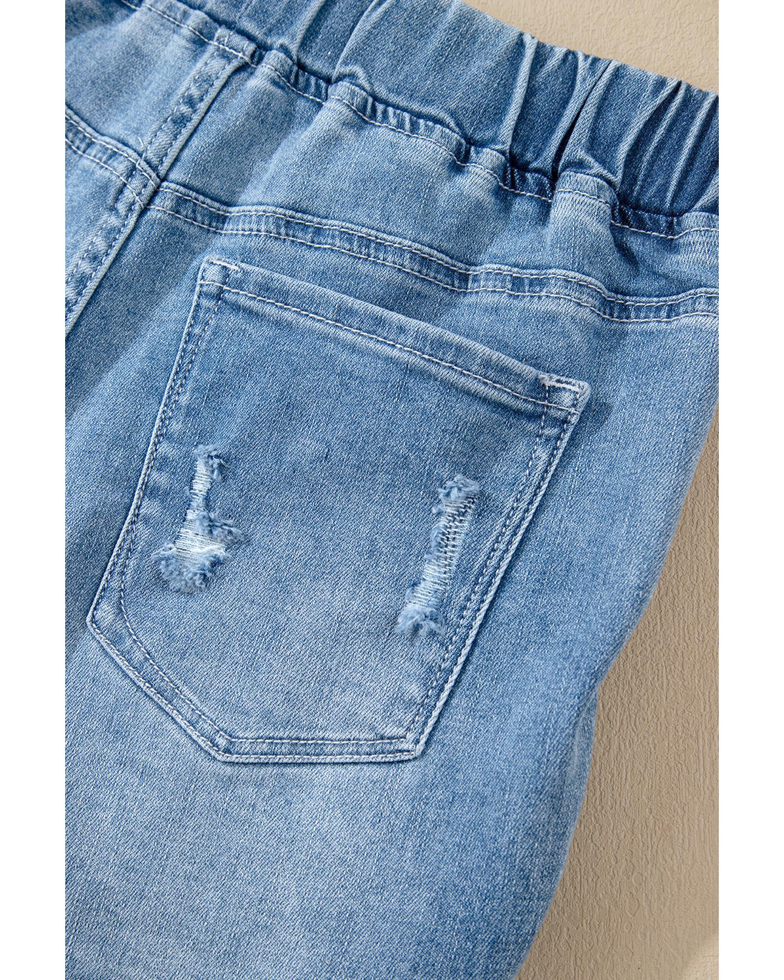- Distressed detailing adds a fashion