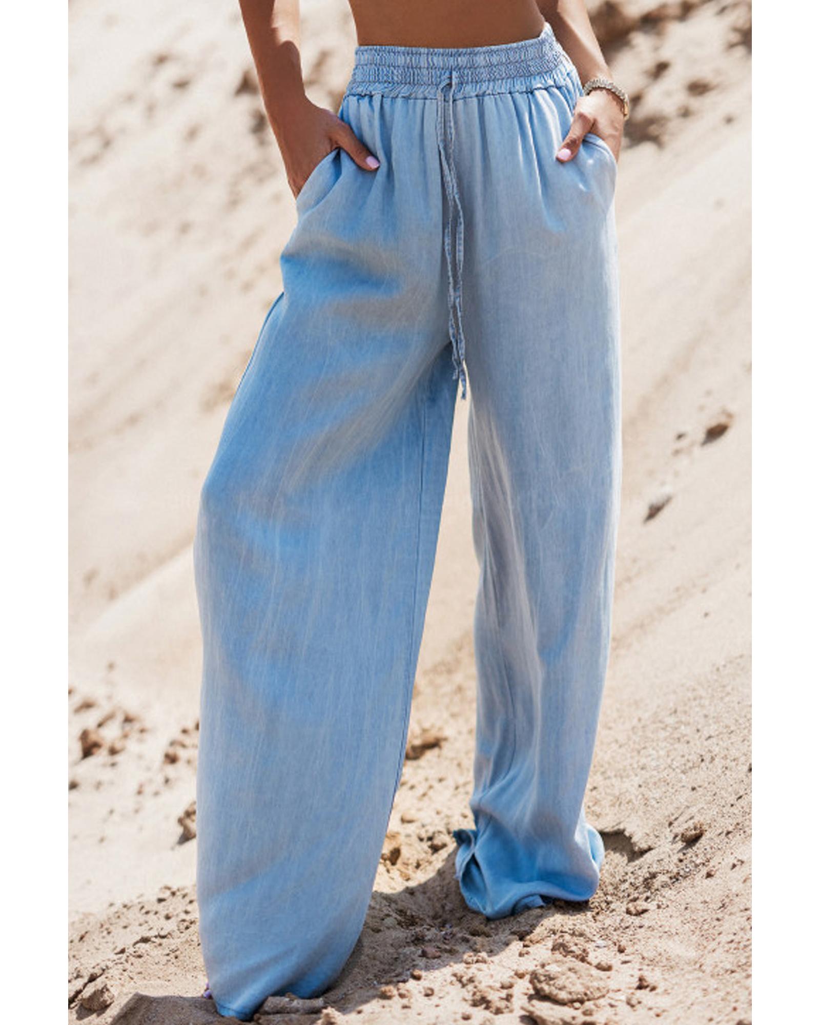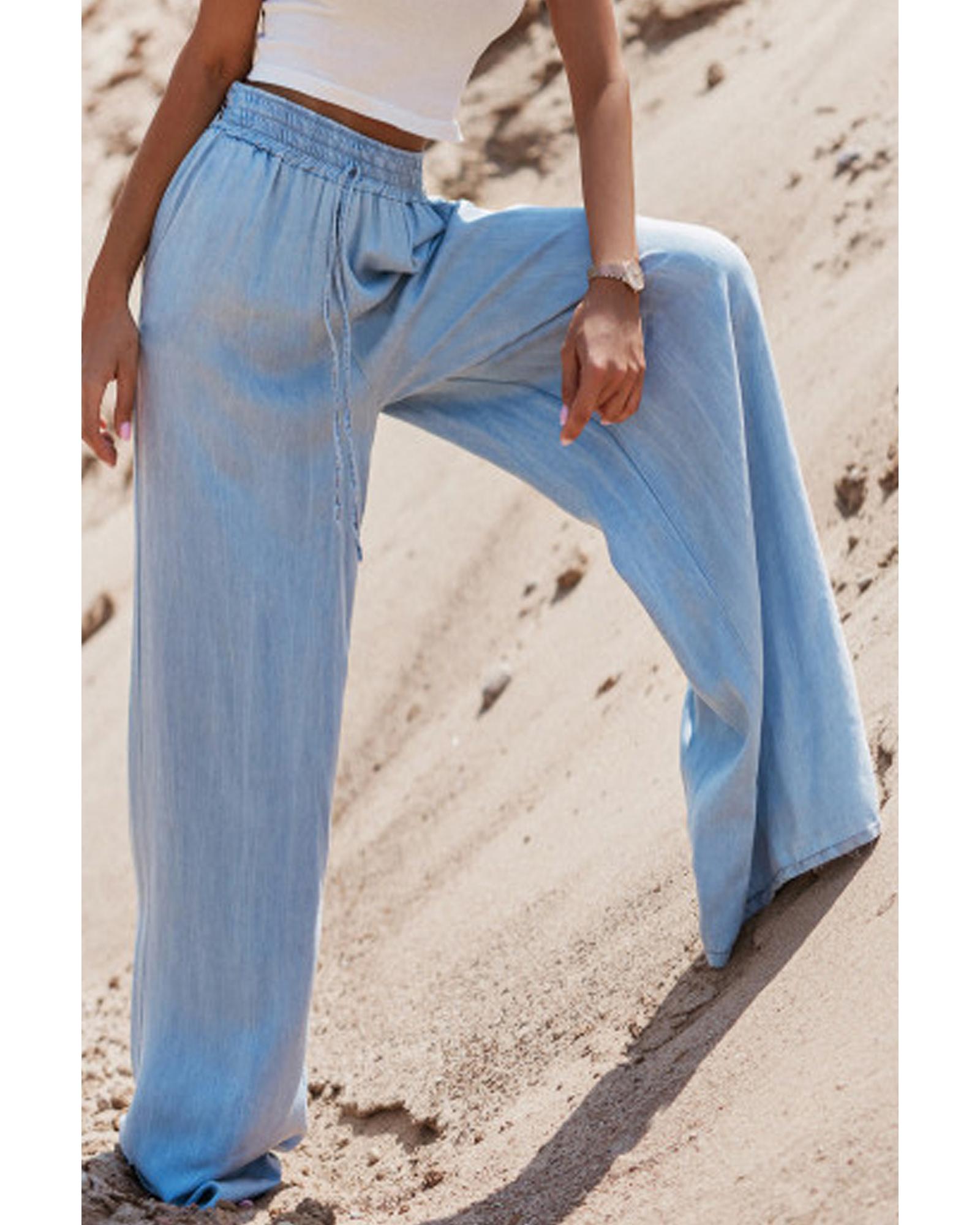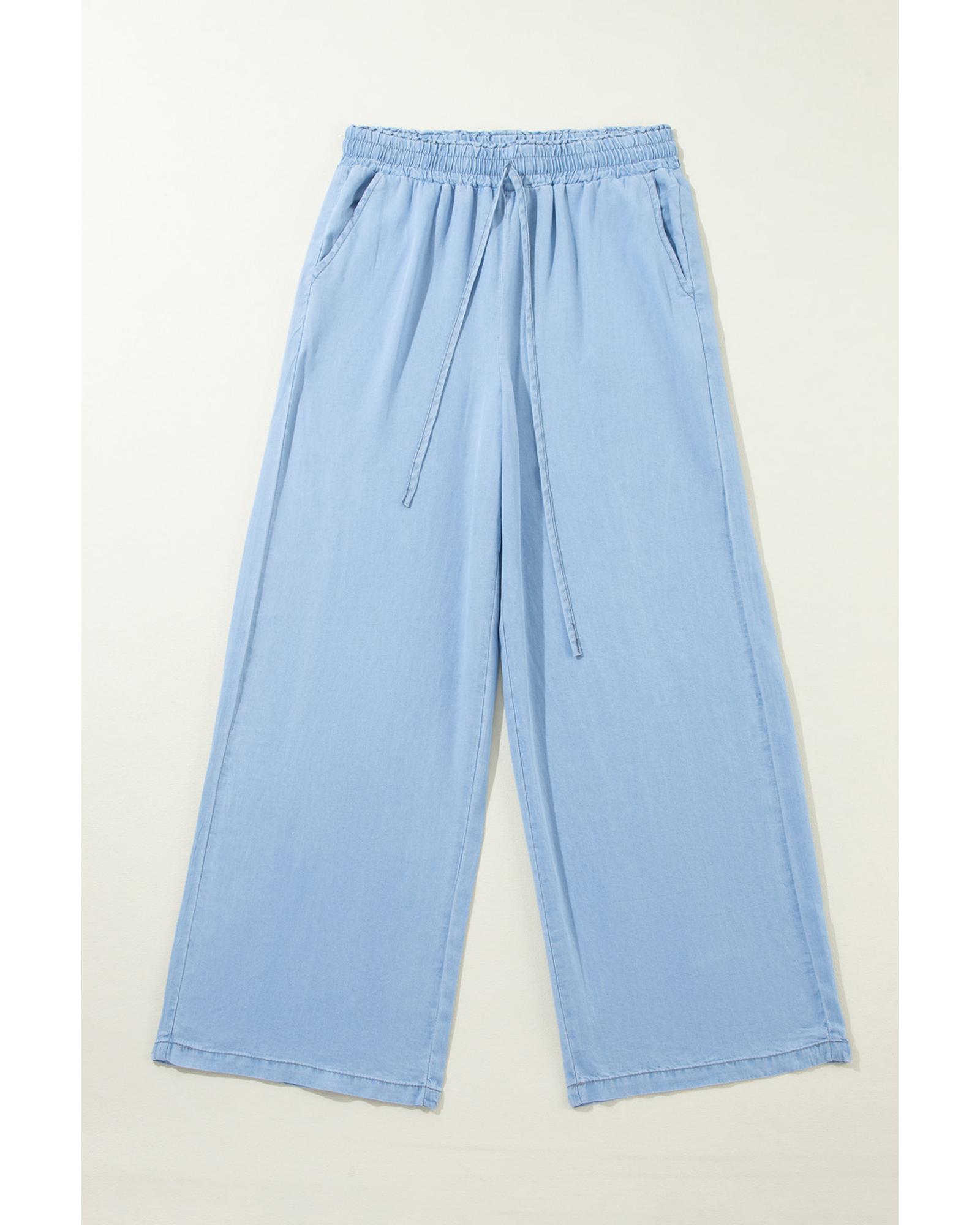 Myosotis Drawstring High Waist Wide Leg Denim Pants – XL