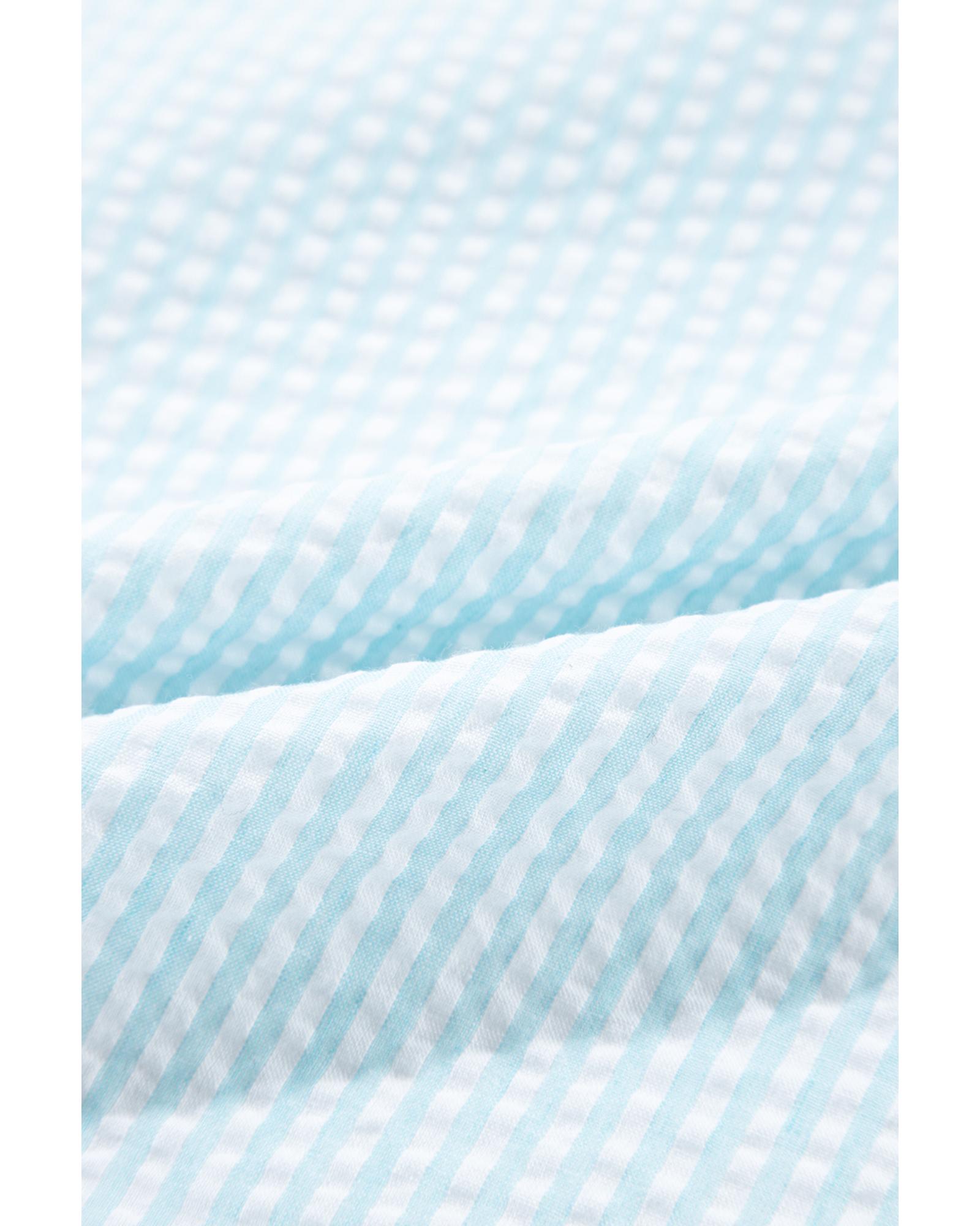 Myosotis Seersucker Ruffled Puff Sleeve Stand Neck Mini Dress – L