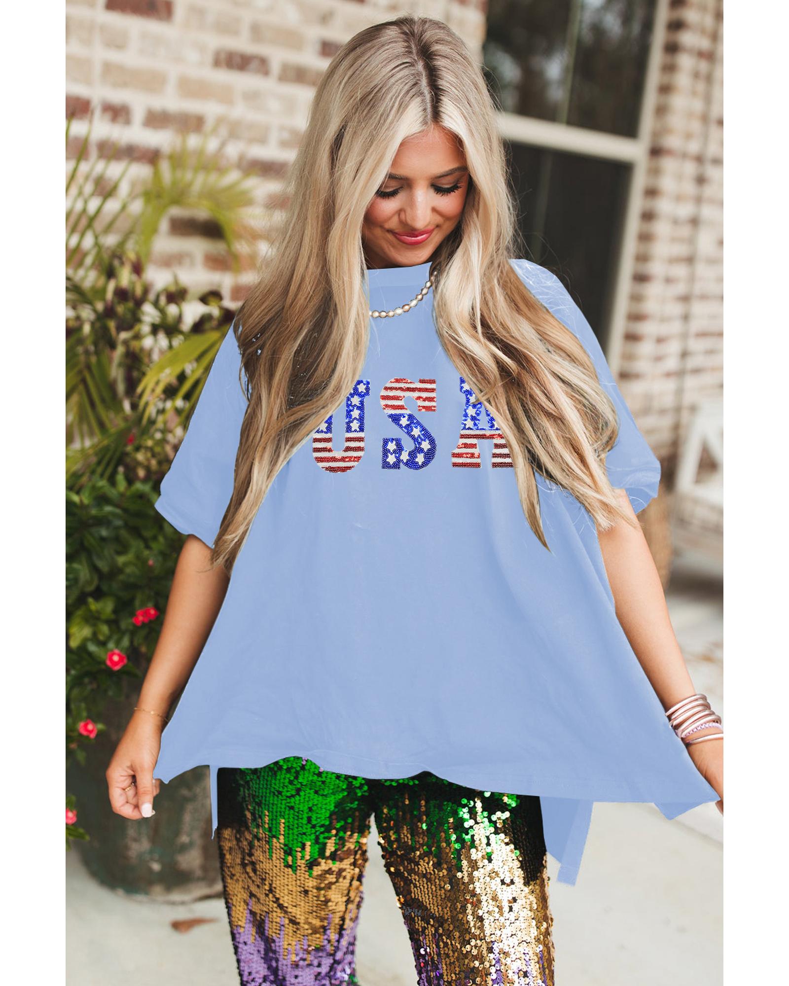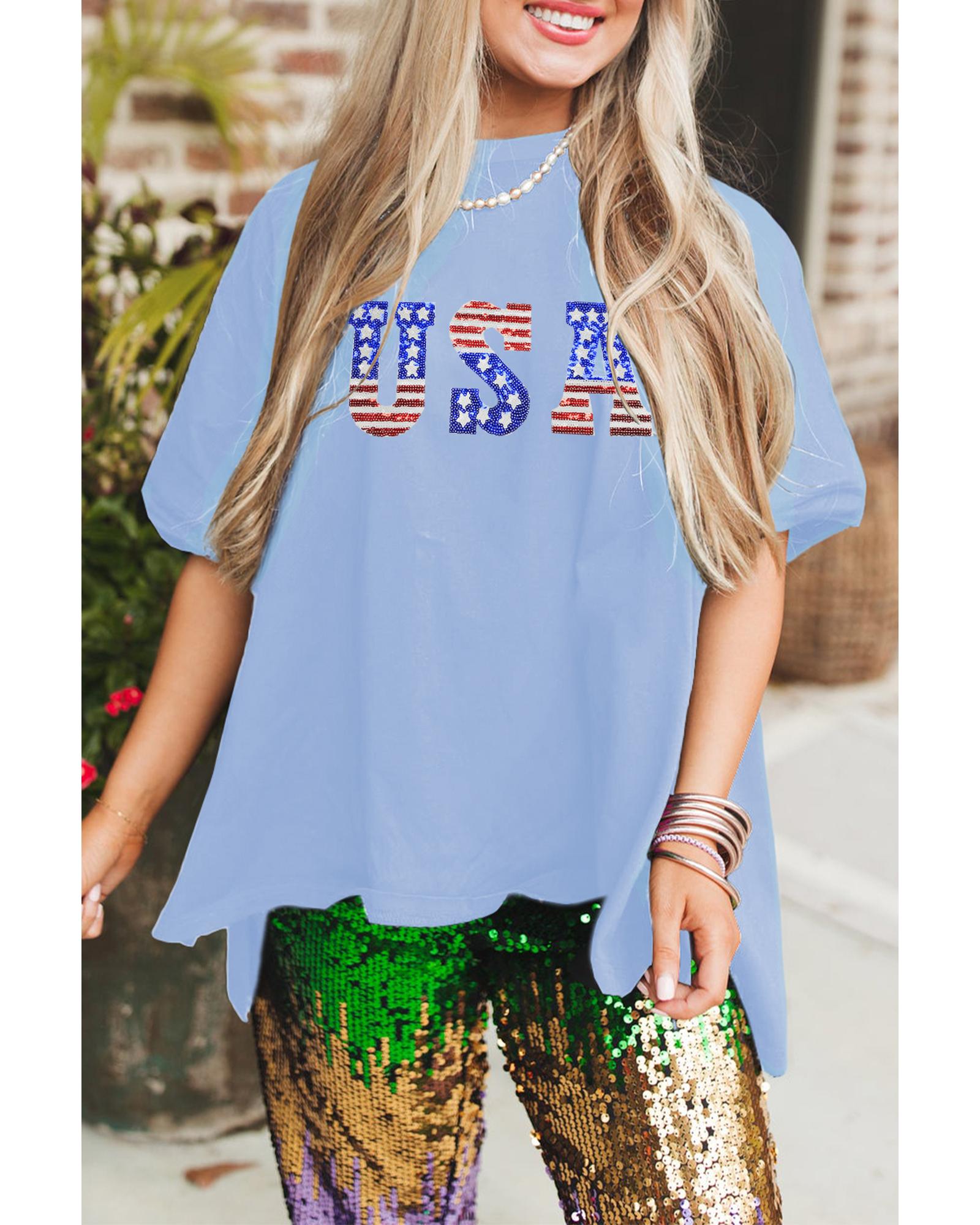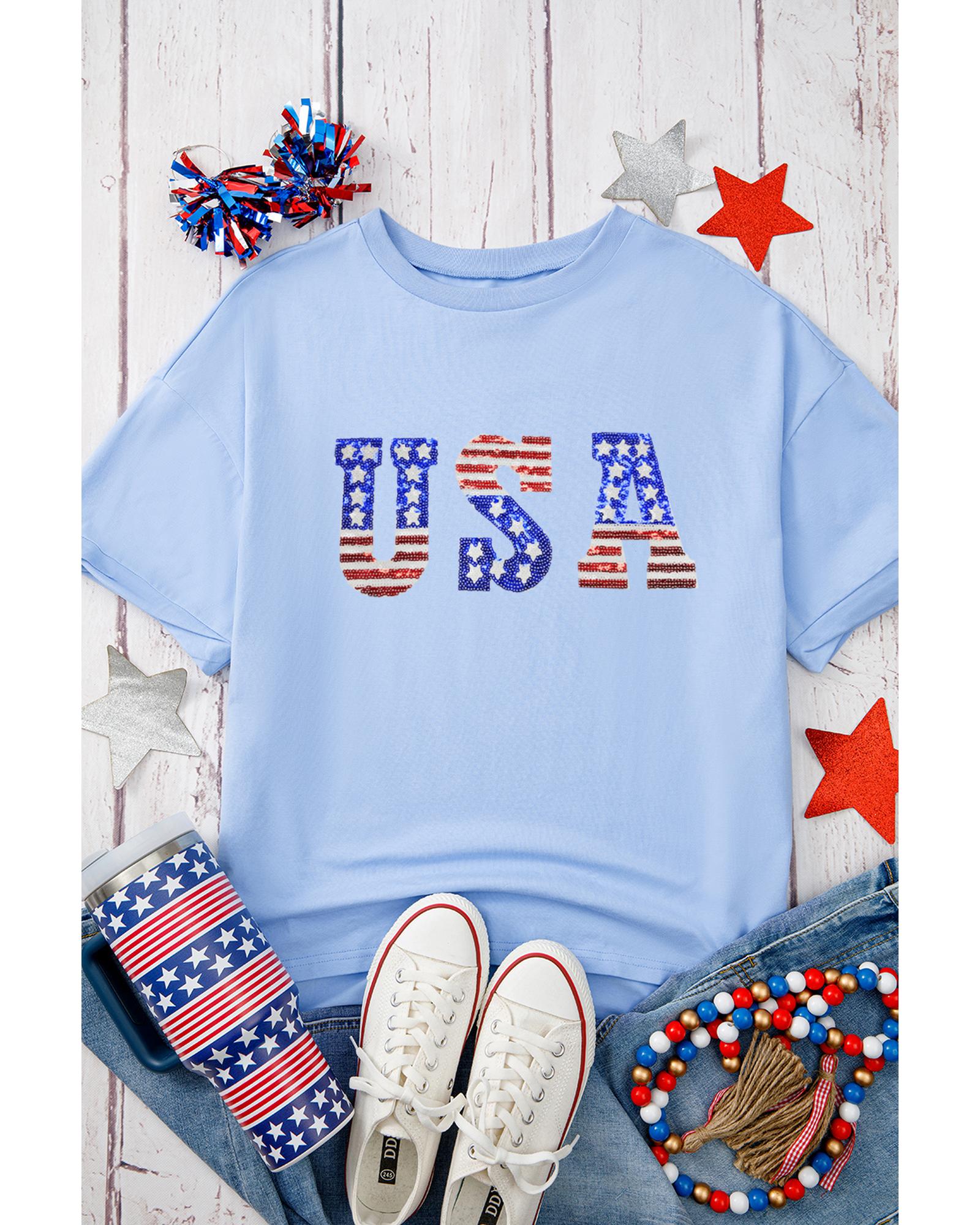 Myosotis USA Patched Drop Sleeve Crewneck T Shirt – M