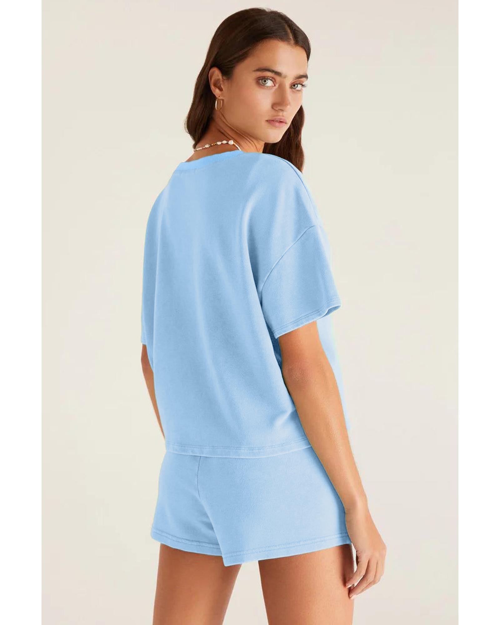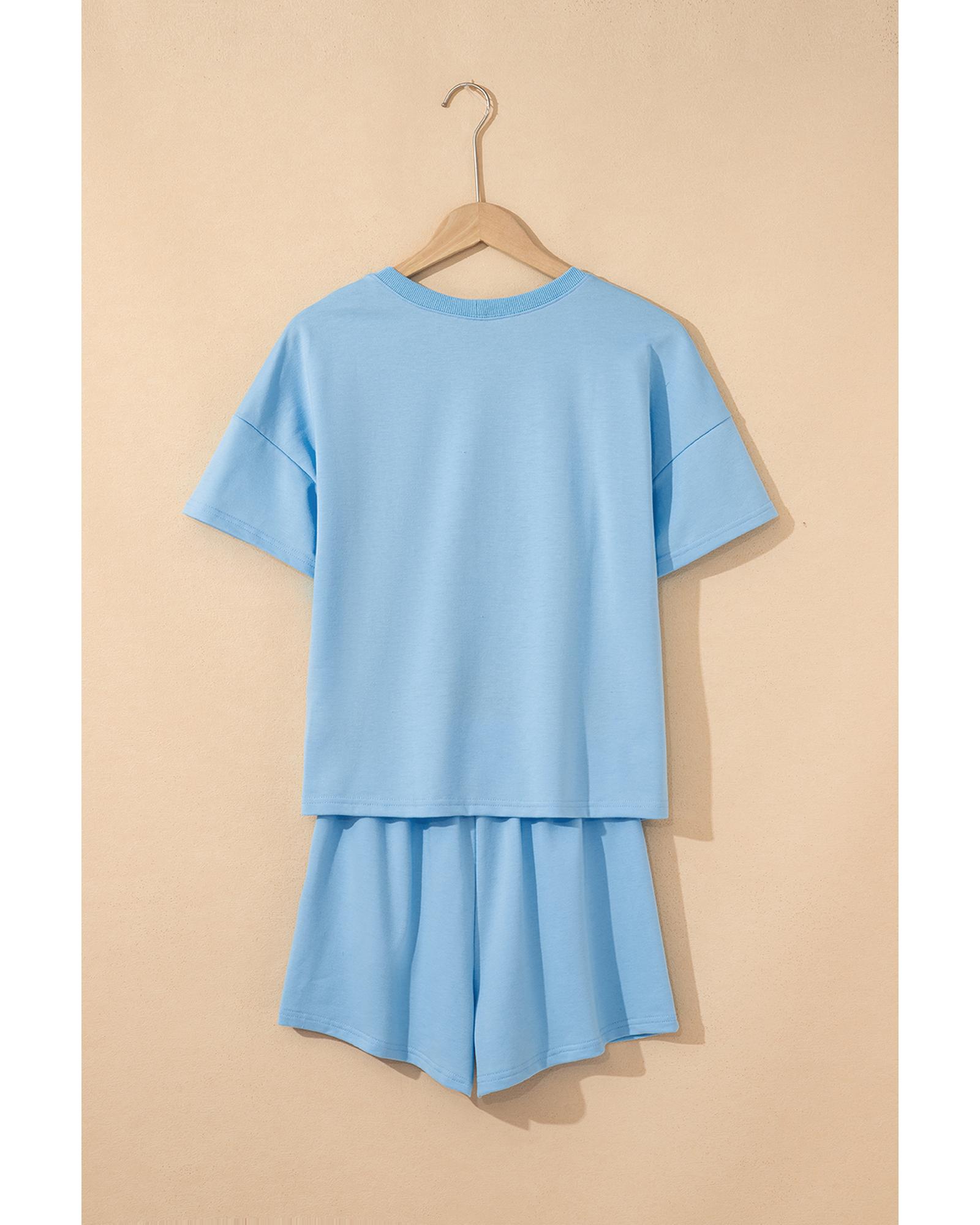 Myosotis V Neck Drop Shoulder Tee and Patchwork Drawstring Shorts Set – S
