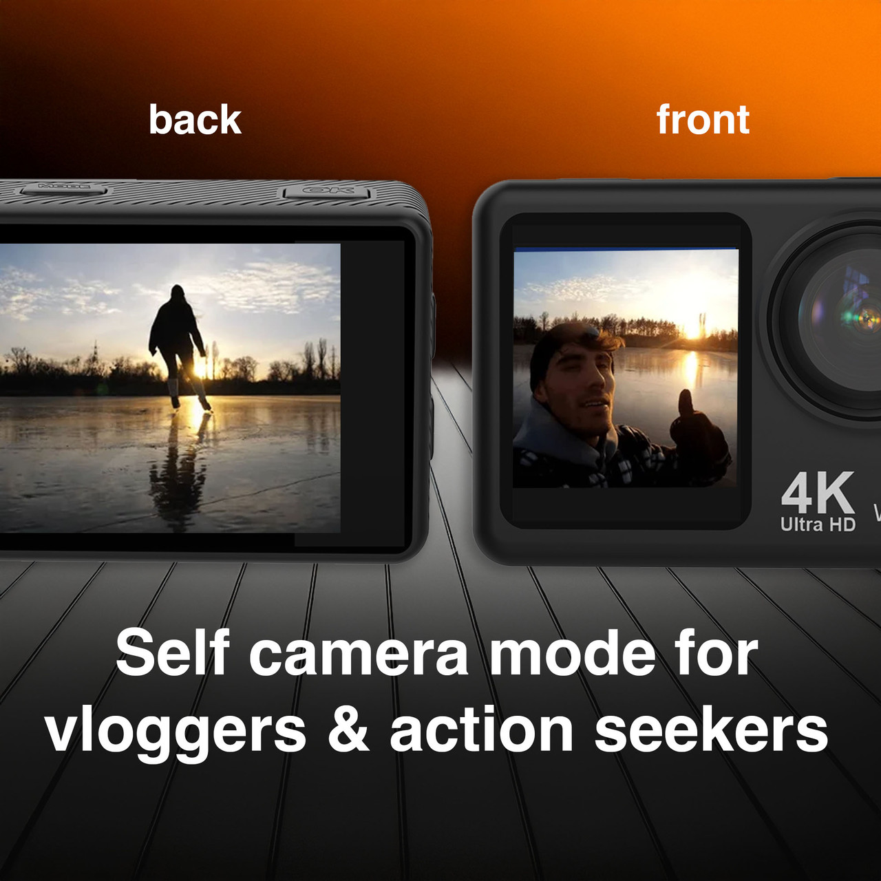 Dual Screens. Double the Creativity: Perfectly frame every shot with a 2-inch LCD touchscreen on the back and a front-facing display for vlogs, selfies, and action shots. Whether youre capturing an epic landscape or your own adventure, youre always in control.