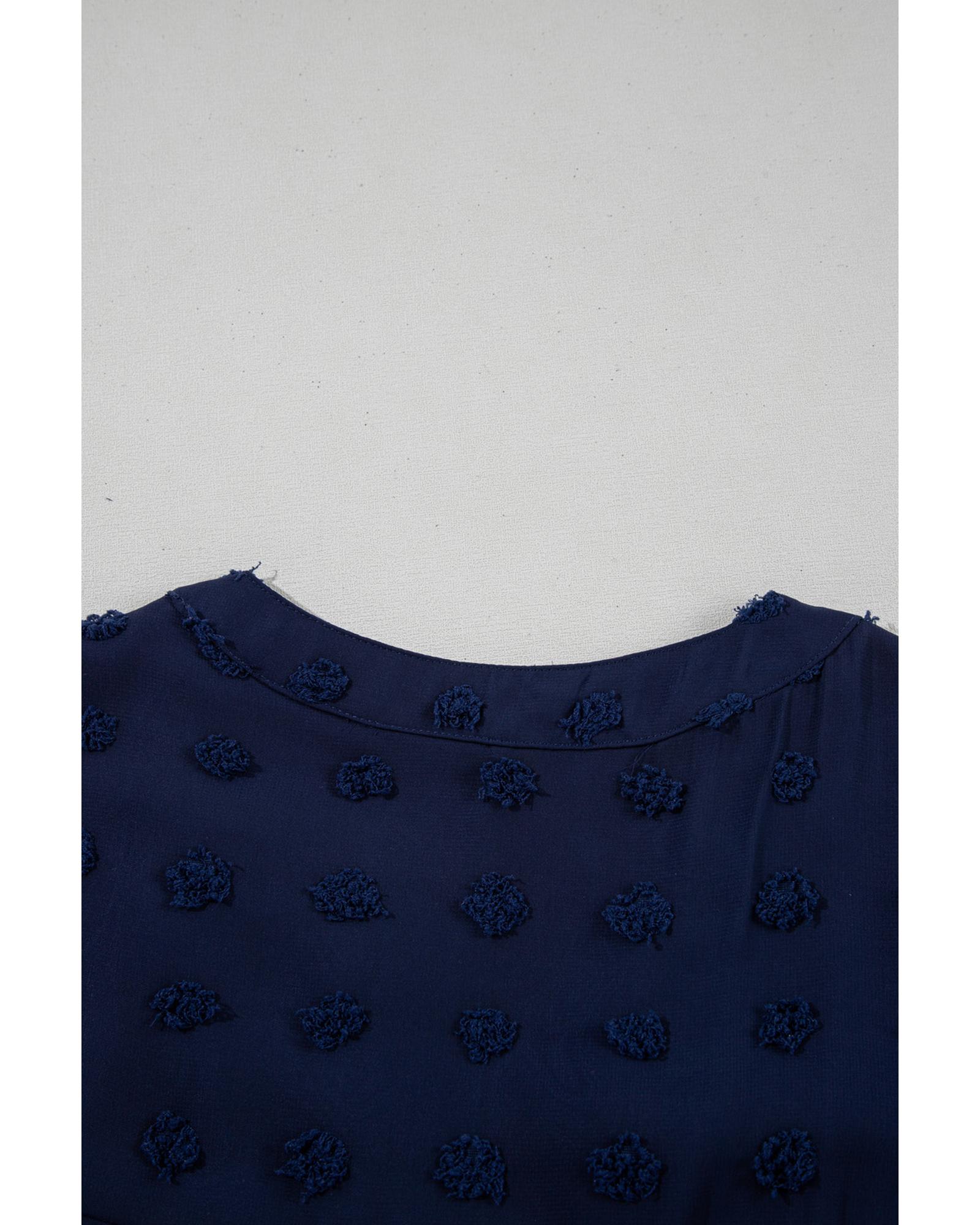 Navy Blue Dotty Textured Notched Neck Plus Ruffled Dress – 2X