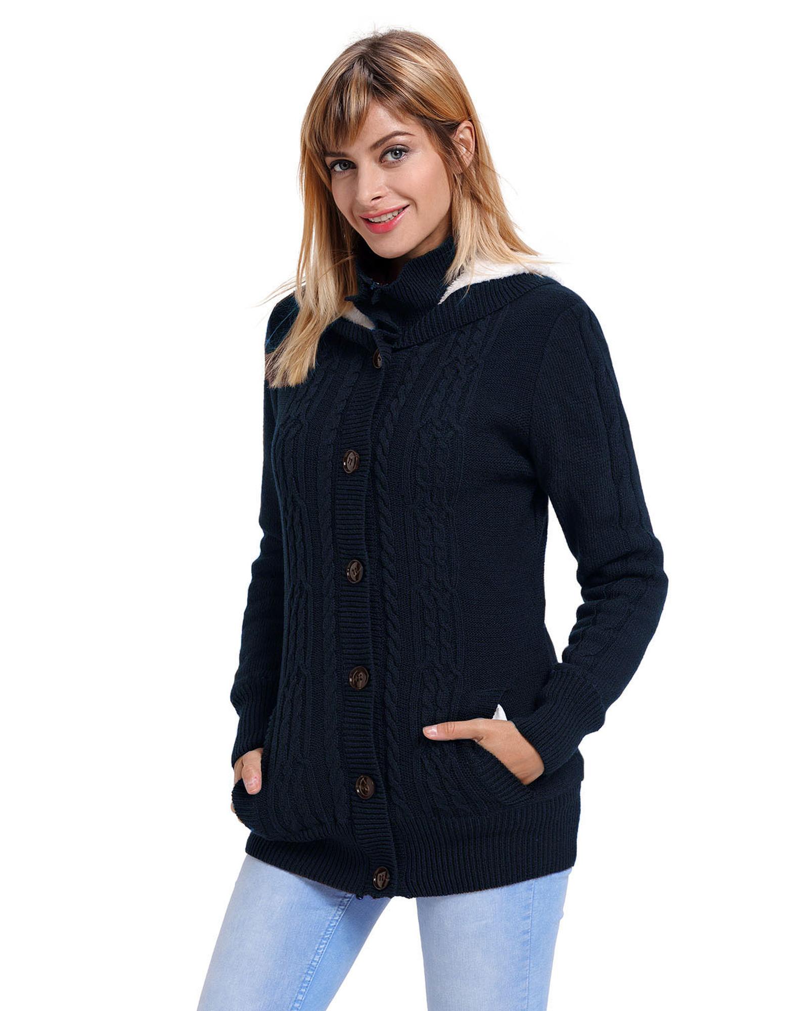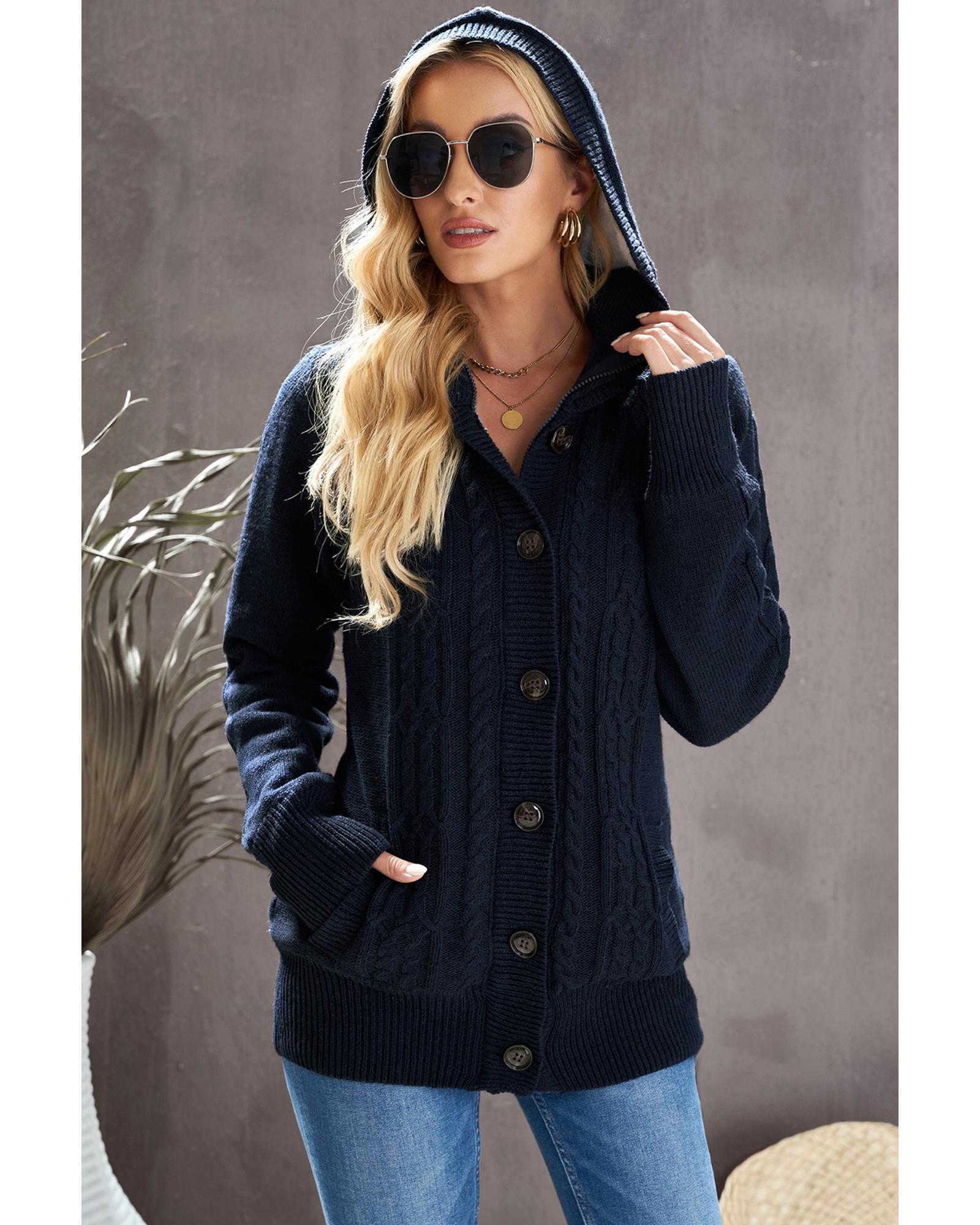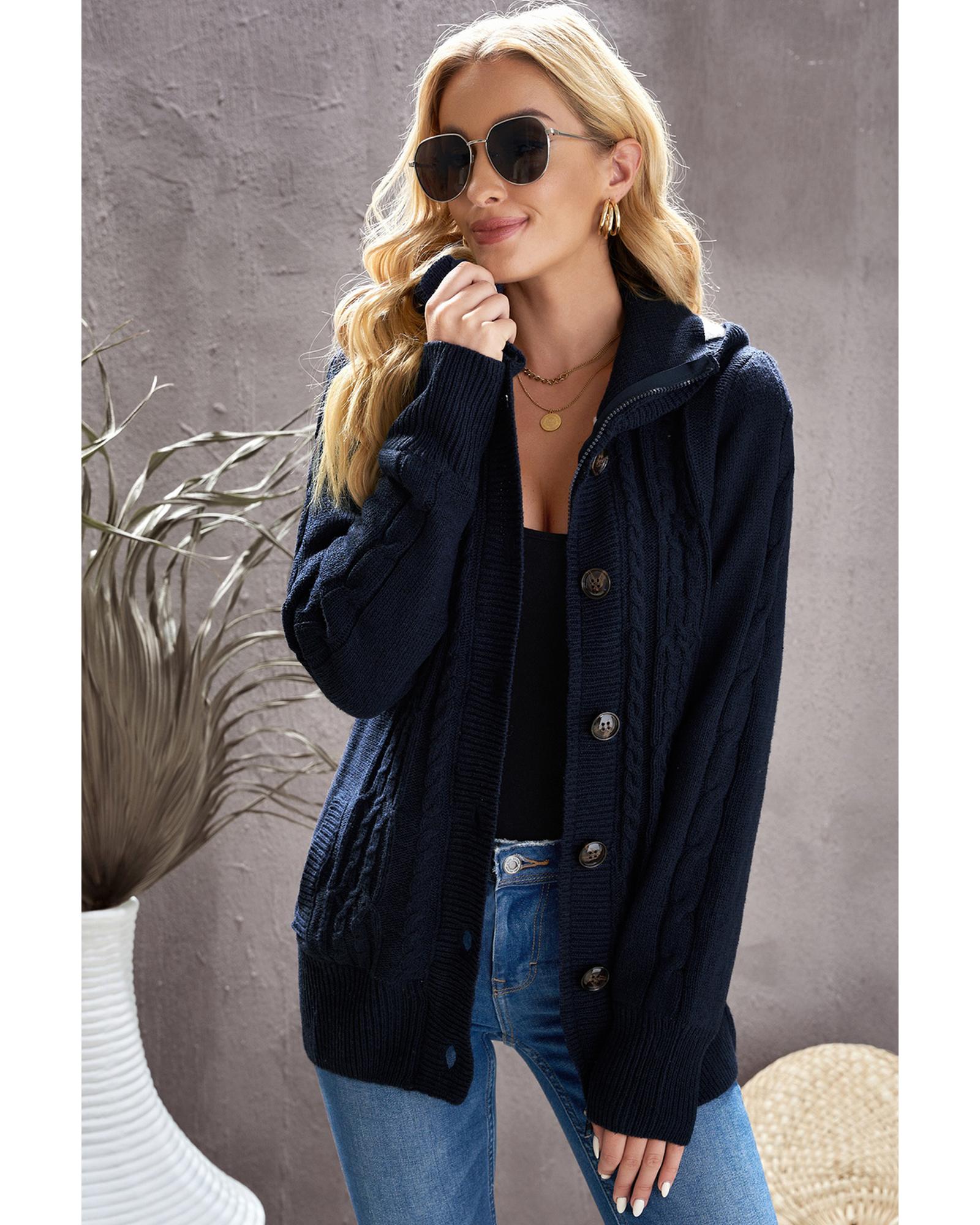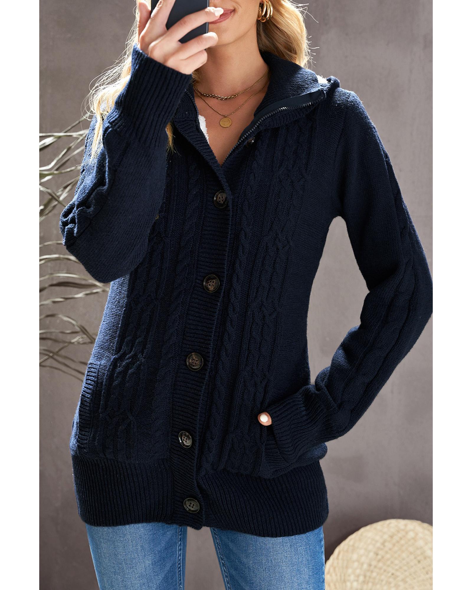 Navy Blue Long Sleeve Button-up Hooded Cardigans – 2XL