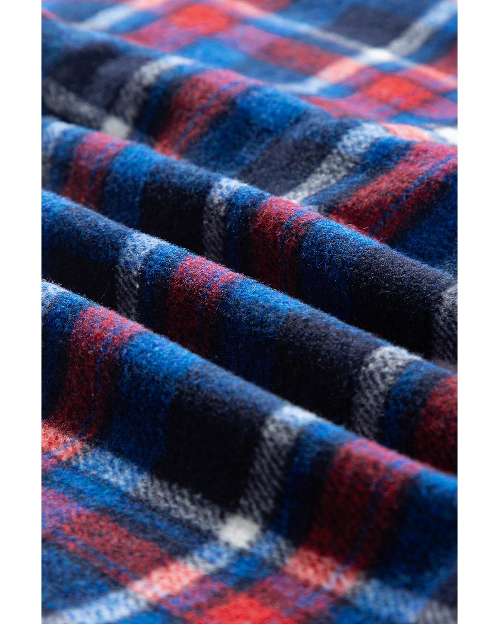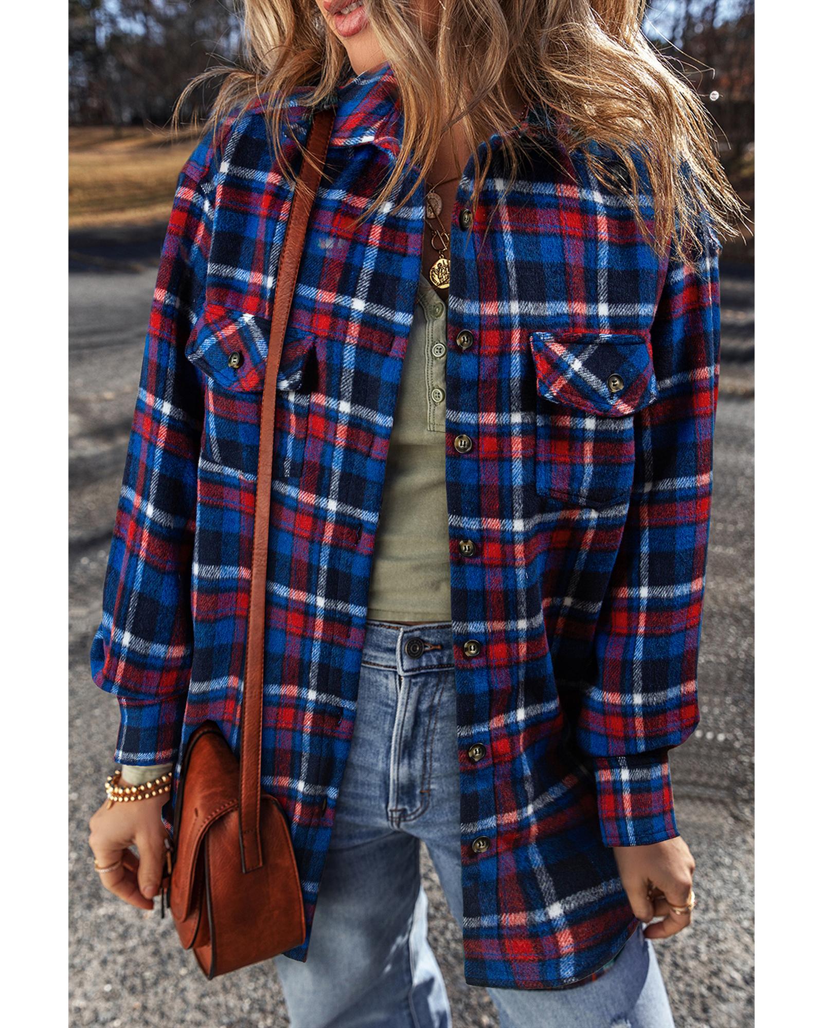 Navy Blue Plaid Flap Pocket Button Up Shacket – XL