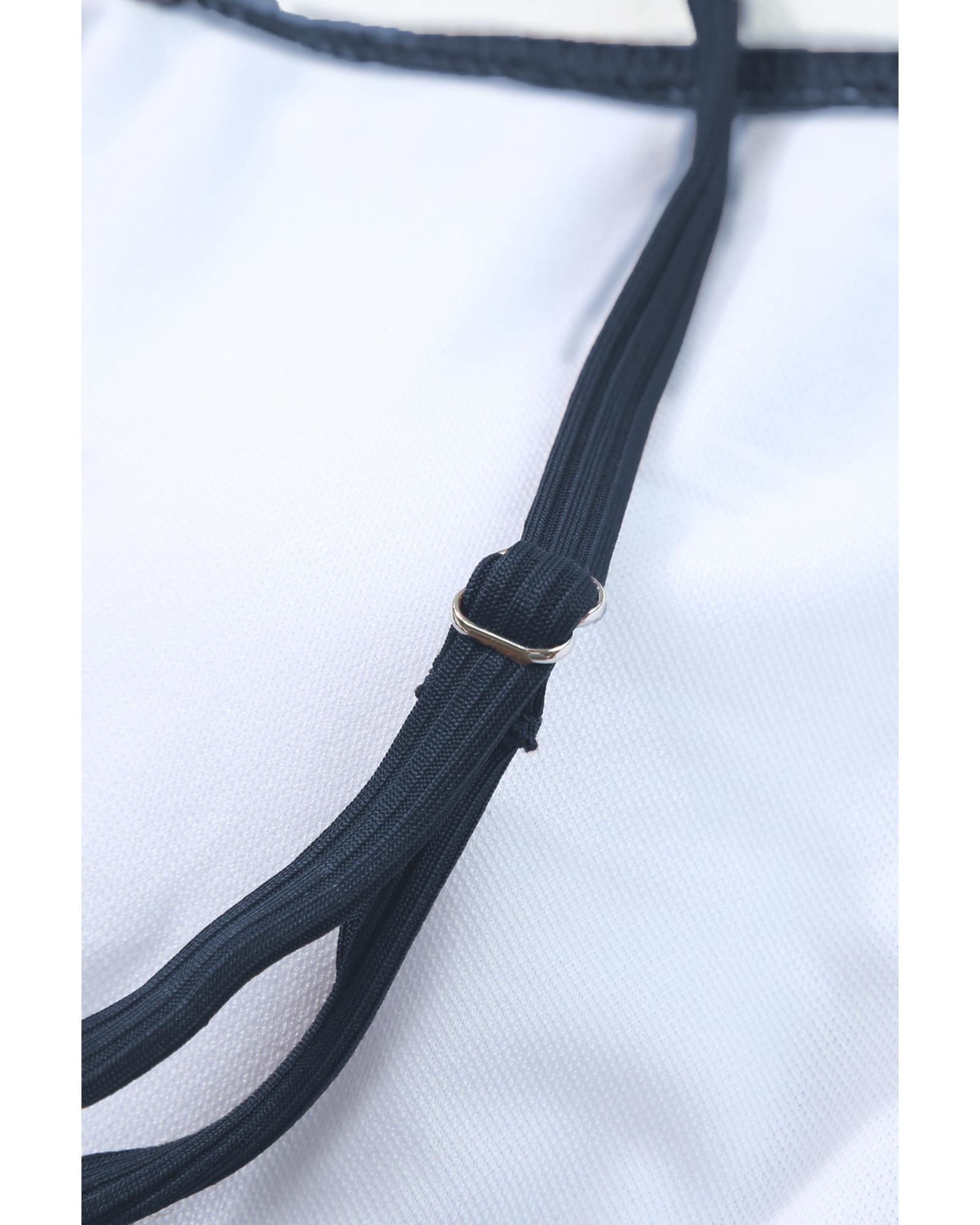 Navy Blue Ribbed Drawstring Sides Cutout One Piece Swimsuit – L