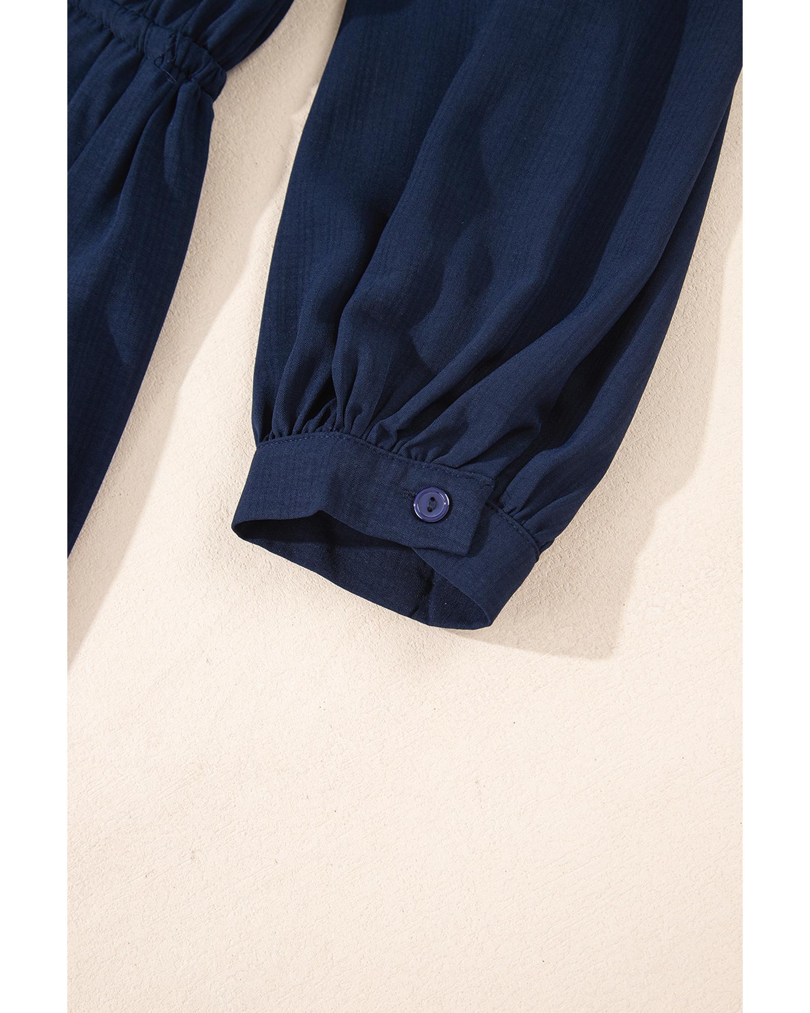 Black Shirt Style Button Down Puff Sleeve Ruffle Hem Dress - S