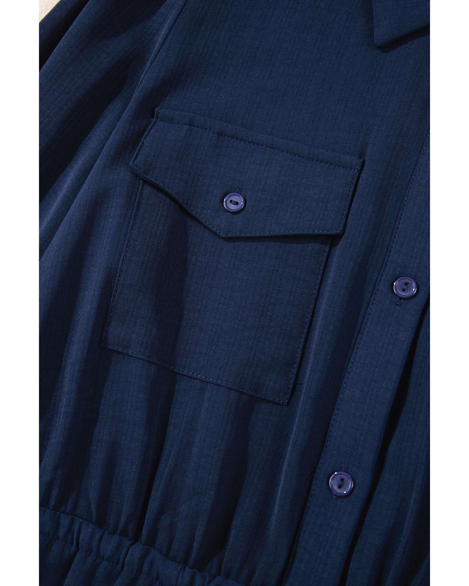 Navy Blue Solid Chest Pockets Tunic Shirt Mini Dress - L