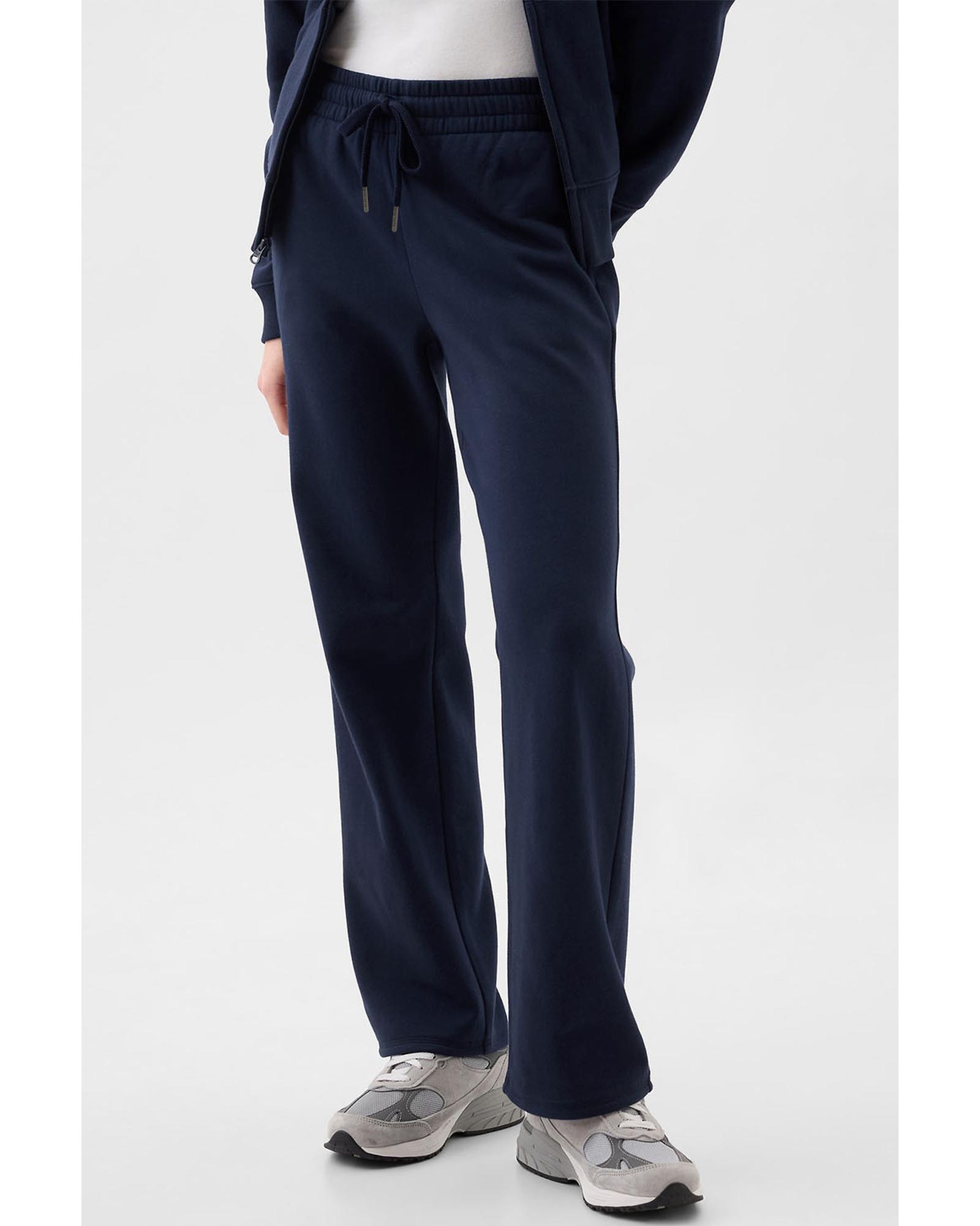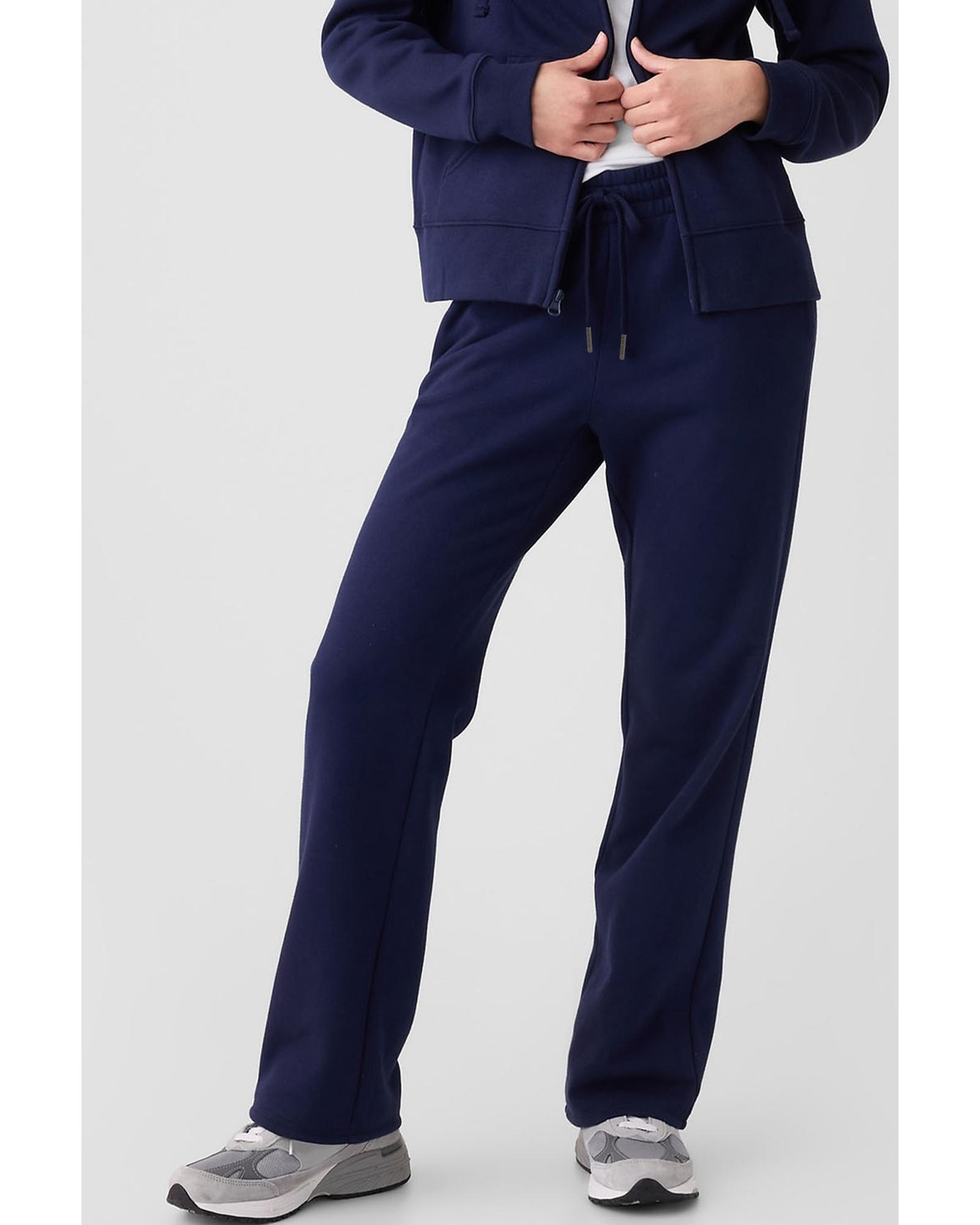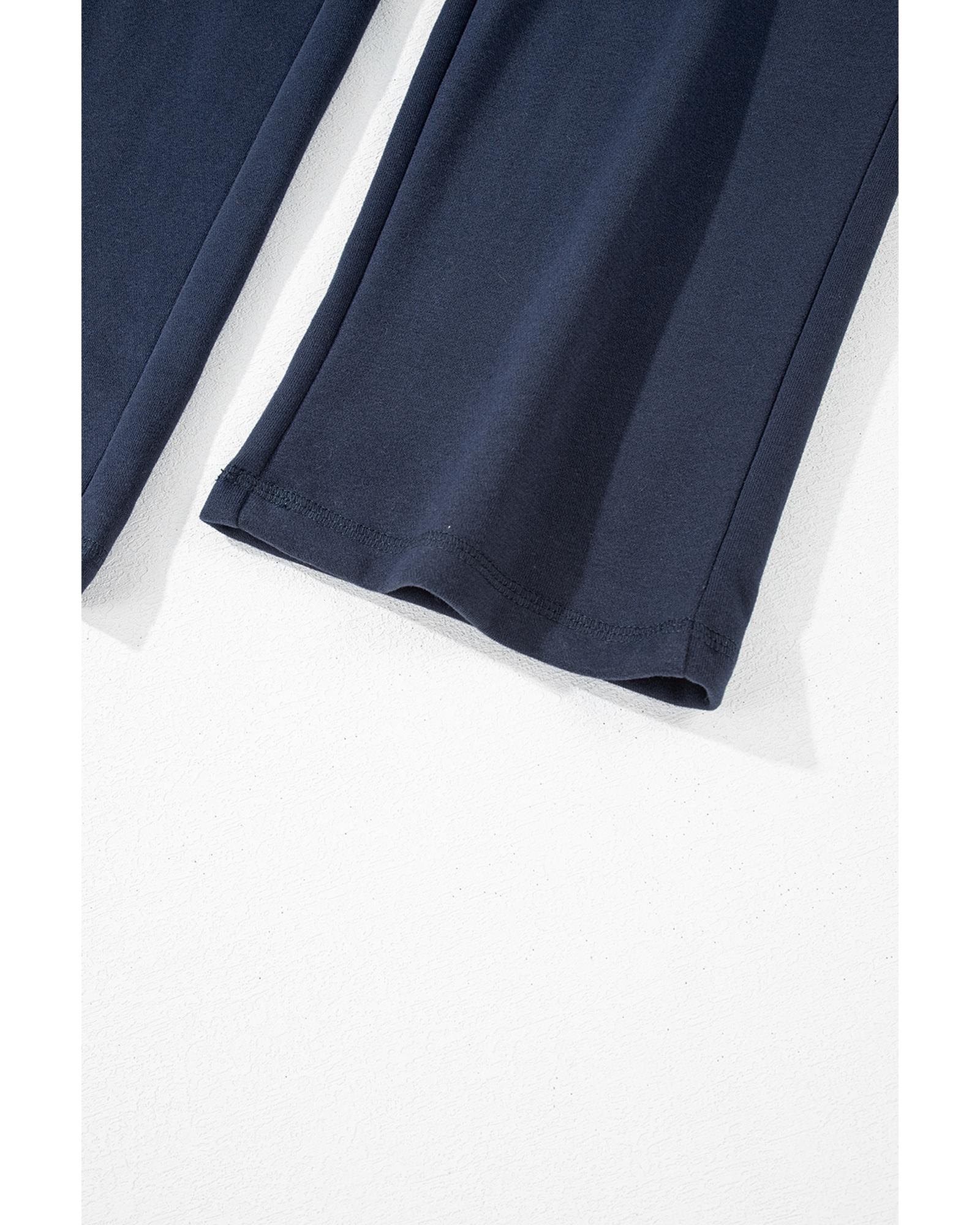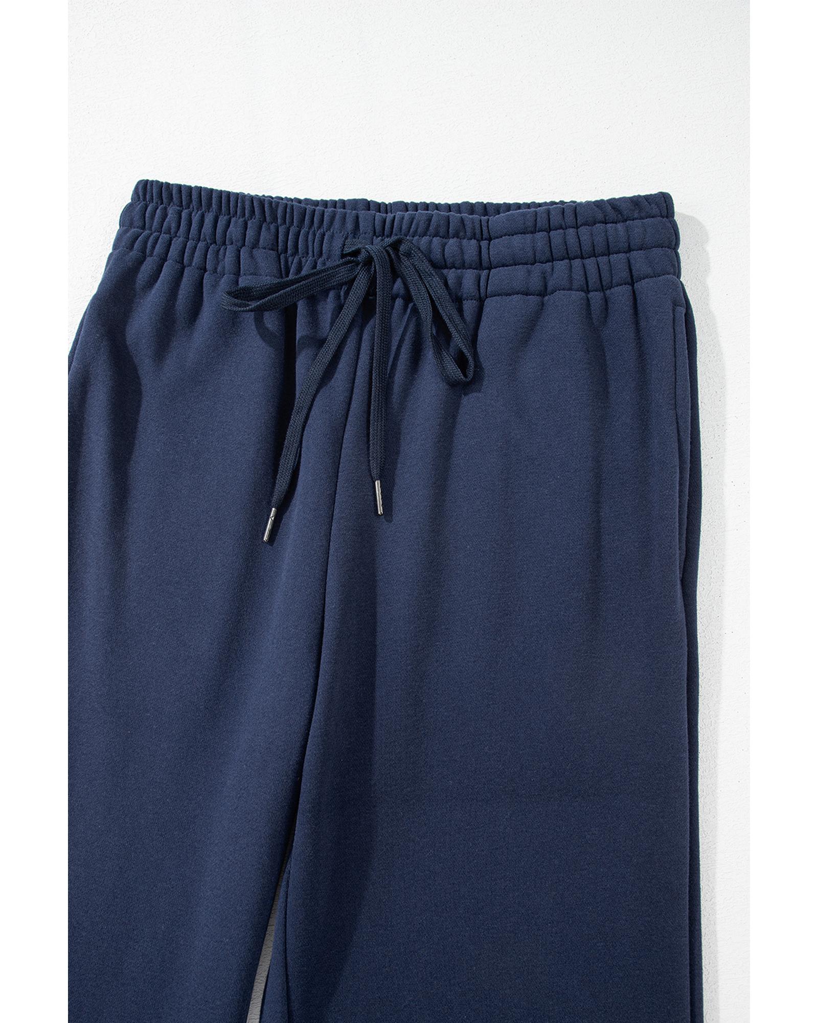 Navy Blue Solid Color Fleece Lined Drawstring Waist Casual Pants – L