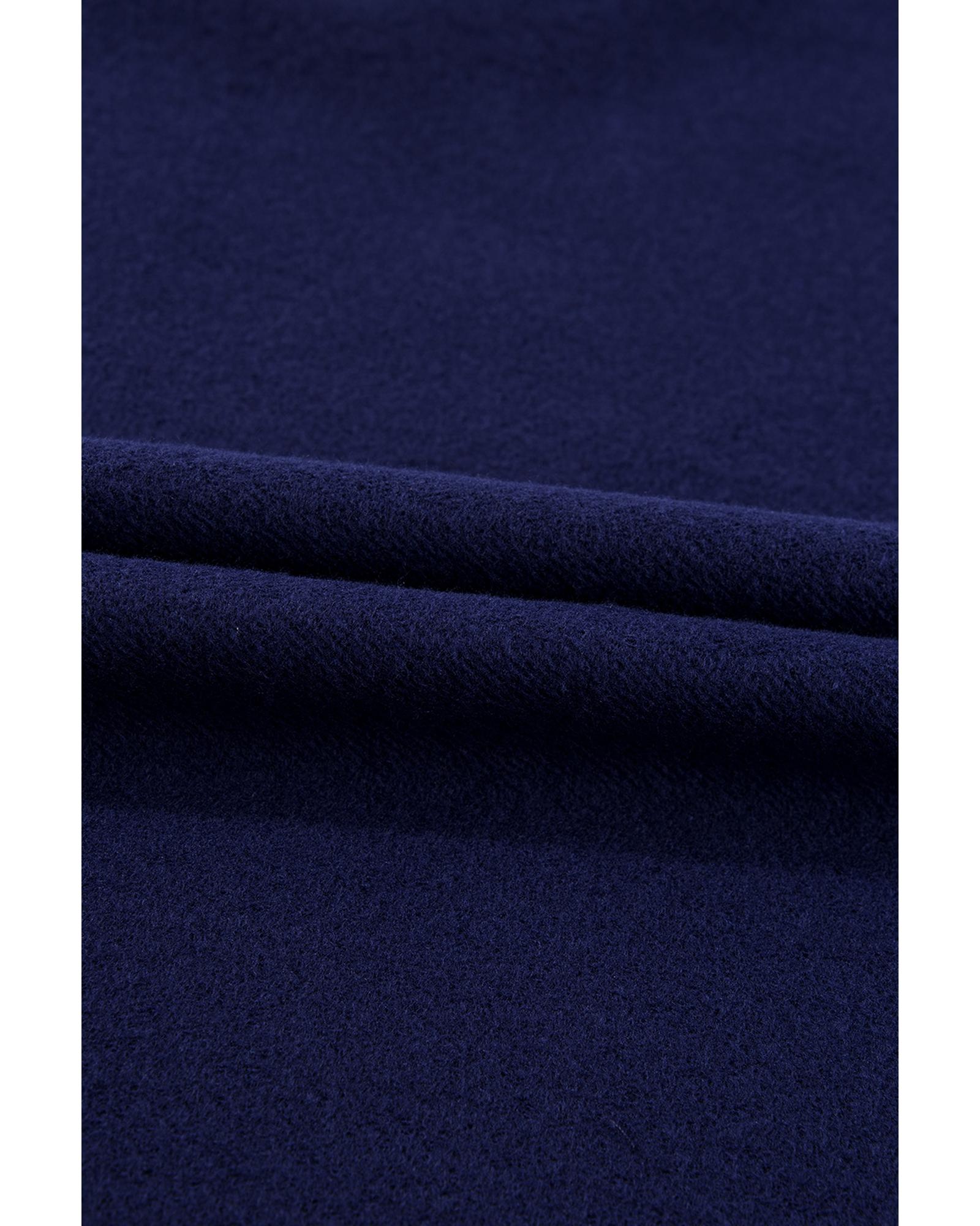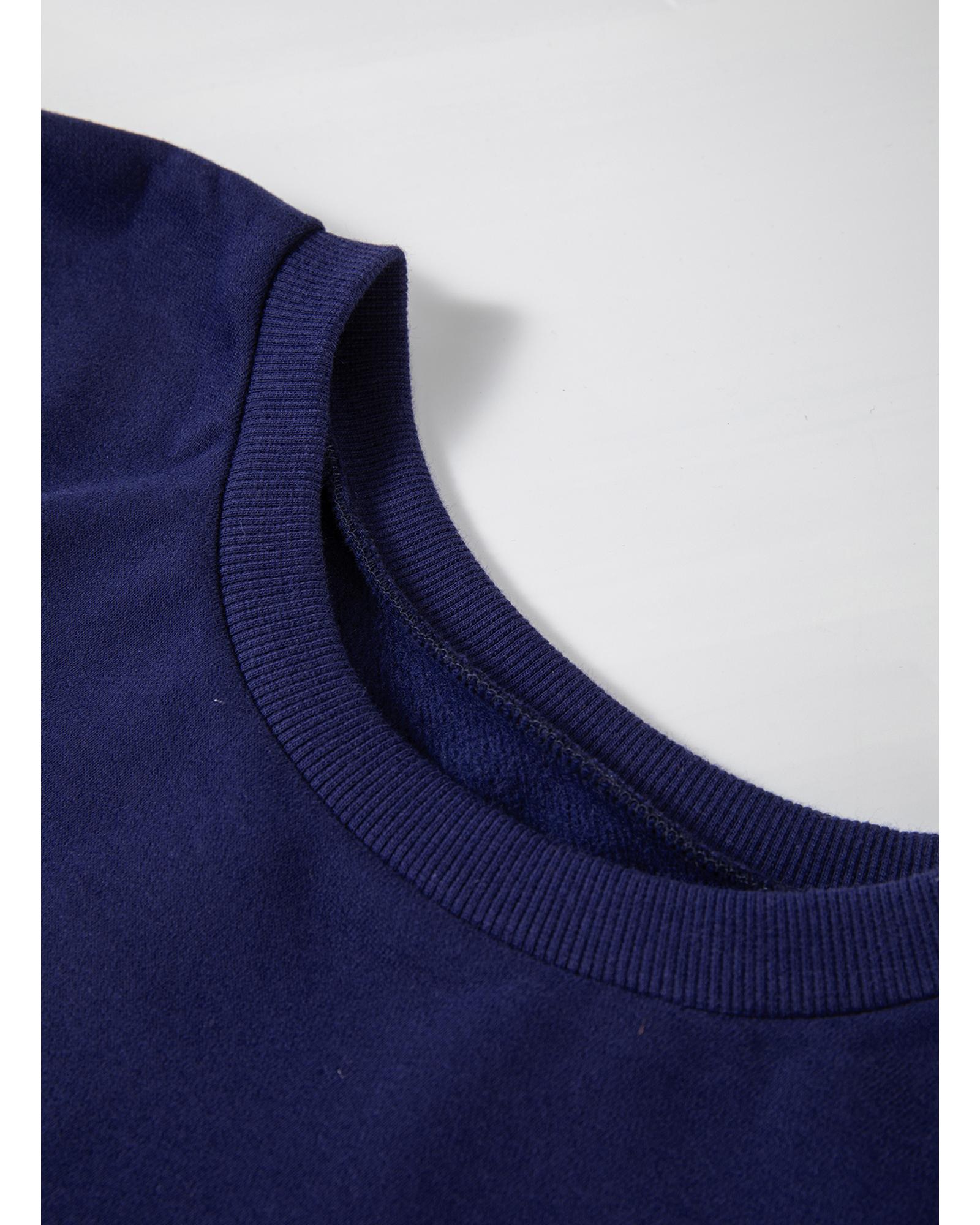 Navy Blue Solid Fleece Lined Drop Shoulder High Low Sweatshirt – XL