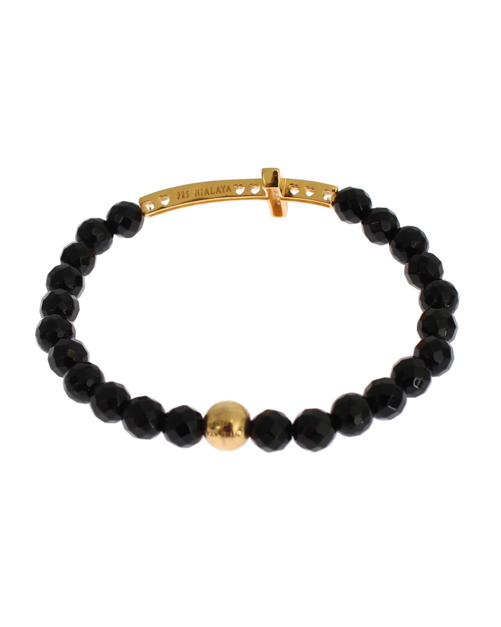 NIALAYA Gold Plated Sterling Silver Bracelet with Agate Stone and CZ Diamond Cross M Women