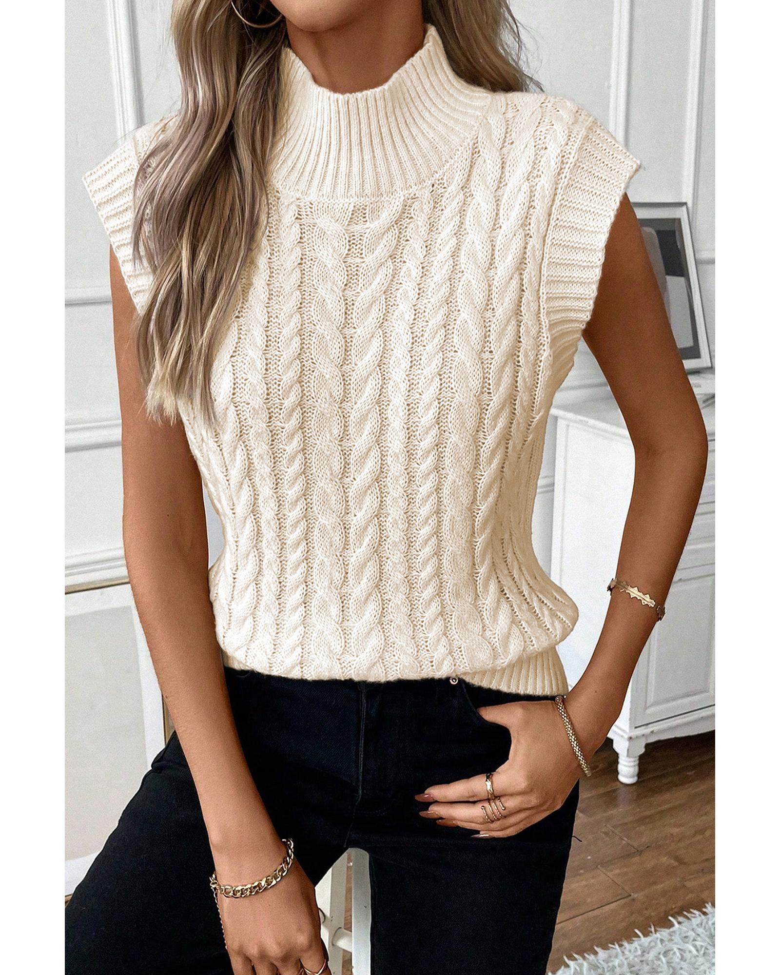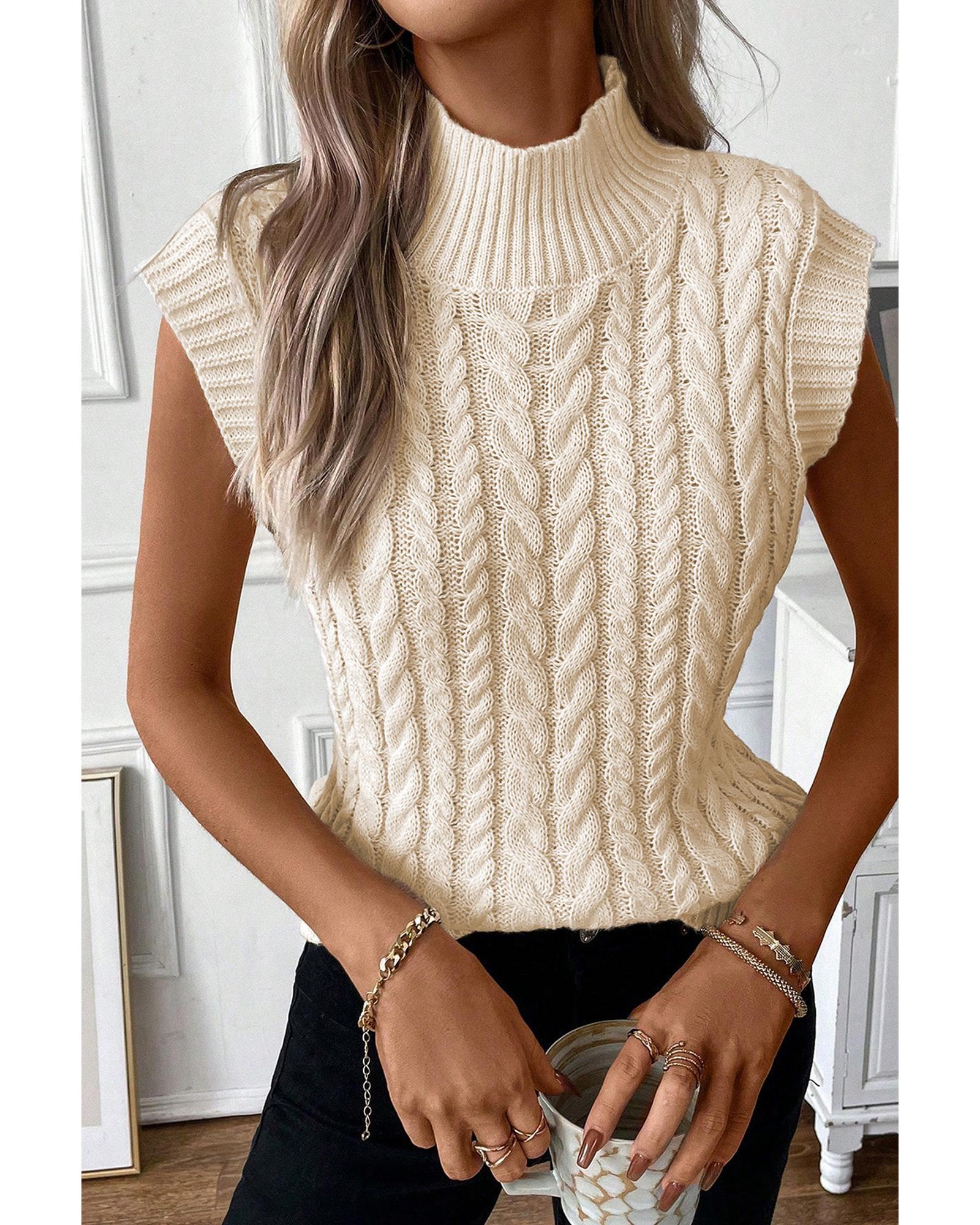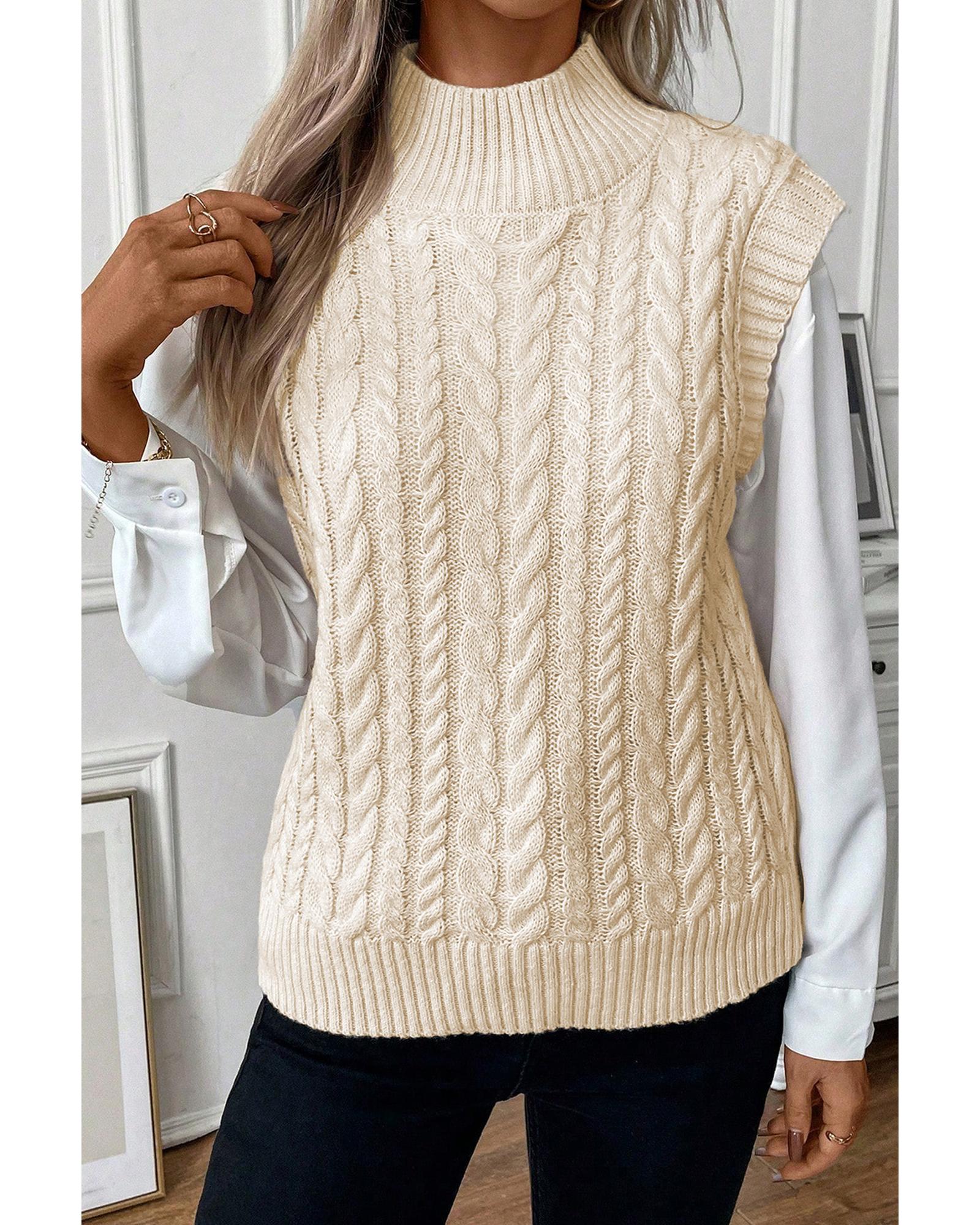 Oatmeal Cable Knit High Neck Sweater Vest – L