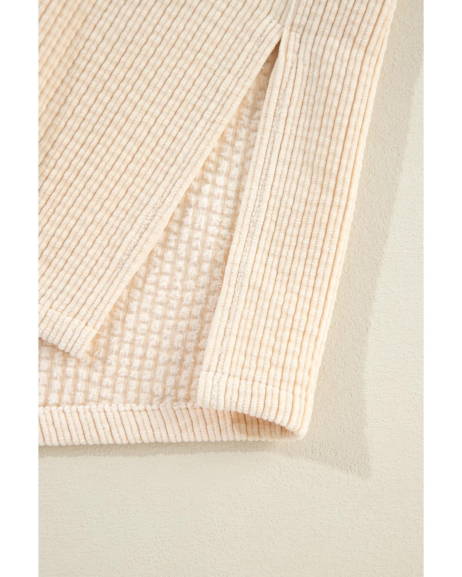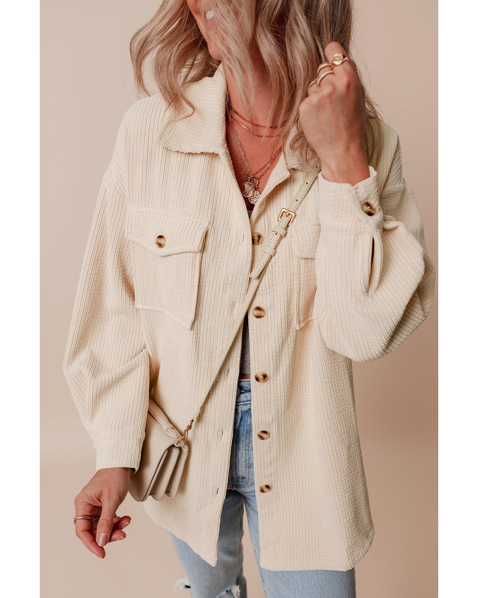Oatmeal Corduroy Flap Pocket Button Up Shacket – L