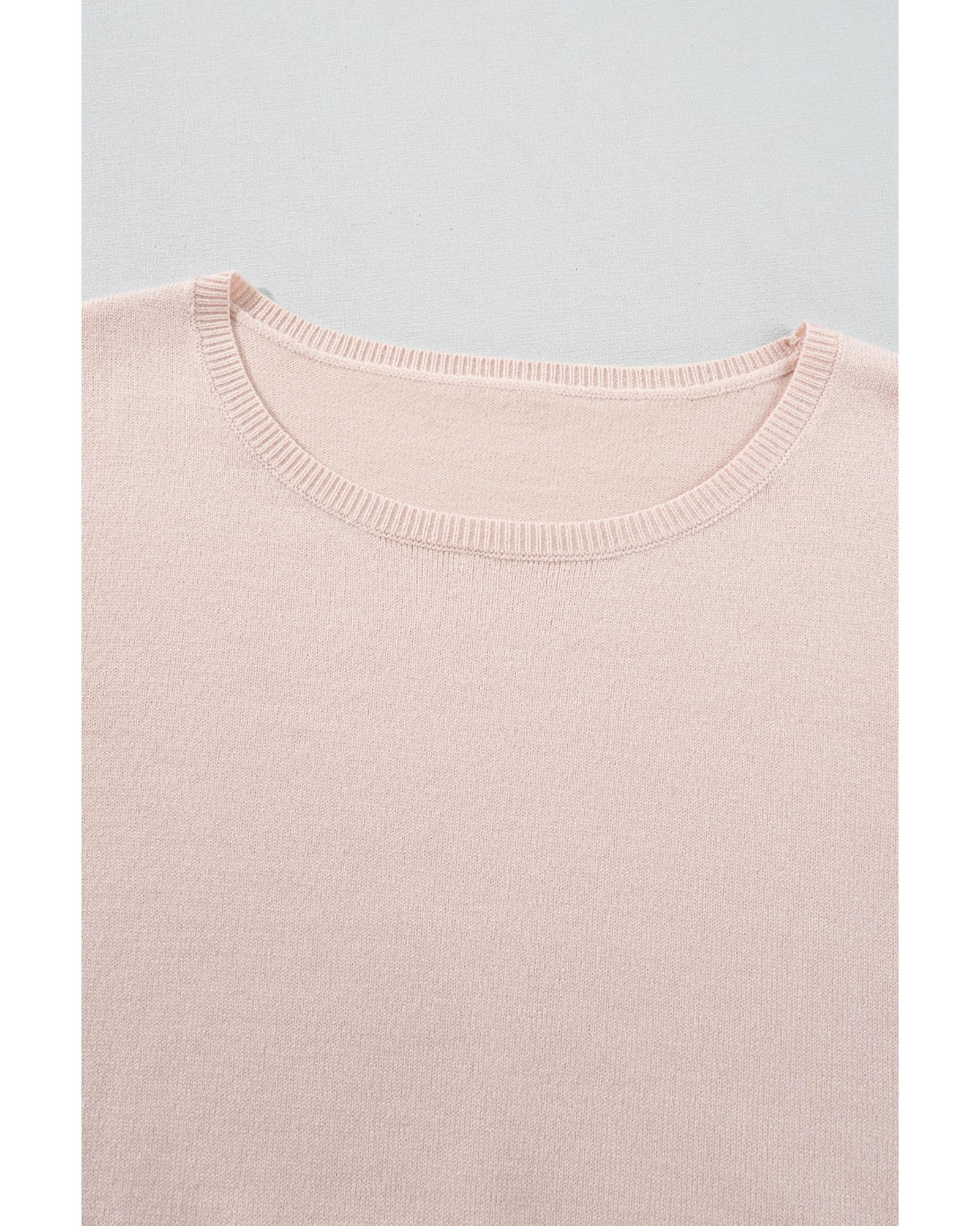 Bright Pink Lattice Textured Knit Short Sleeve Sweater - L Original price was: $60.99.Current price is: $32.99.
