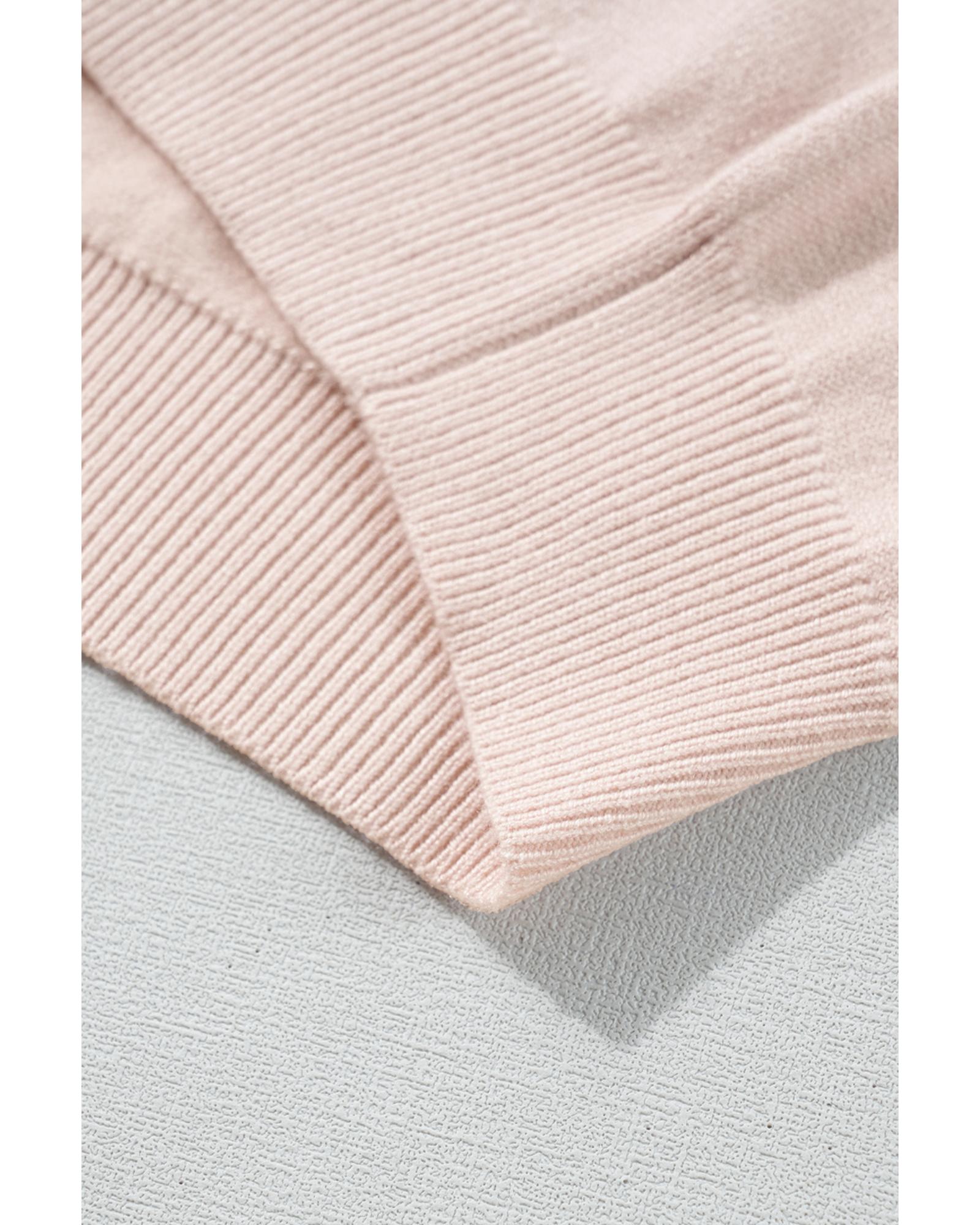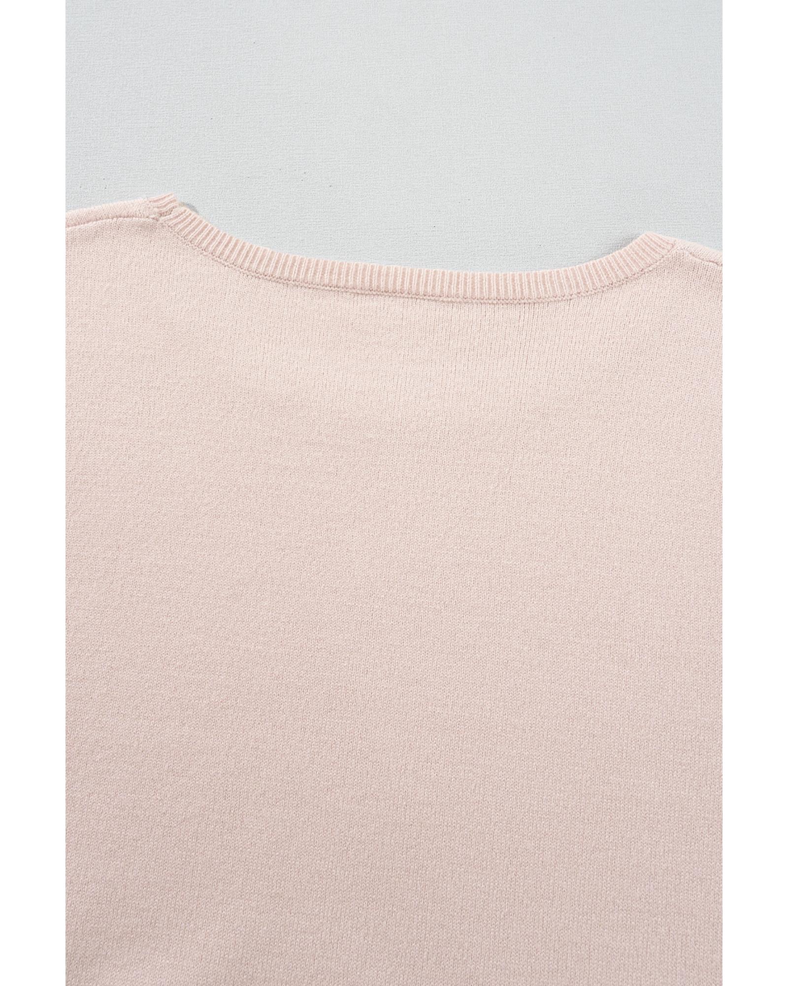 Bright Pink Lattice Textured Knit Short Sleeve Sweater - M